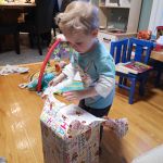Isaac seems to have grown too, with shirts and pants getting too short and he seems to have thickened out especially in his hands and feet. But he remains steady at 26lbs so it must be partly our skewed perception with tiny babies around. He continues to enjoy his French lessons, and has done really well with skating although he has recently been refusing to go to his lessons, even after really enjoying them with Aunt Sam. He’s really into doing puzzles, colouring (sometimes inside the lines!) and playing with playdough. Although he has a play structure in the basement, he still spends most of his time playing with cardboard boxes and balloons or just simply bouncing off the walls, couches or beds. A few of his current sayings include: “that’s not my favourite”, “we have to go on an emergency”, and making up his own silly words.