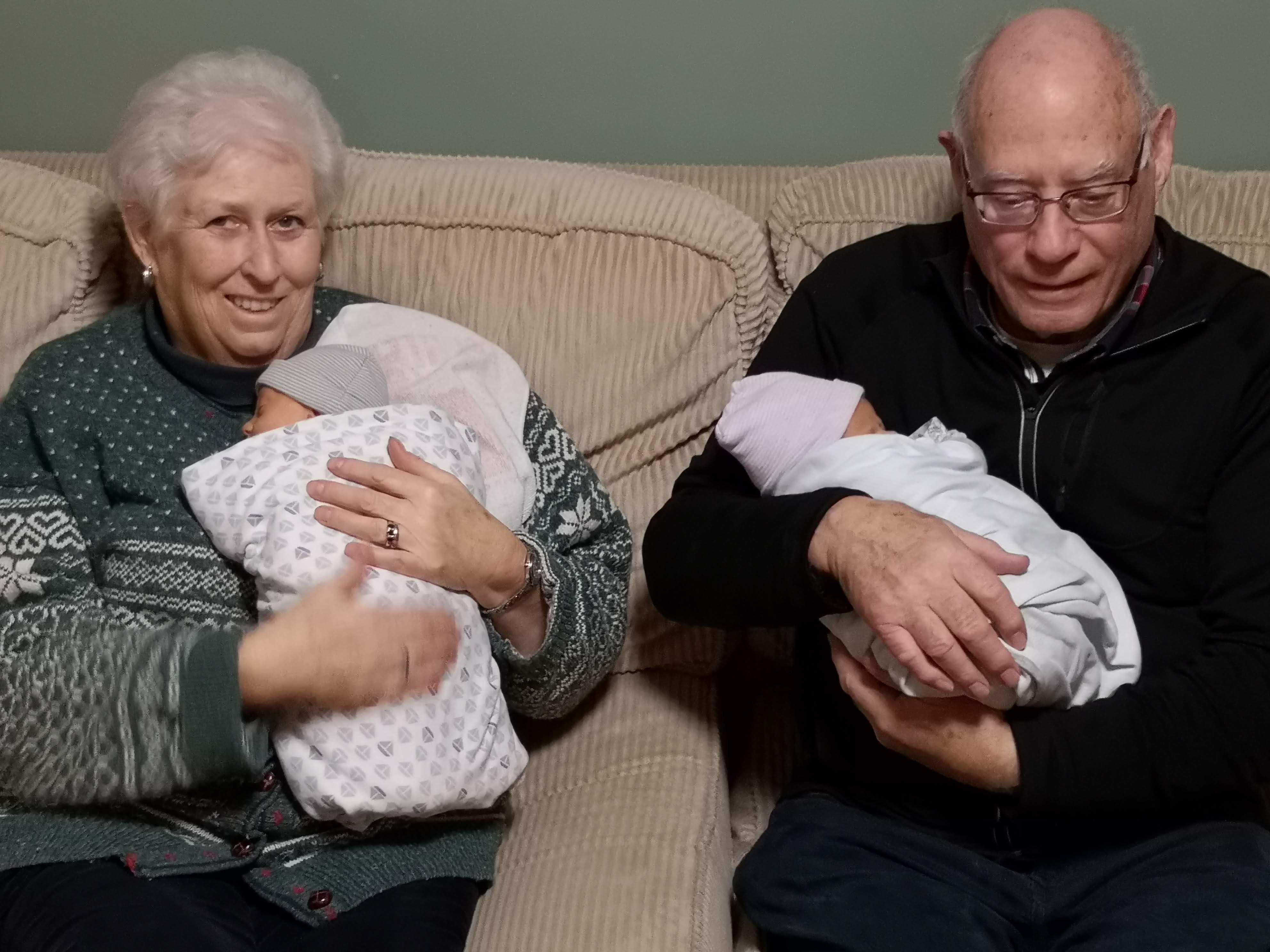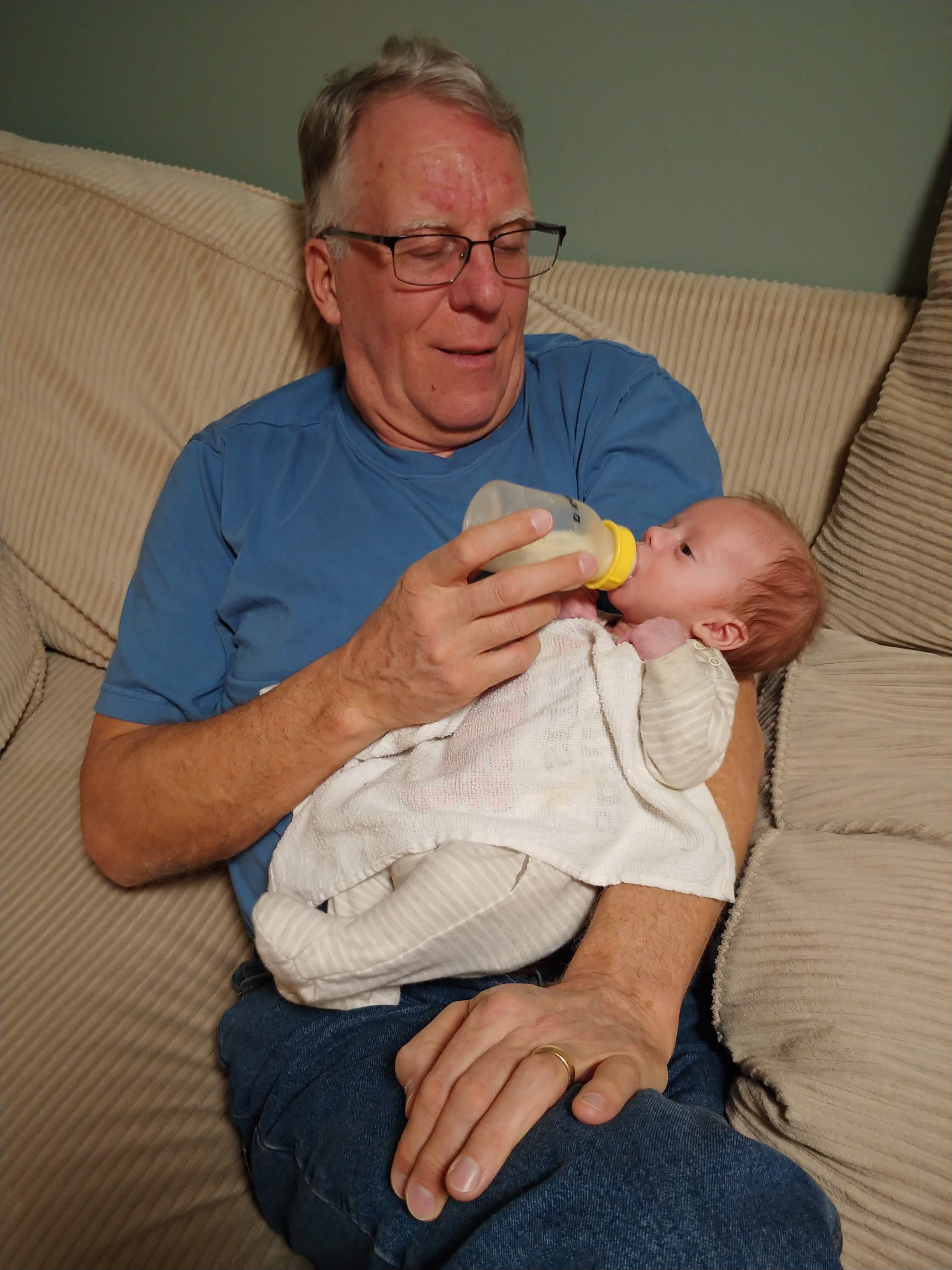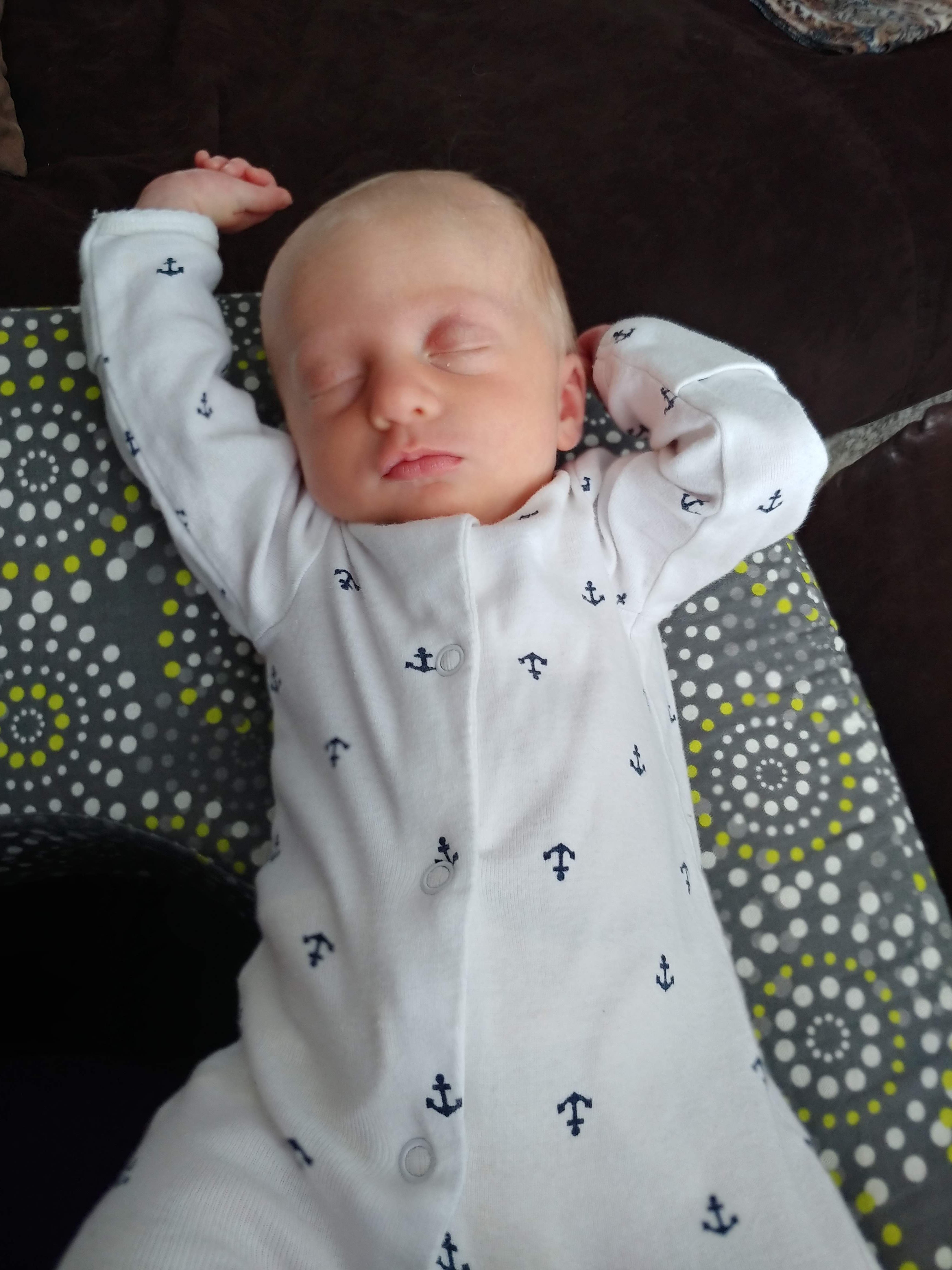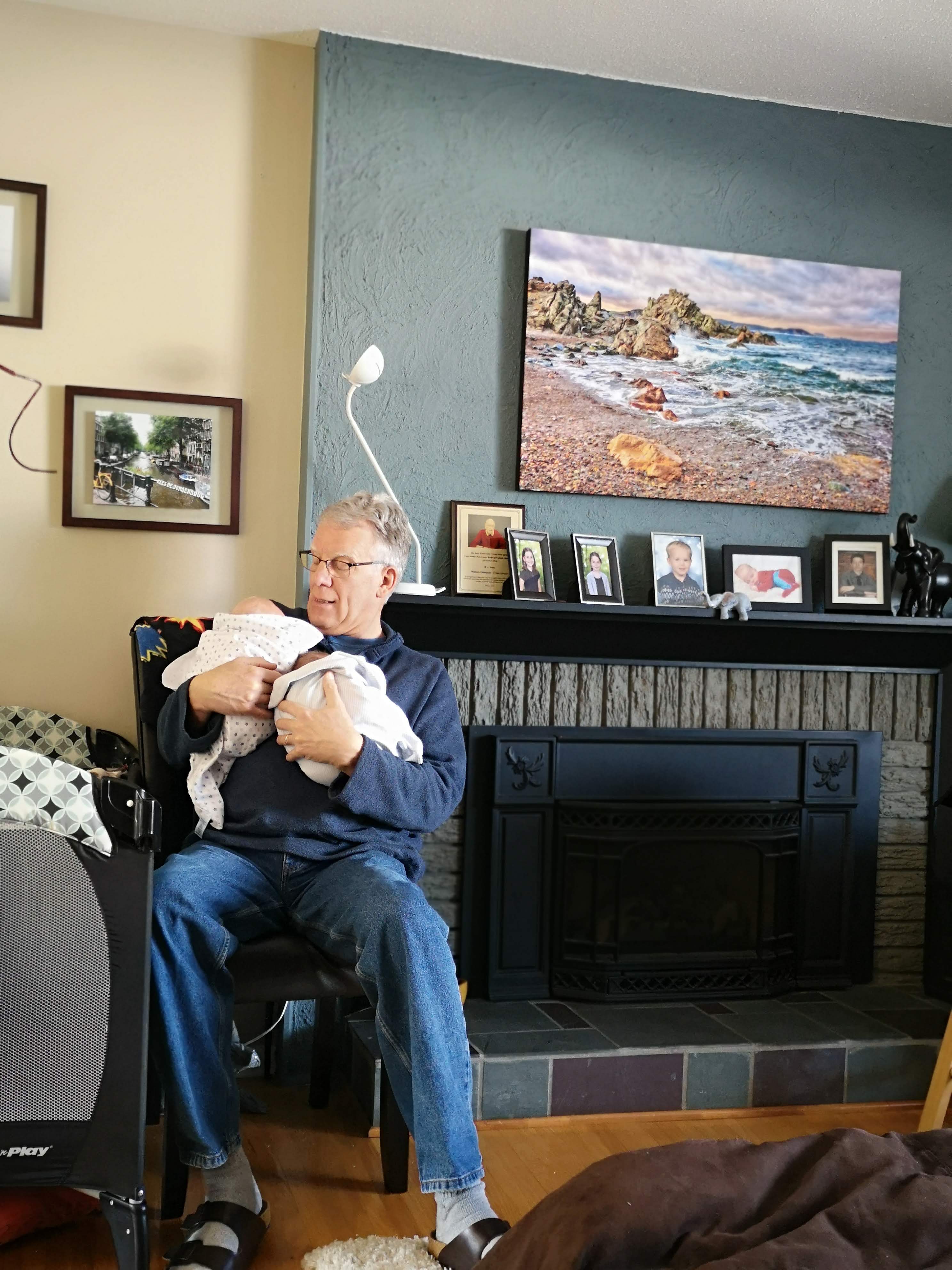 The babies are growing well and have outgrown a few sleepers already. They are now just over 7lbs, with Cadence in the lead at 7lbs 5oz. She remains more stretched out and sturdy, while Asher is always curled up and often snuggles up close to Cadence. There have been a few smiles and they are starting to spend more time awake. We are still camped in the livingroom with no expected end in sight, but it often feels more like a barn with the little lamb and goat noises coming from the crib…
