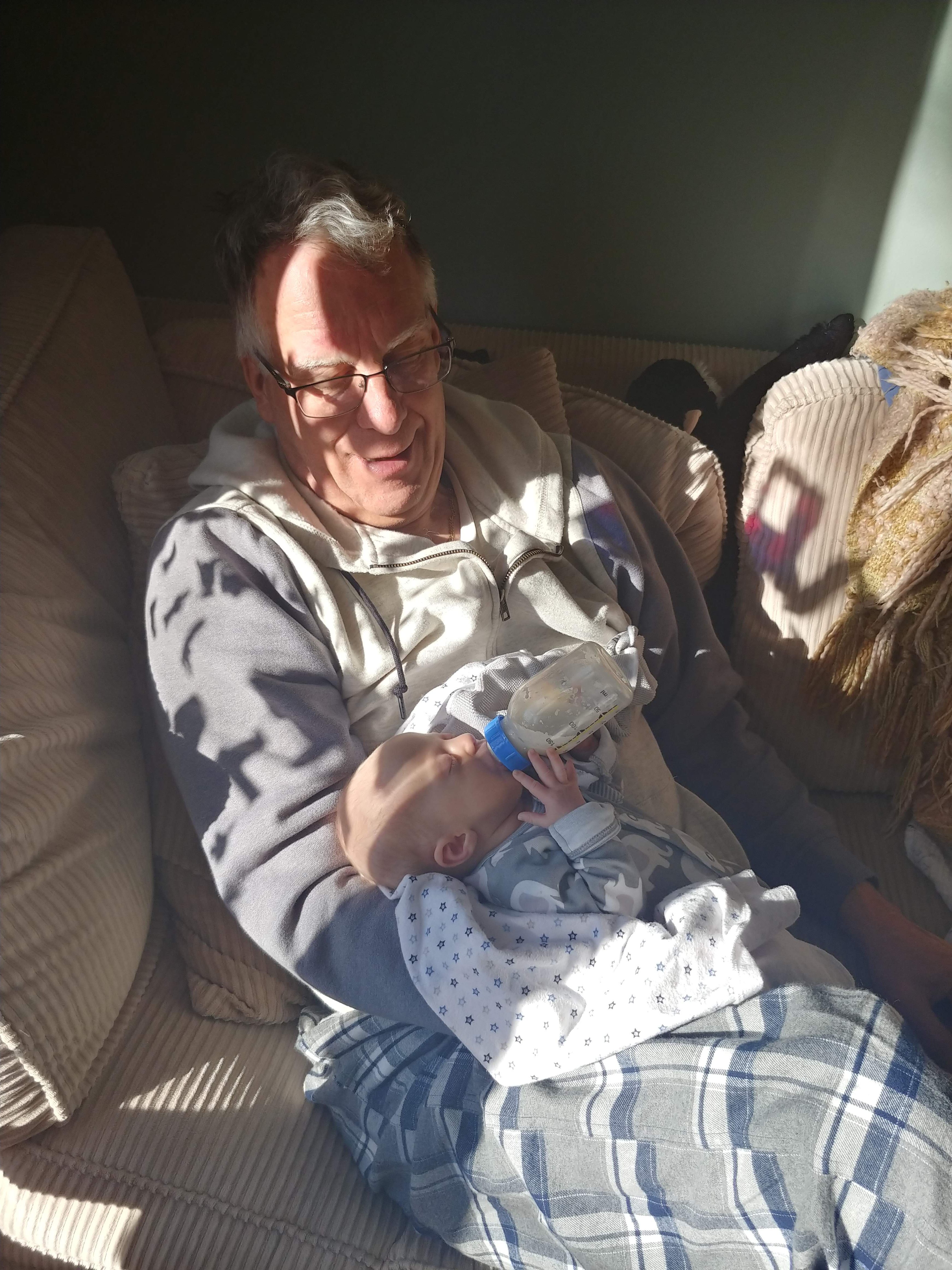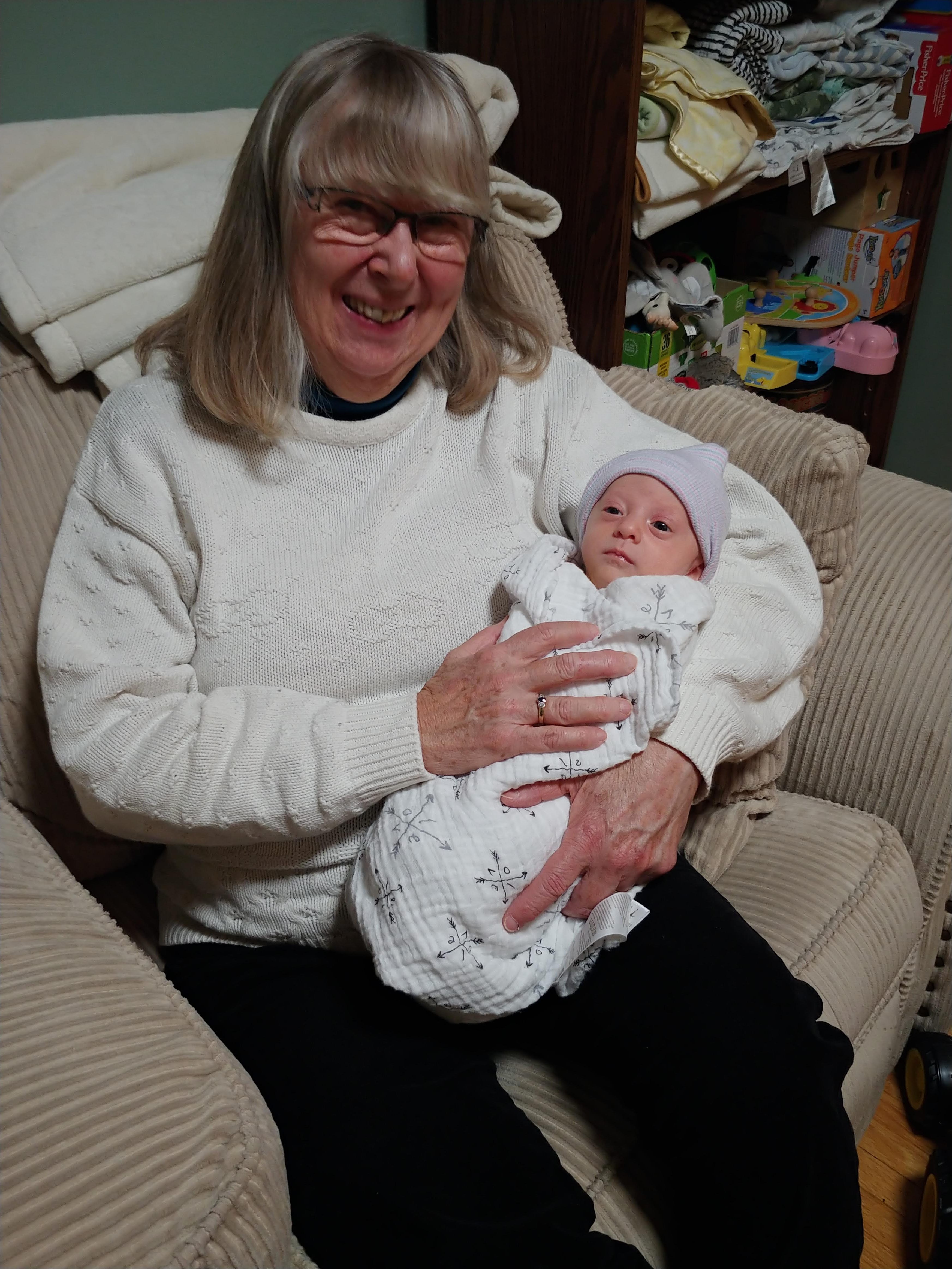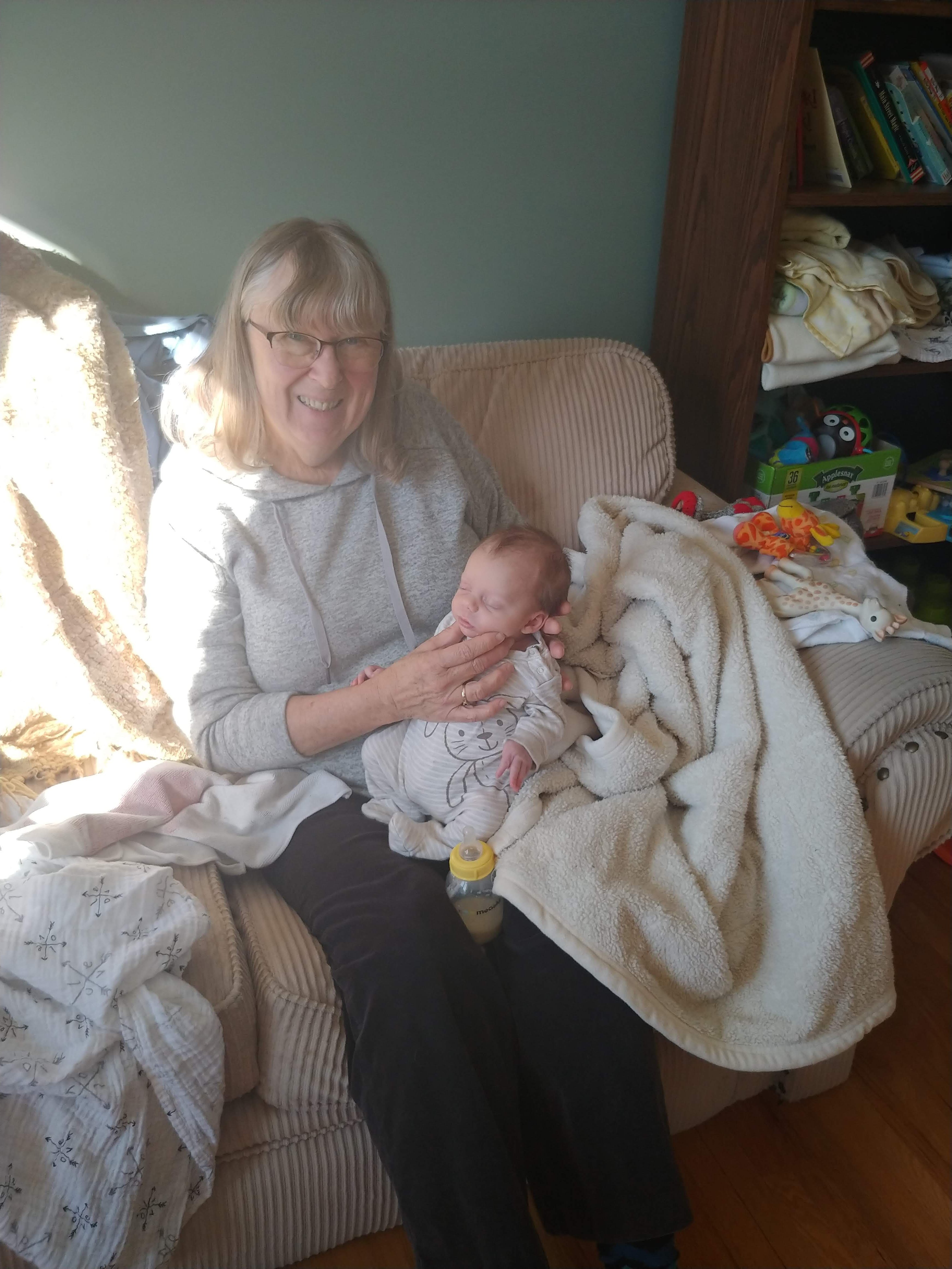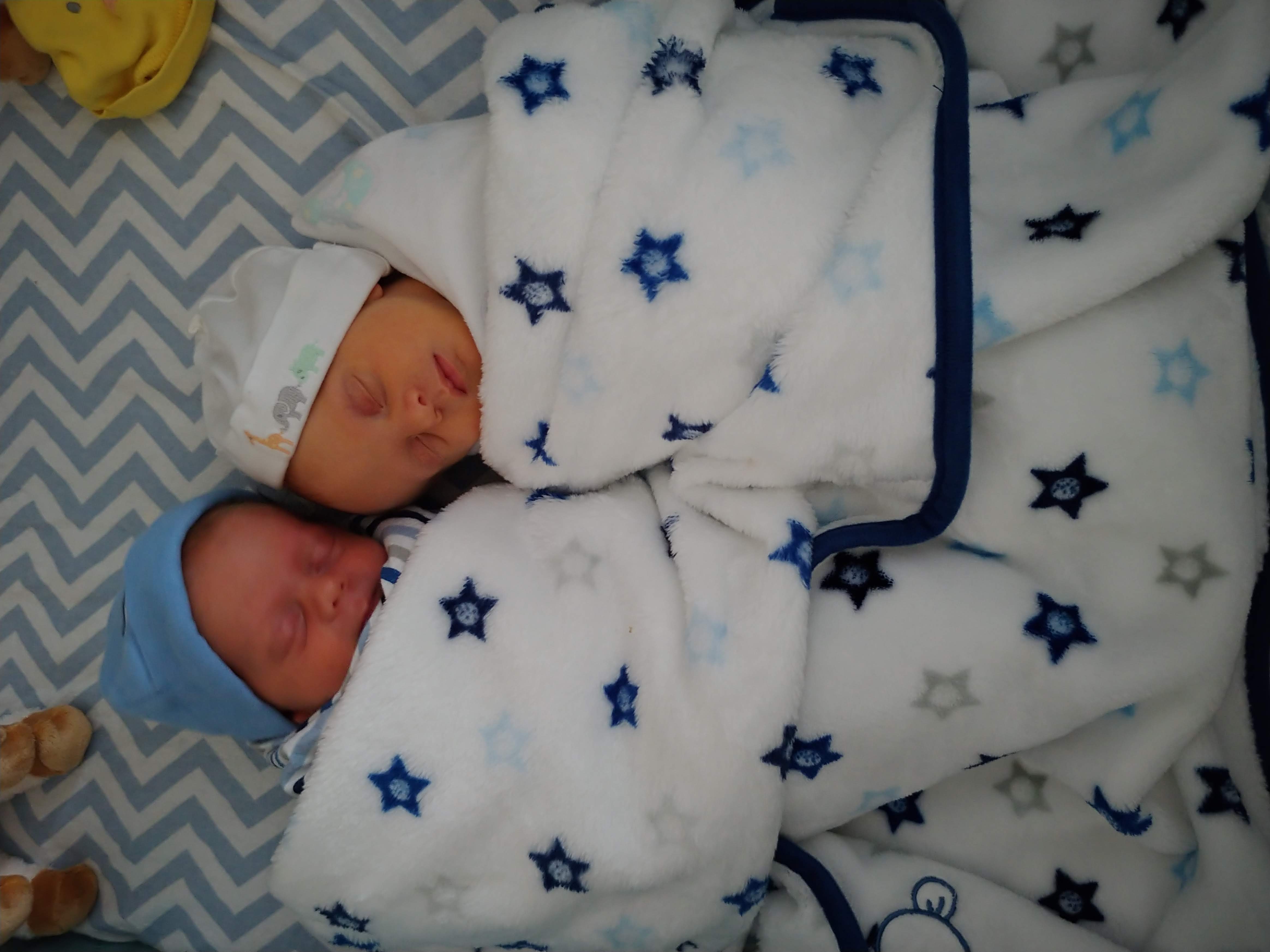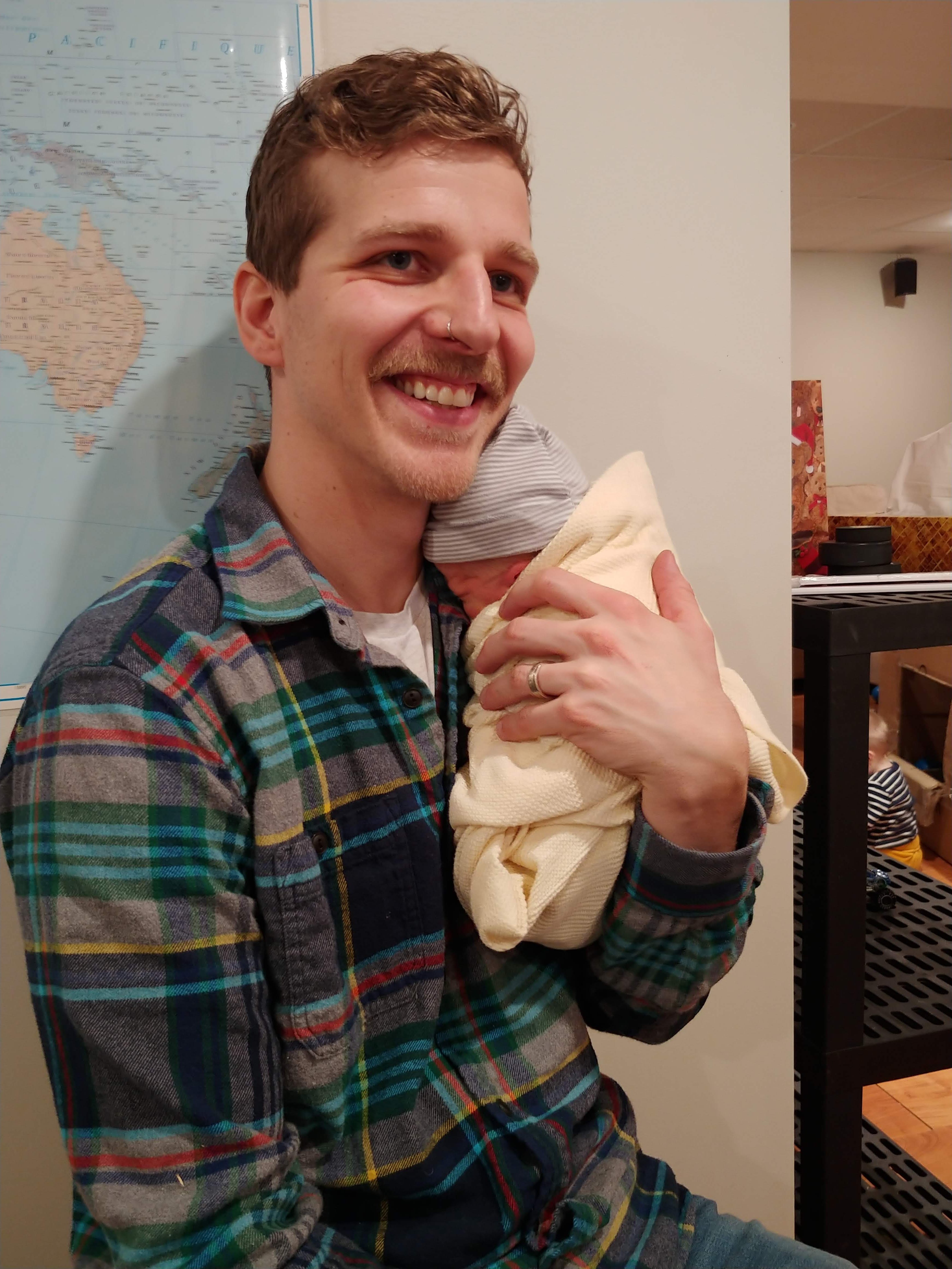 The babies are growing well and have outgrown a few sleepers already. They are now just over 7lbs, with Cadence in the lead at 7lbs 5oz. She remains more stretched out and sturdy, while Asher is always curled up and often snuggles up close to Cadence. There have been a few smiles and they are starting to spend more time awake. We are still camped in the livingroom with no expected end in sight, but it often feels more like a barn with the little lamb and goat noises coming from the crib…