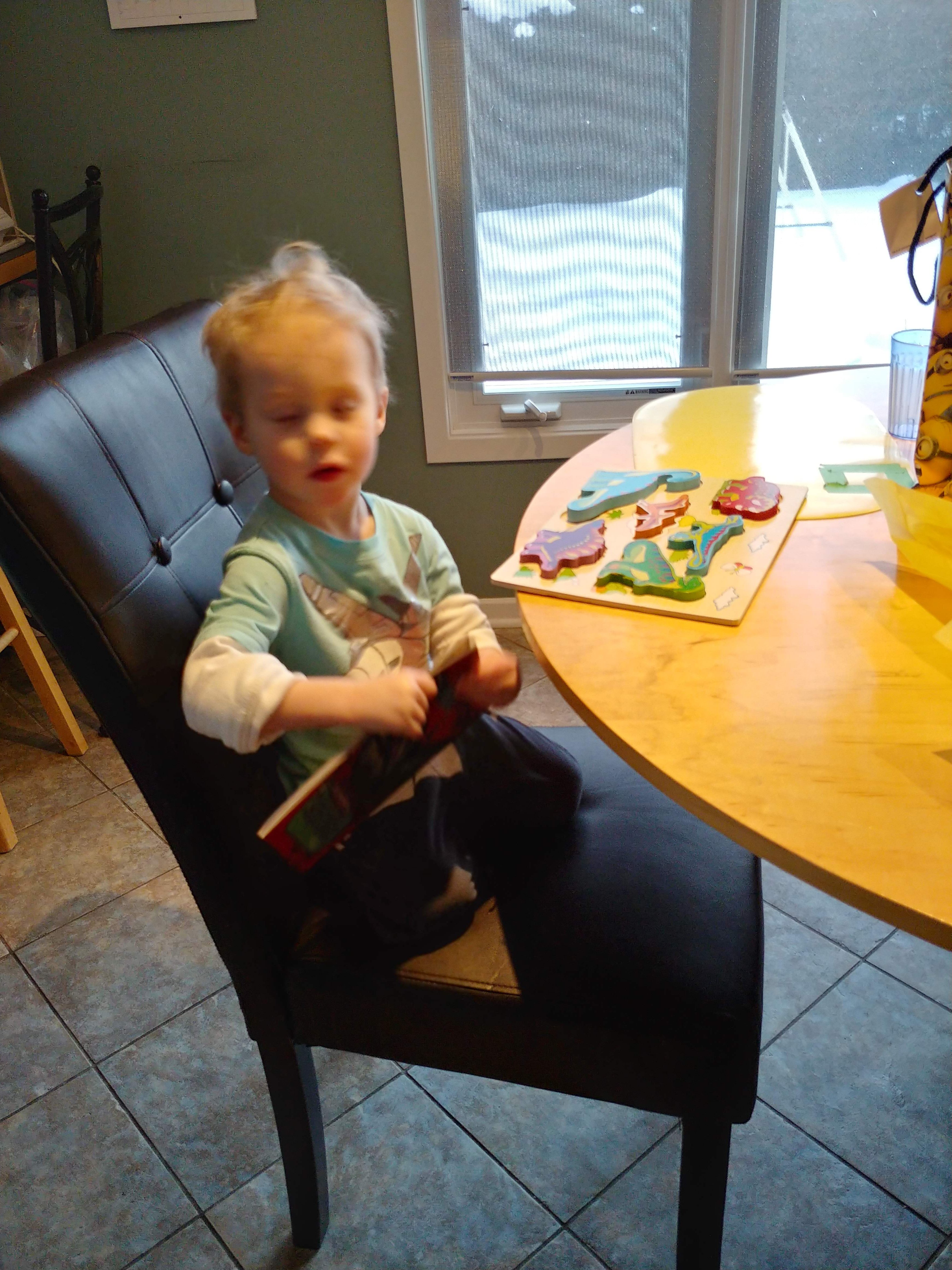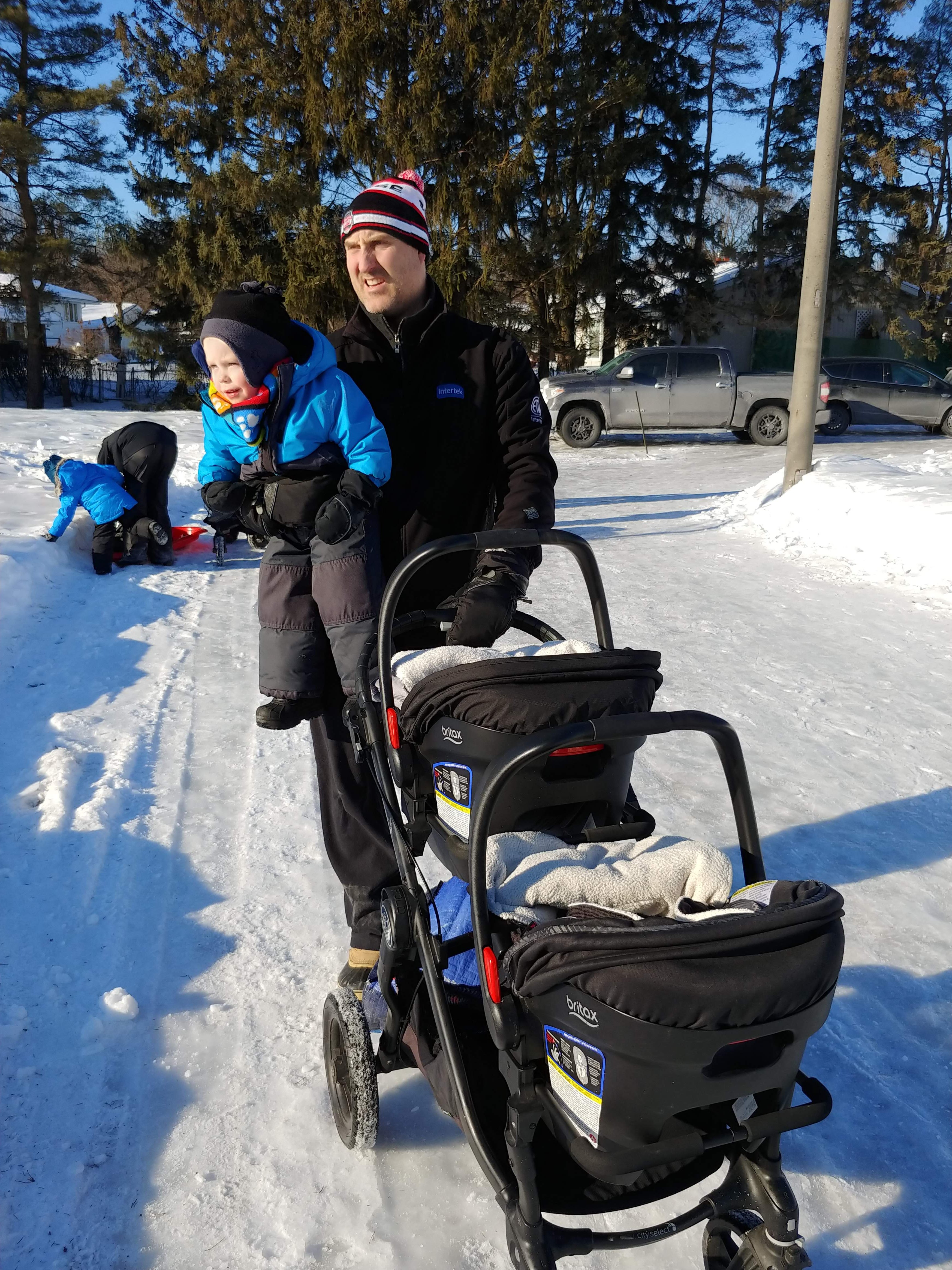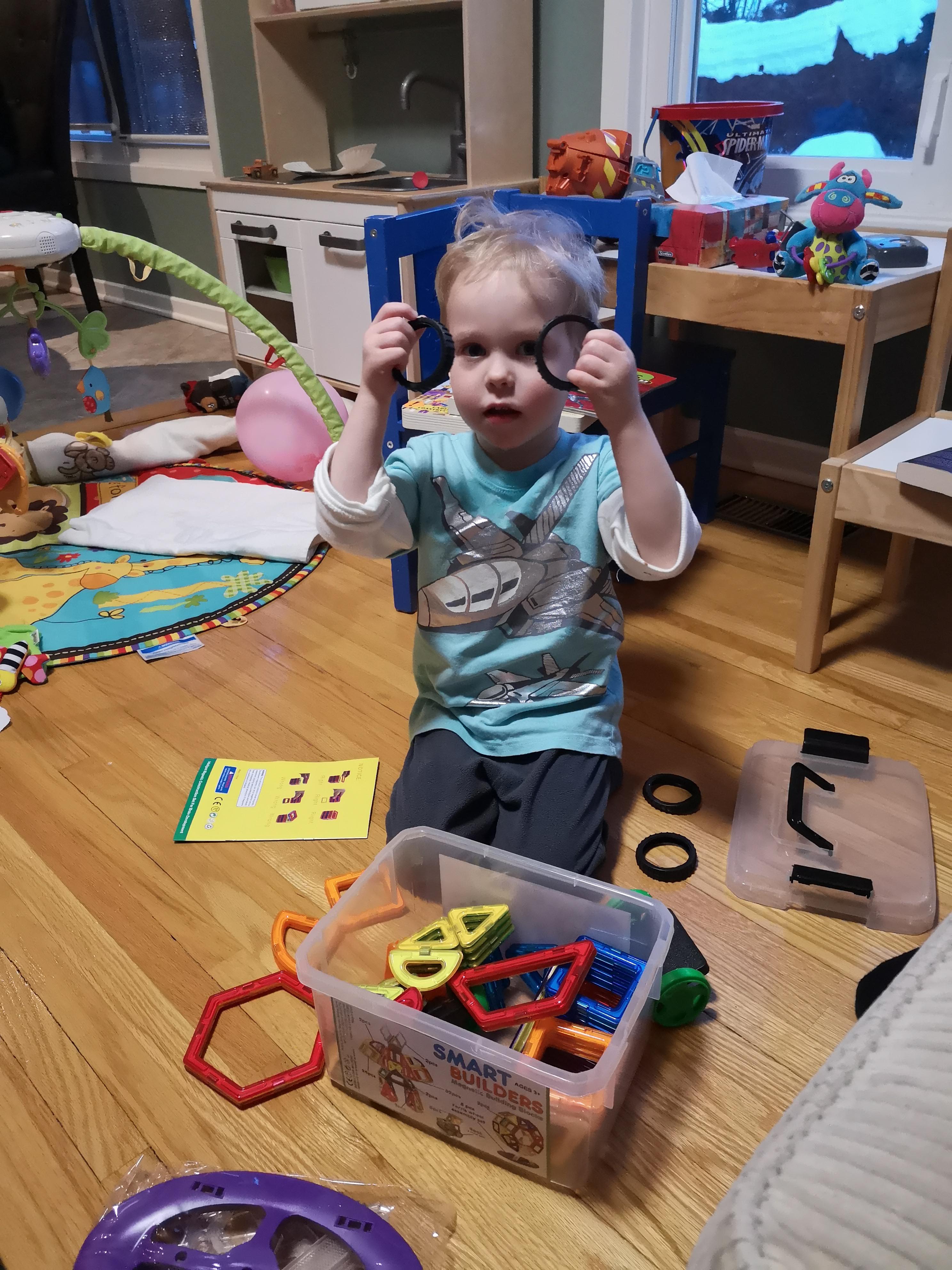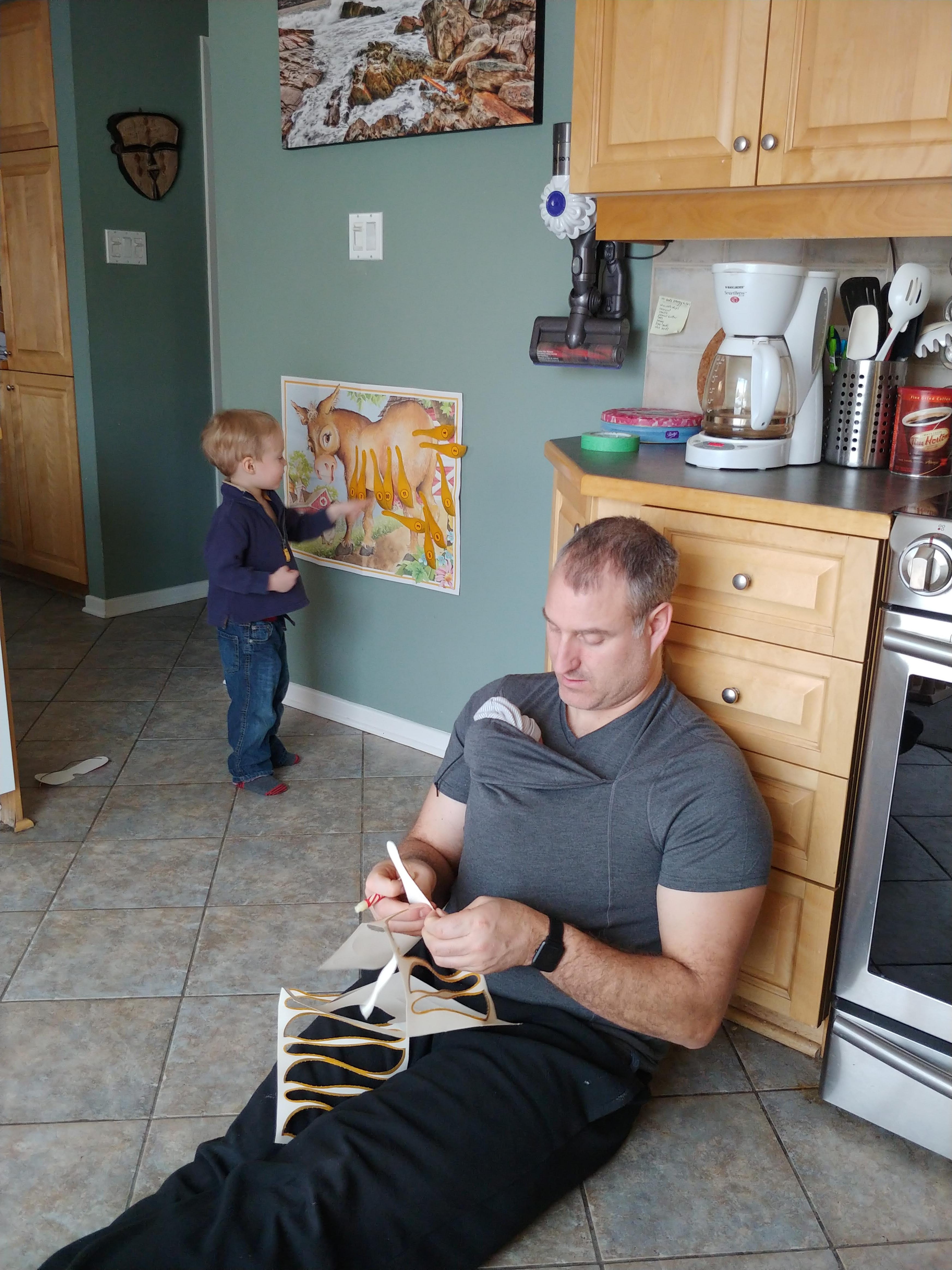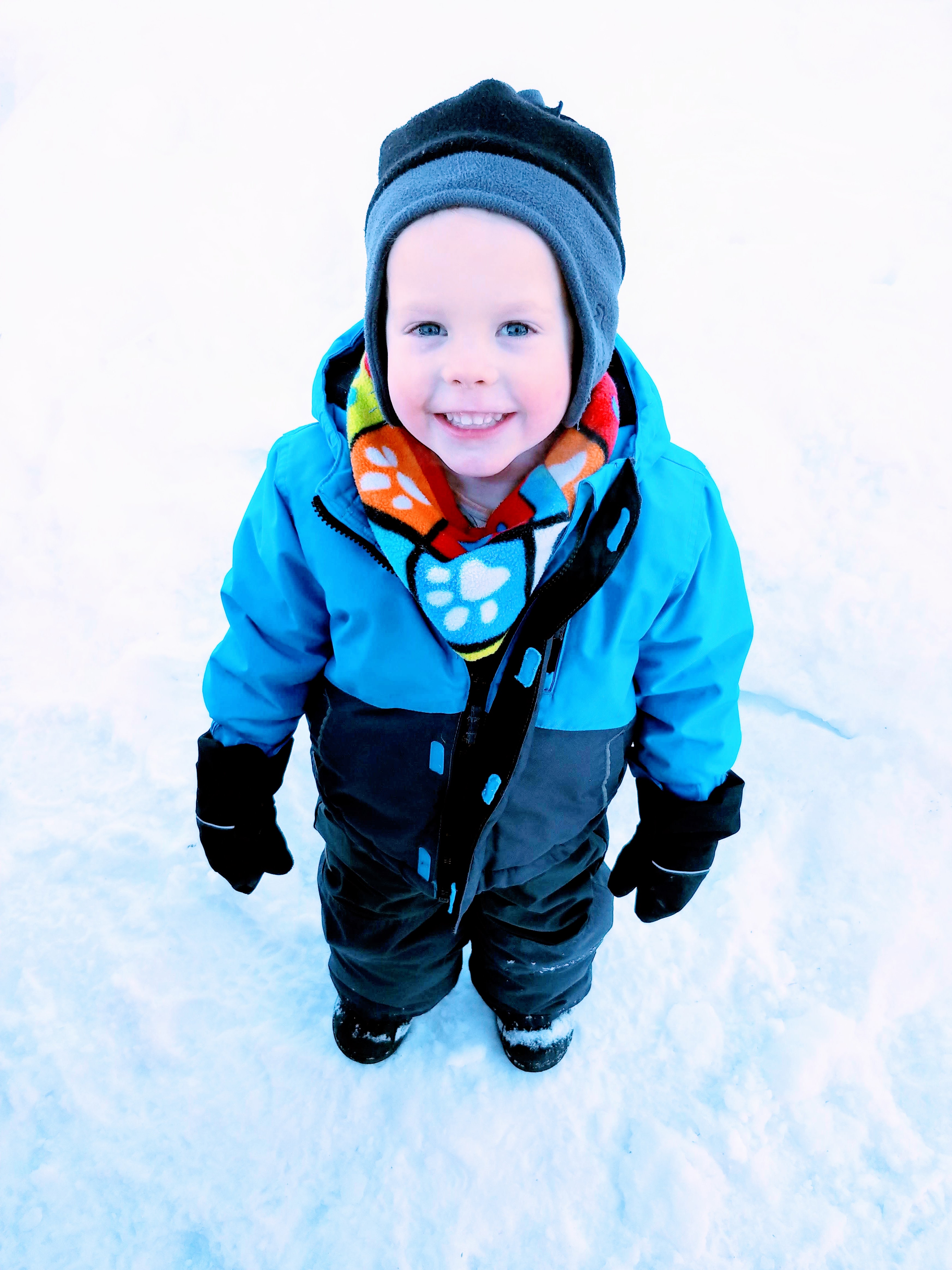 Isaac seems to have grown too, with shirts and pants getting too short and he seems to have thickened out especially in his hands and feet. But he remains steady at 26lbs so it must be partly our skewed perception with tiny babies around. He continues to enjoy his French lessons, and has done really well with skating although he has recently been refusing to go to his lessons, even after really enjoying them with Aunt Sam. He’s really into doing puzzles, colouring (sometimes inside the lines!) and playing with playdough. Although he has a play structure in the basement, he still spends most of his time playing with cardboard boxes and balloons or just simply bouncing off the walls, couches or beds. A few of his current sayings include: “that’s not my favourite”, “we have to go on an emergency”, and making up his own silly words.
