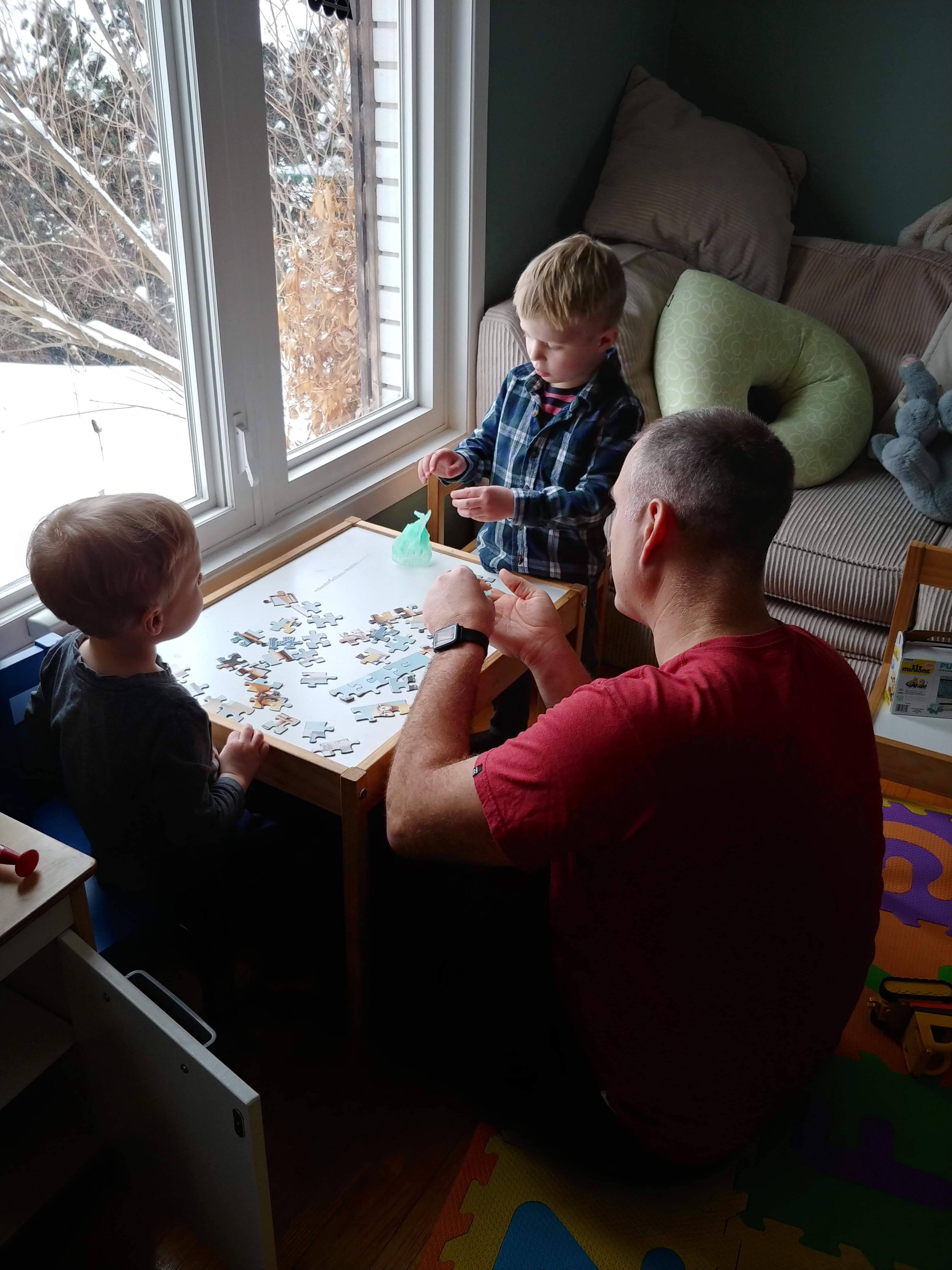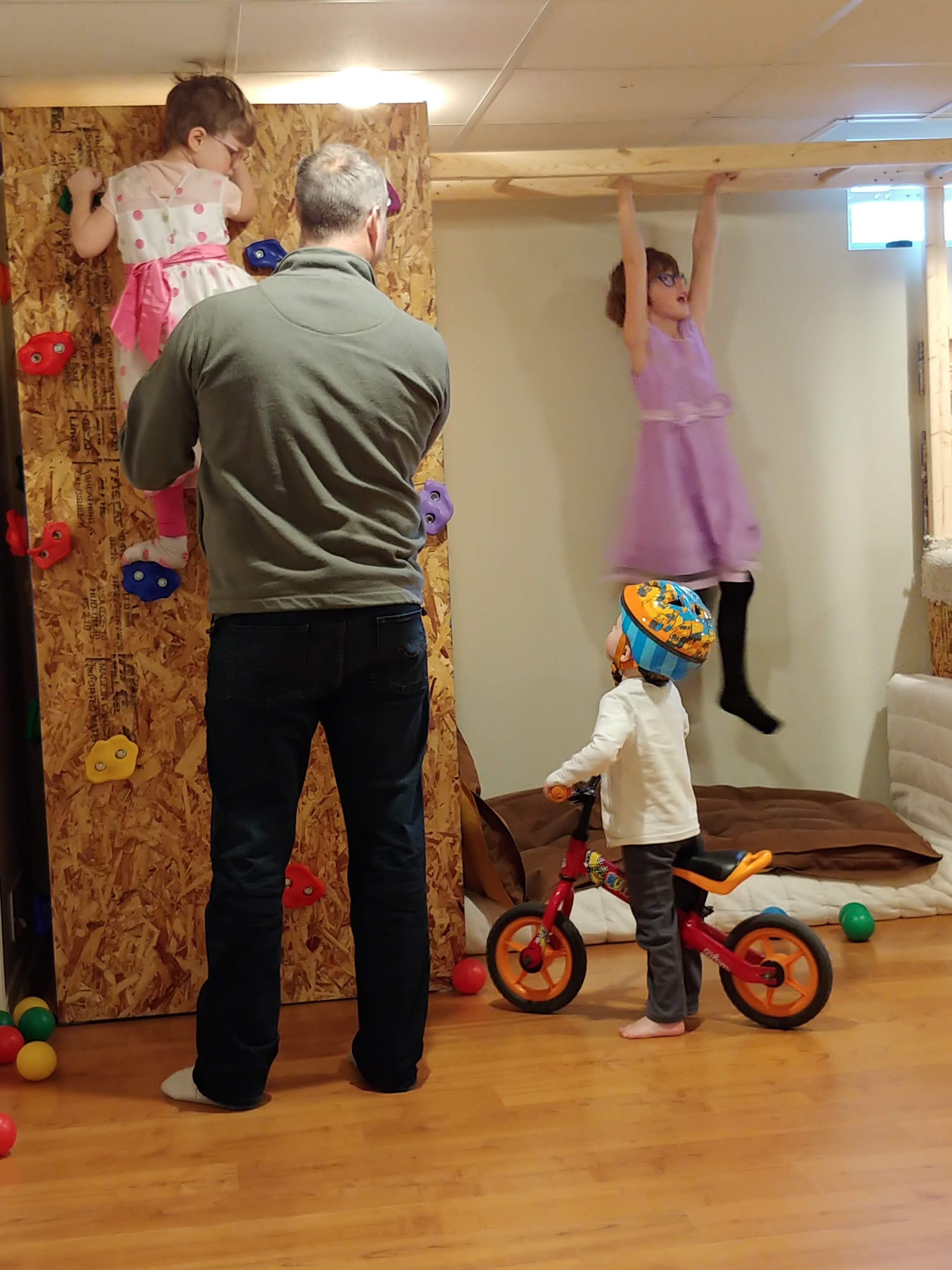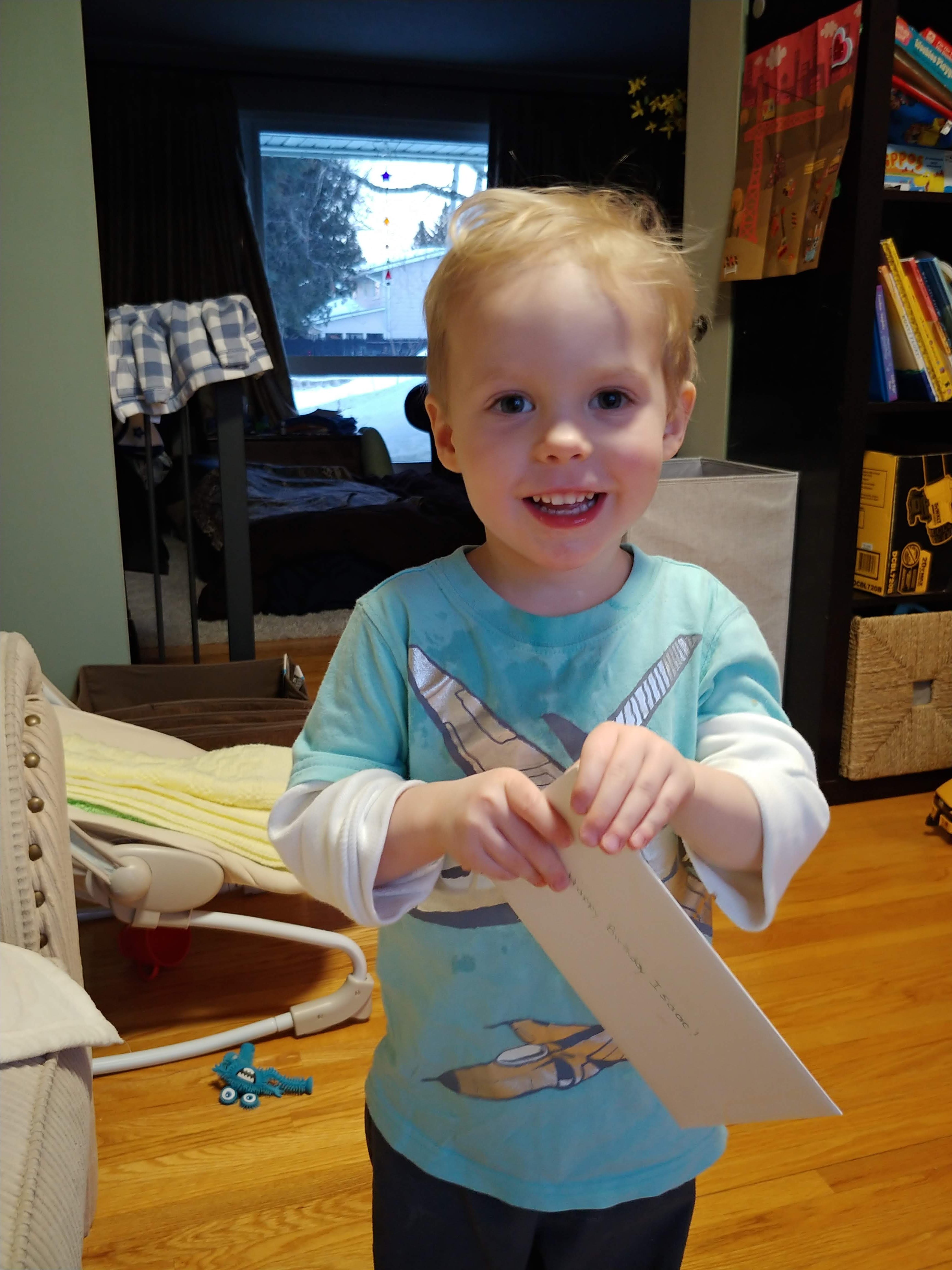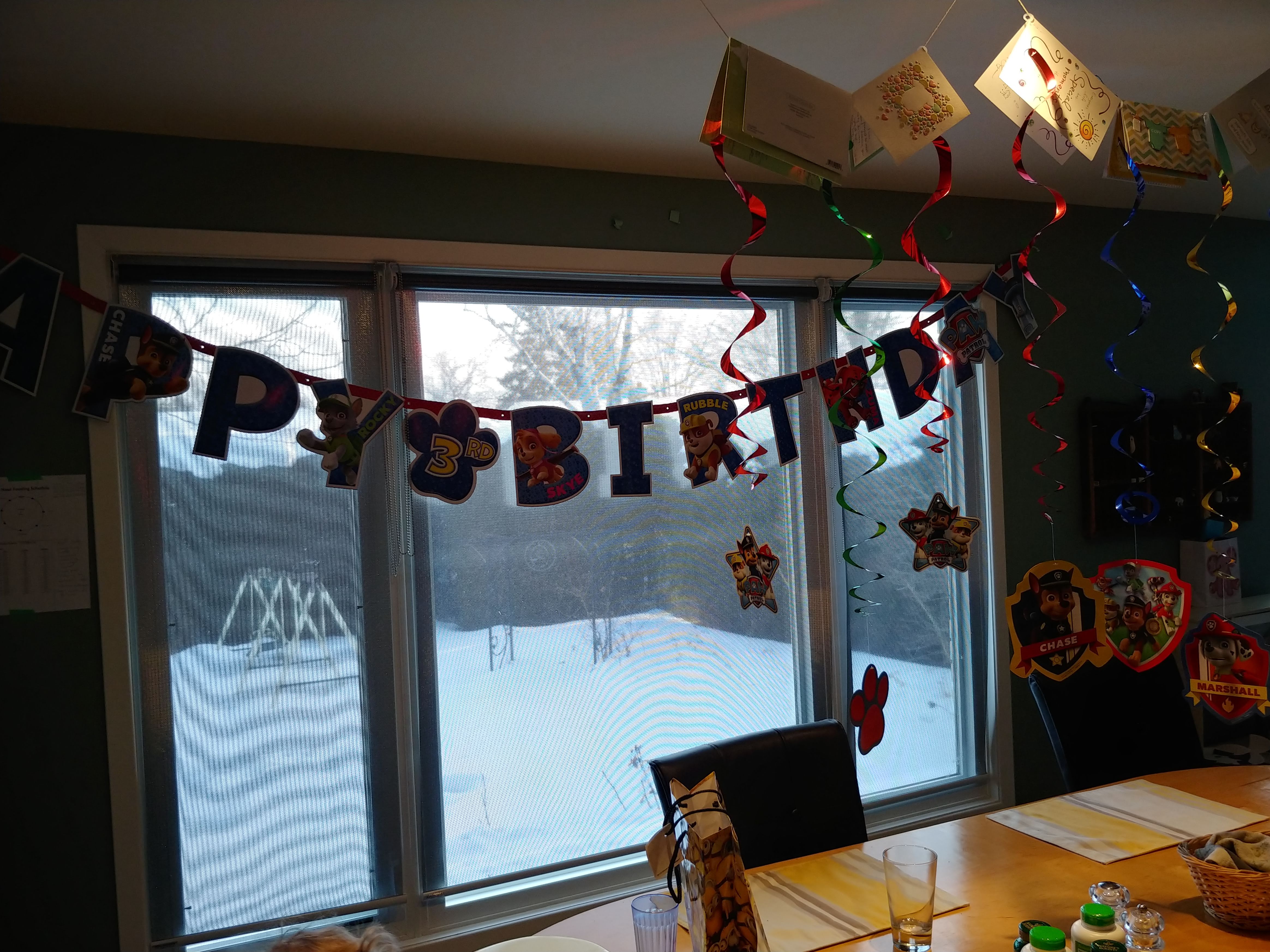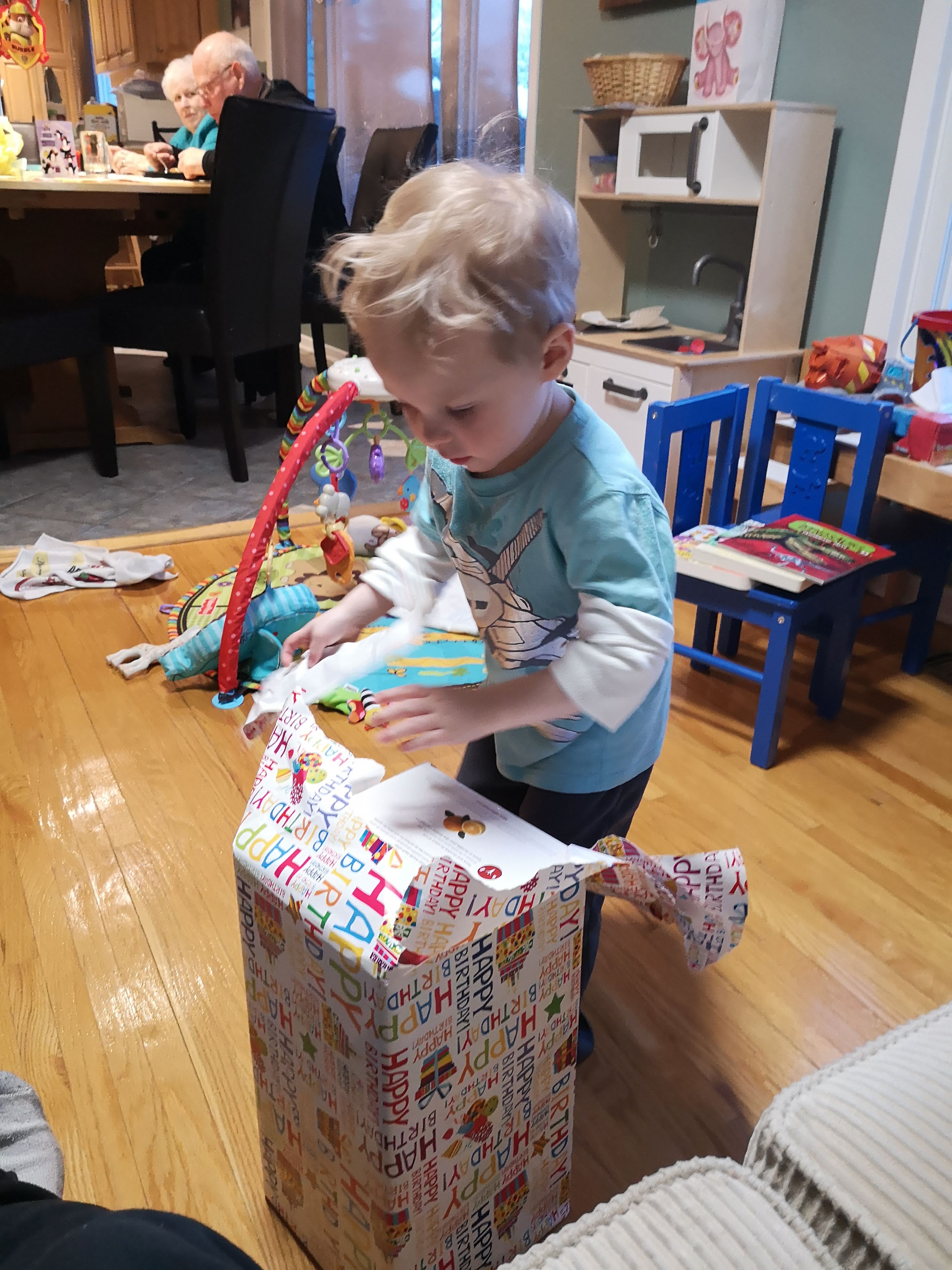Isaac seems to have grown too, with shirts and pants getting too short and he seems to have thickened out especially in his hands and feet. But he remains steady at 26lbs so it must be partly our skewed perception with tiny babies around. He continues to enjoy his French lessons, and has done really well with skating although he has recently been refusing to go to his lessons, even after really enjoying them with Aunt Sam. He’s really into doing puzzles, colouring (sometimes inside the lines!) and playing with playdough. Although he has a play structure in the basement, he still spends most of his time playing with cardboard boxes and balloons or just simply bouncing off the walls, couches or beds. A few of his current sayings include: “that’s not my favourite”, “we have to go on an emergency”, and making up his own silly words.