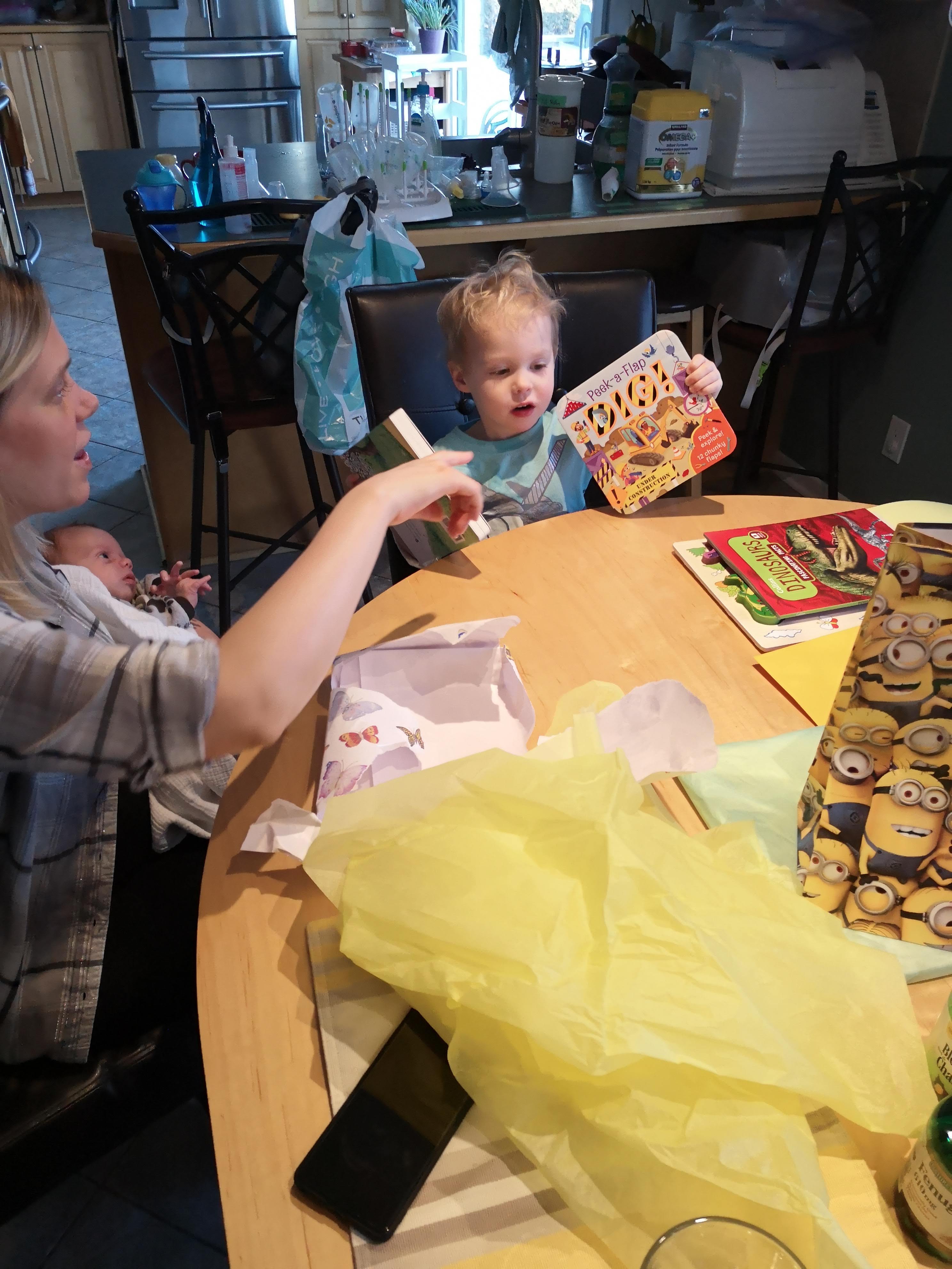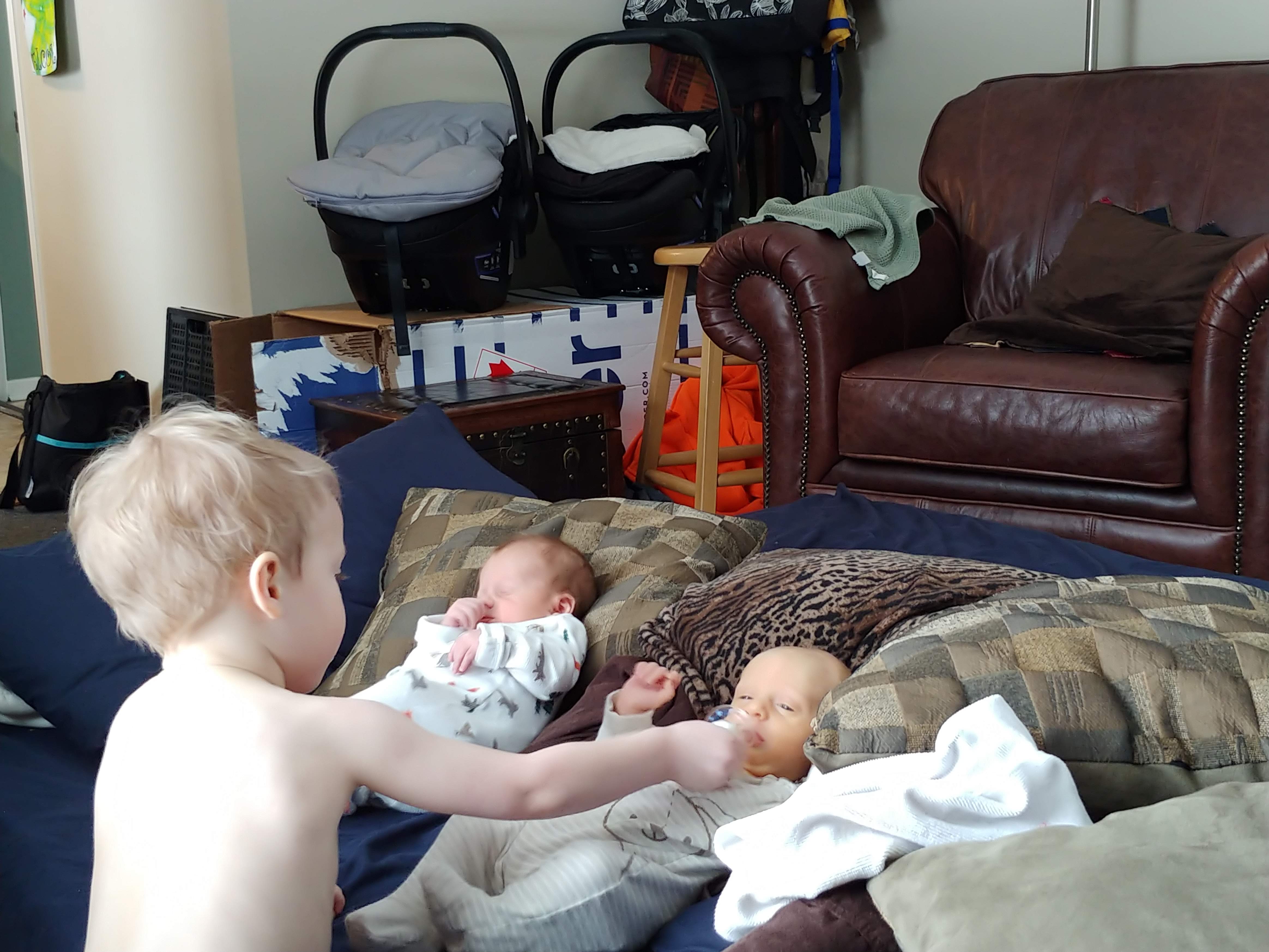 But Isaac has also been very cute with the babies, giving them lots of kisses and hugs, and bringing them stuffed animals or toys to play with. He struggles with the lessened attention on him, but we’re trying to make it work. He sometimes sits with Lindy while she’s nursing to read stories or play games, and has really enjoyed having all the extra people around.