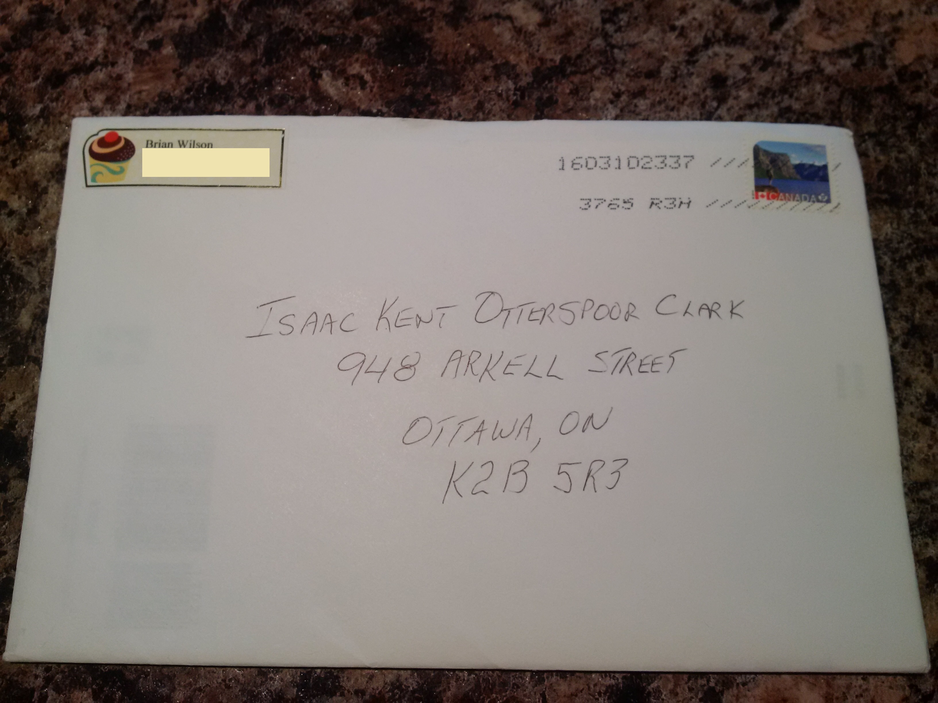 Today in the mail was an envelope that was addressed to Isaac Kent Otterspoor Clark. First thought was, “Who’s that?!” A nice surprise from Winnipeg.