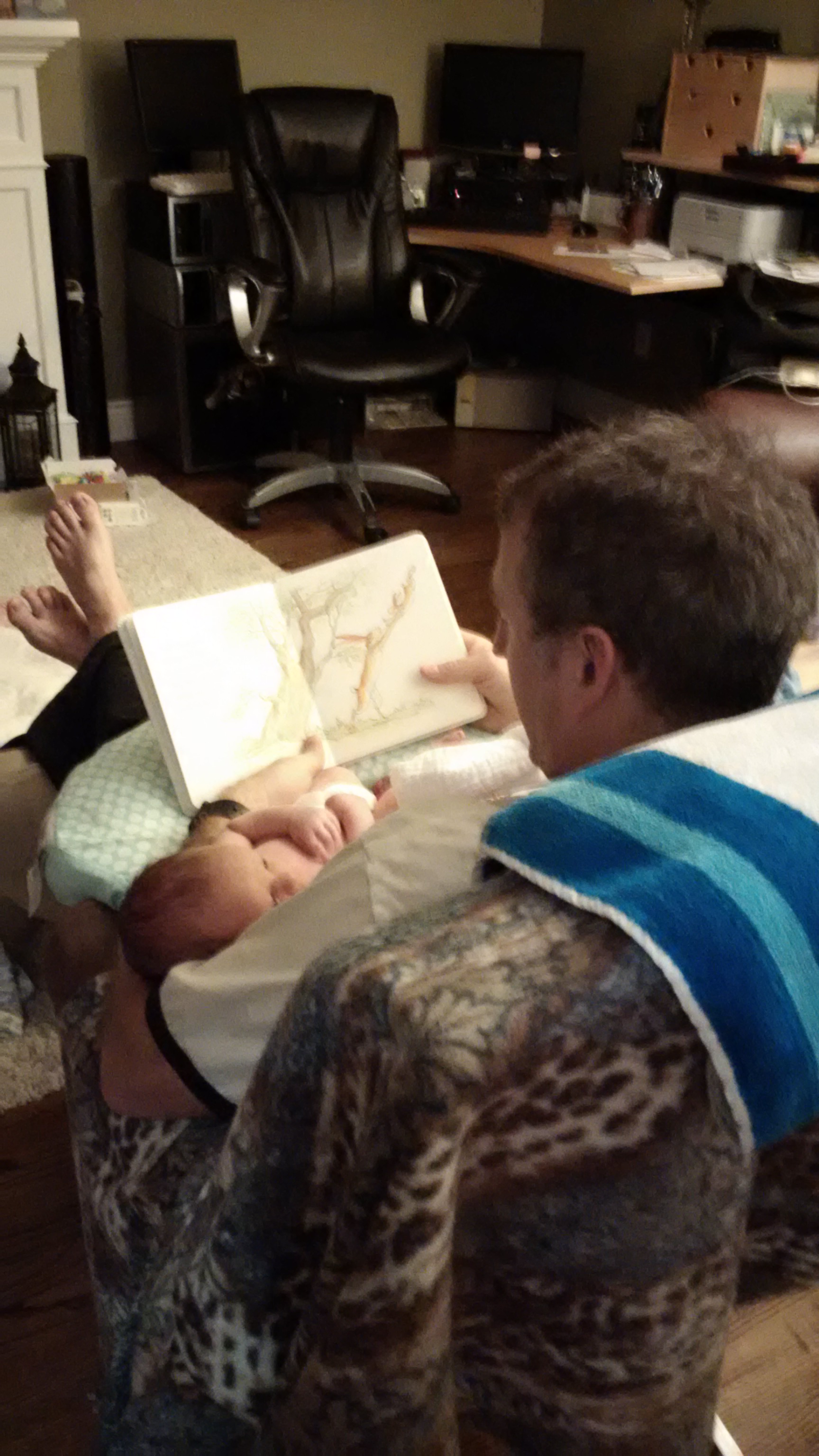 After a late night feeding last night, Dad read one of Isaac’s new books to him, though these days he doesn’t need much help to fall asleep after a meal.