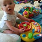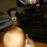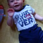 He’s definitely following in his daddy’s footsteps with a strong curiosity in technology. He loves Lindy’s phone (always out taking pictures of him), and especially likes to watch the colourful lines of the living room computer screen saver and will sit mesmerized by it for quite a while.