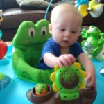 Mr. Squirmy-Wormy is now 5 months old…and getting wigglier and wigglier. While his good core strength makes him more portable, his curiosity and grip strength make him more difficult to handle – he’s constantly shifting around in our arms to see what’s making noise, and grabs at everything and pulls…Lindy’s hair out! He’s not quite crawling but now that he’s able to move around so easily in his crib, he’s become increasingly difficult to put down for naps which he flat out refuses most days. We’re only a few days into the fifth month, but so far it is the most difficult. Dealing with our own lack of sleep is one thing – but an overtired cranky baby on top of our own lack of sleep is entirely another story!! Lindy is looking forward to her first night away next weekend…
