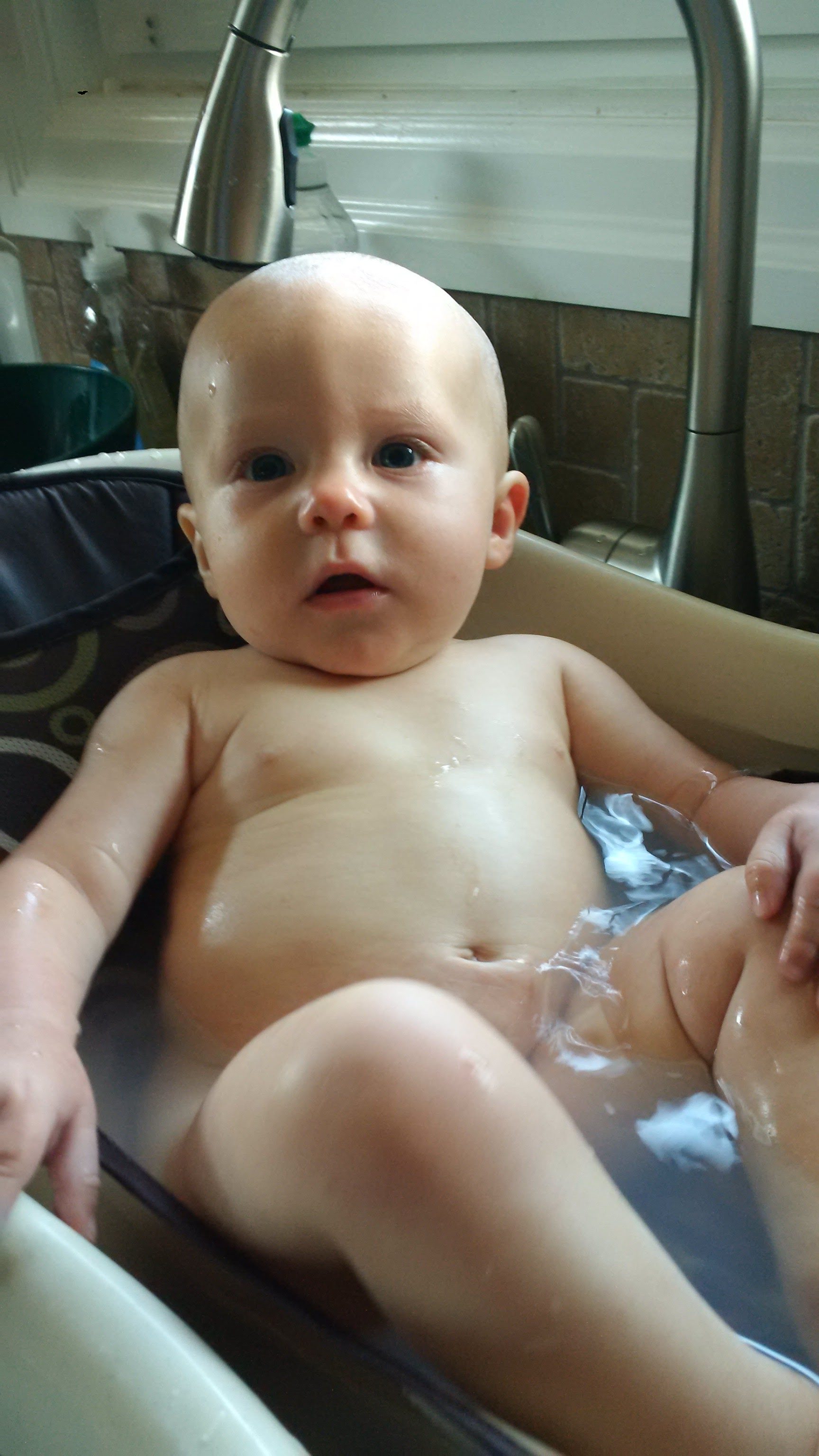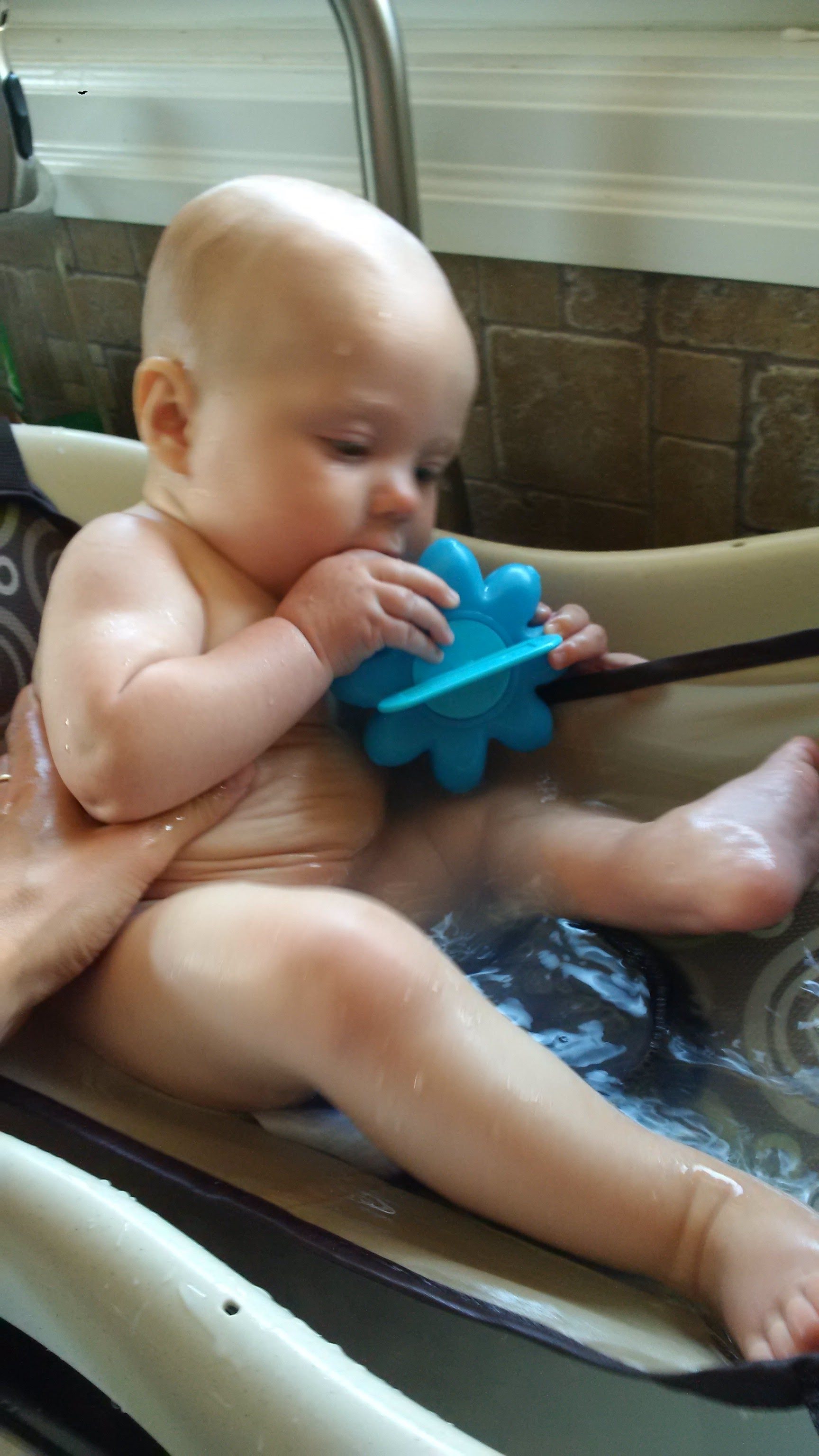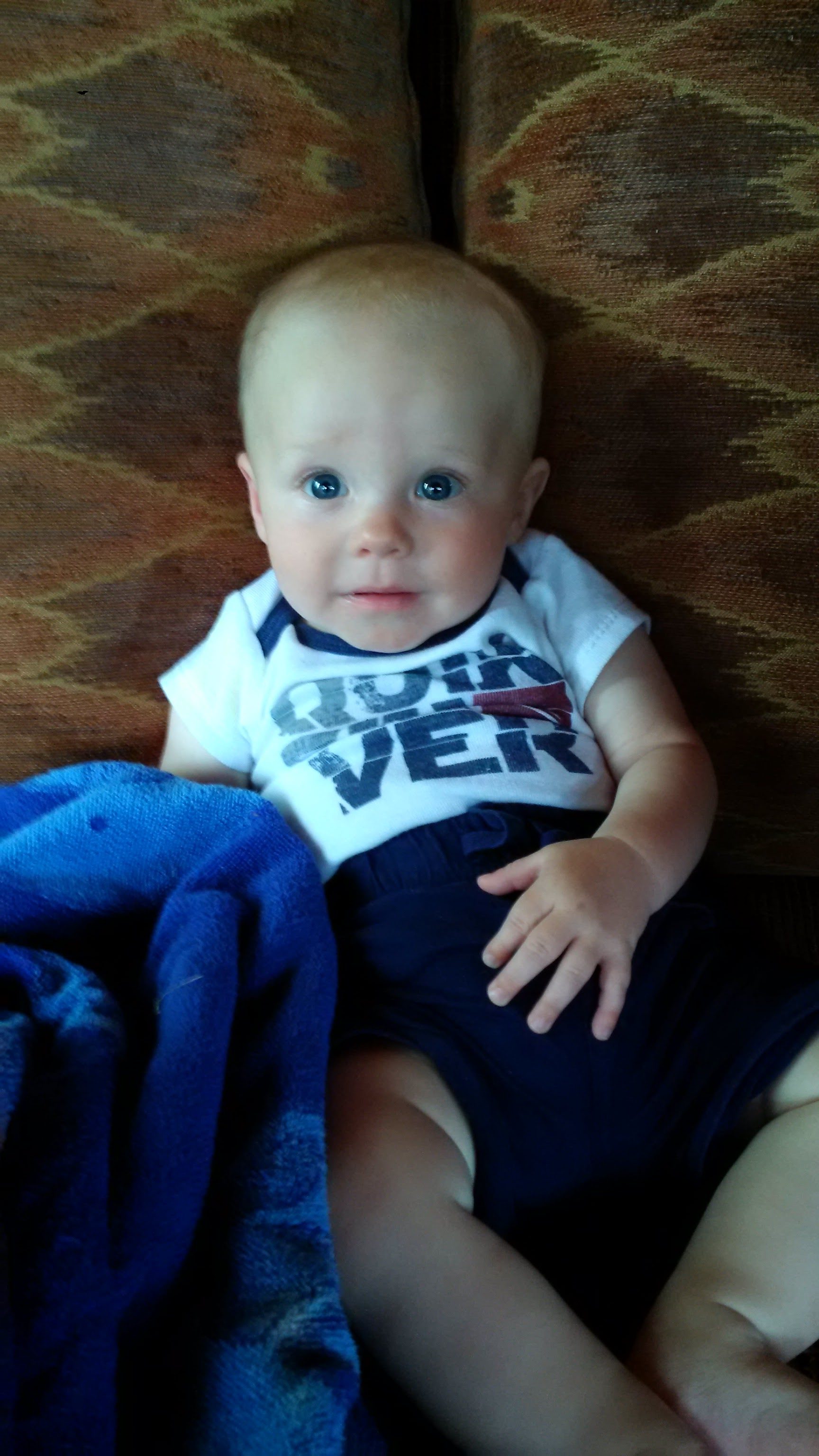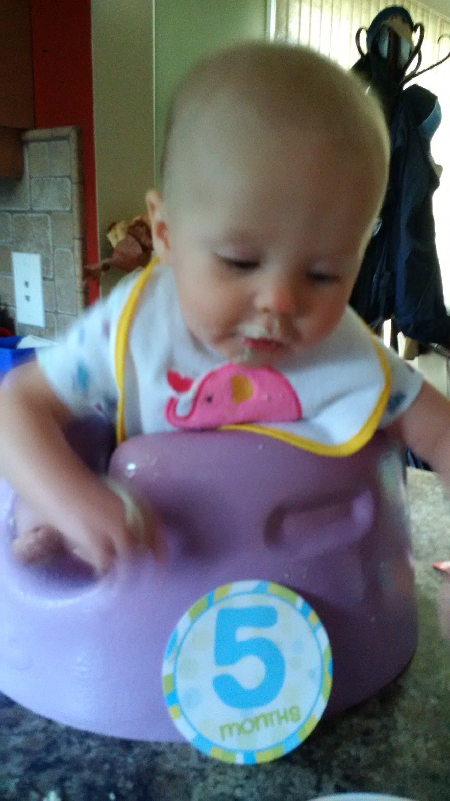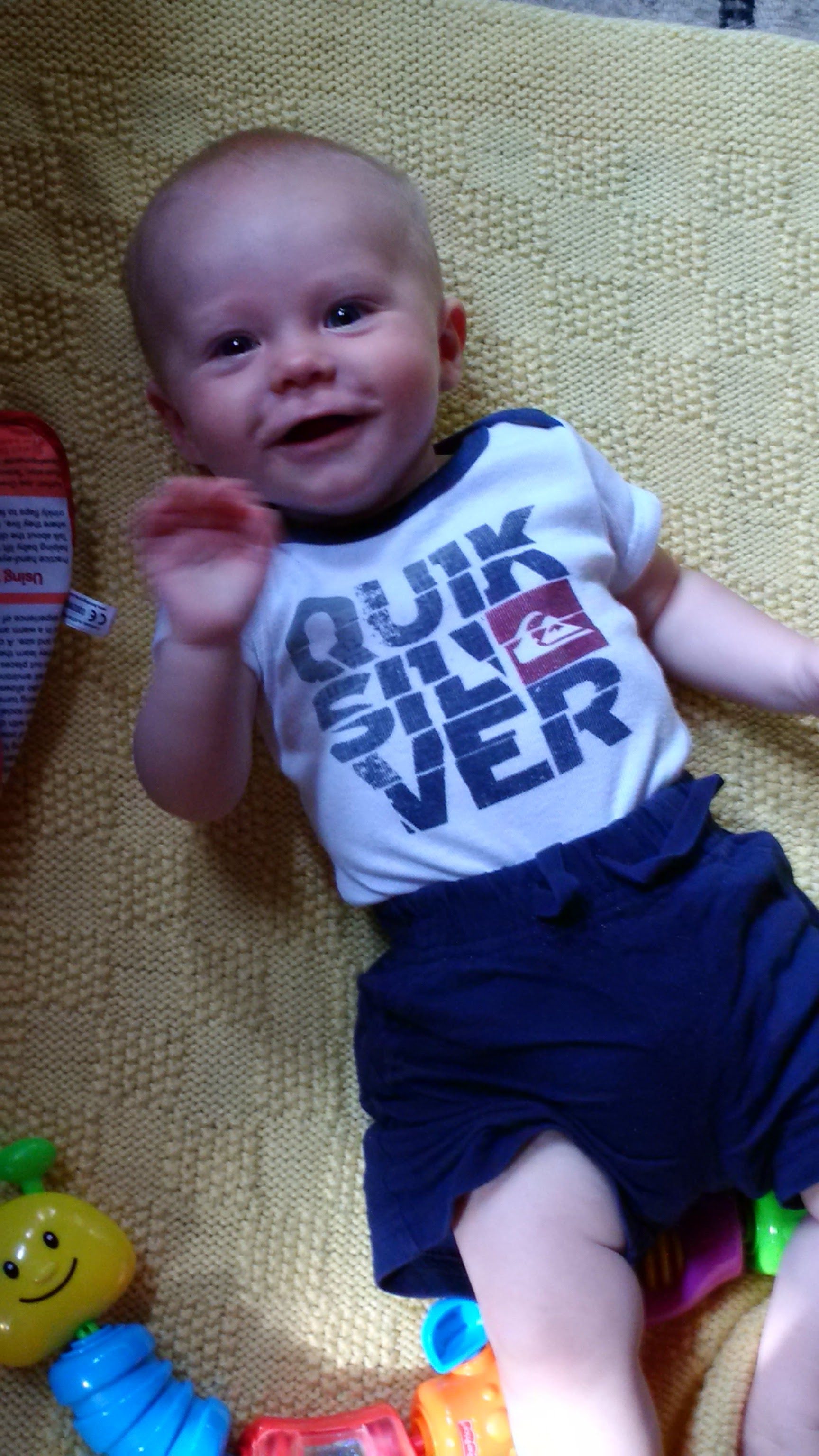 Mr. Squirmy-Wormy is now 5 months old…and getting wigglier and wigglier. While his good core strength makes him more portable, his curiosity and grip strength make him more difficult to handle – he’s constantly shifting around in our arms to see what’s making noise, and grabs at everything and pulls…Lindy’s hair out! He’s not quite crawling but now that he’s able to move around so easily in his crib, he’s become increasingly difficult to put down for naps which he flat out refuses most days. We’re only a few days into the fifth month, but so far it is the most difficult. Dealing with our own lack of sleep is one thing – but an overtired cranky baby on top of our own lack of sleep is entirely another story!! Lindy is looking forward to her first night away next weekend…