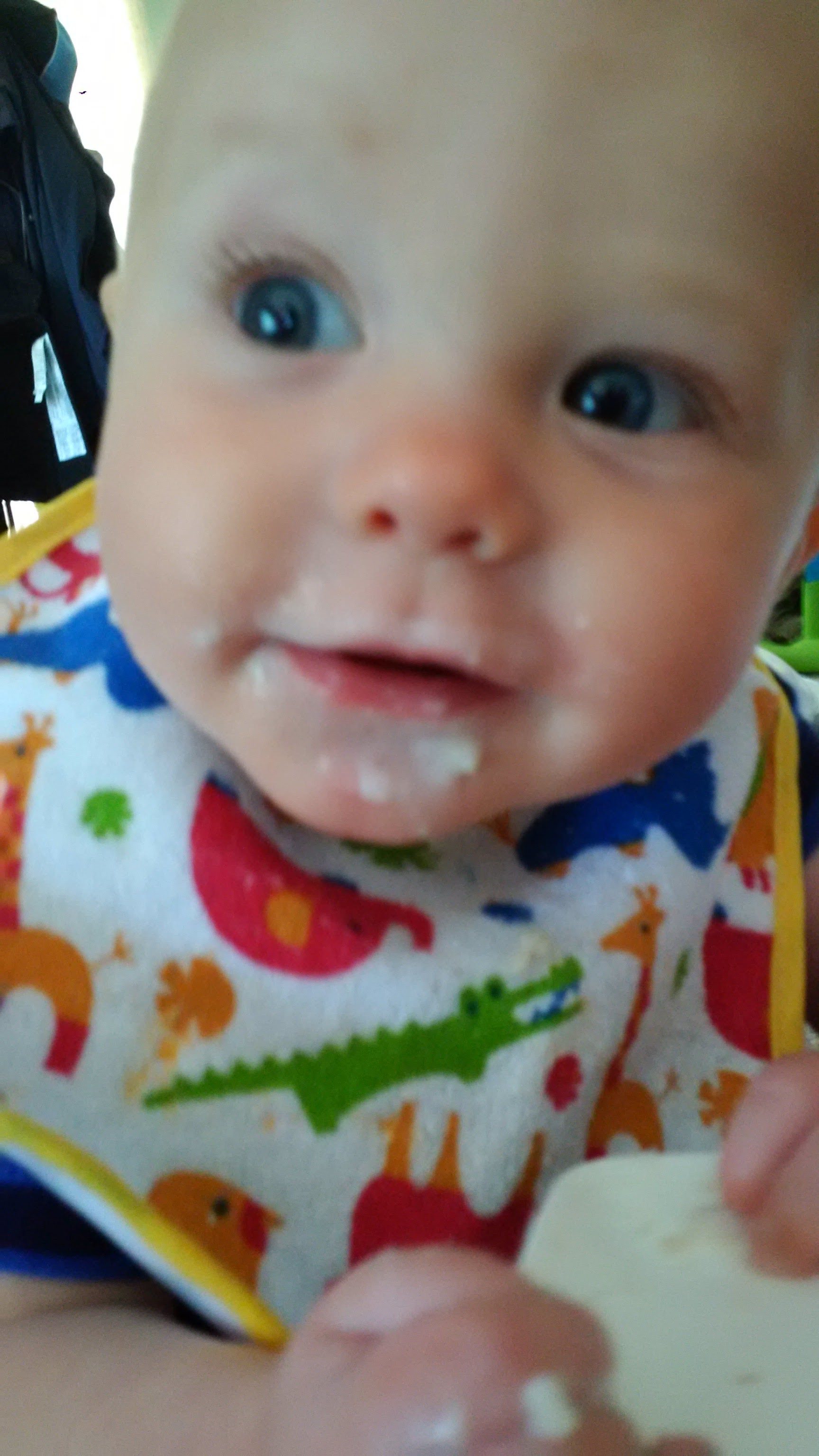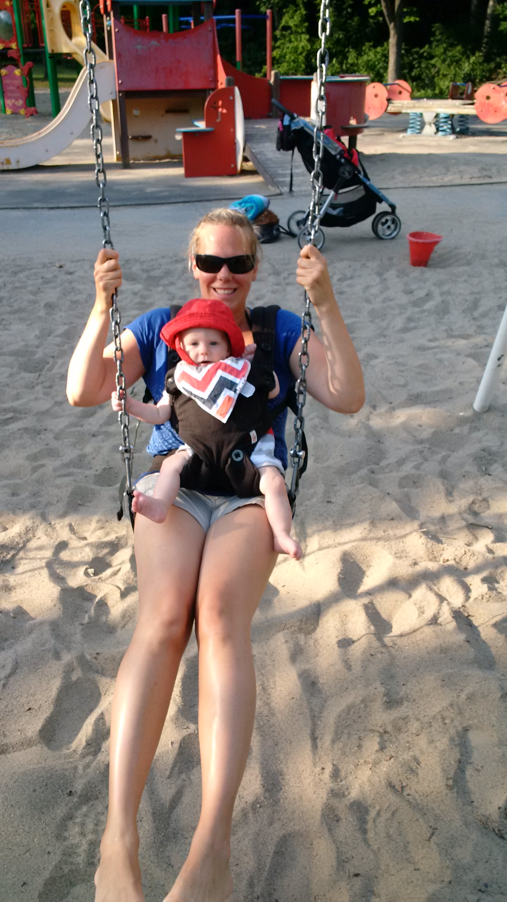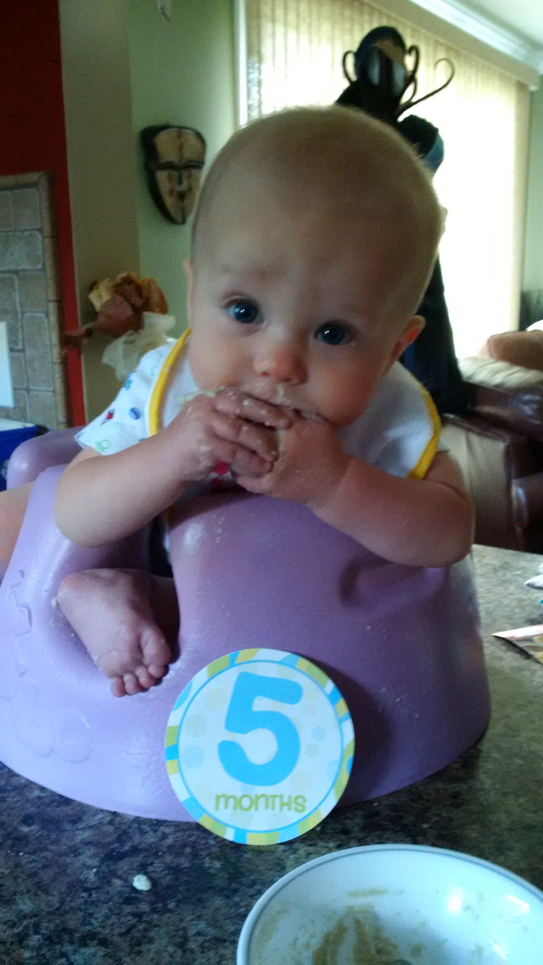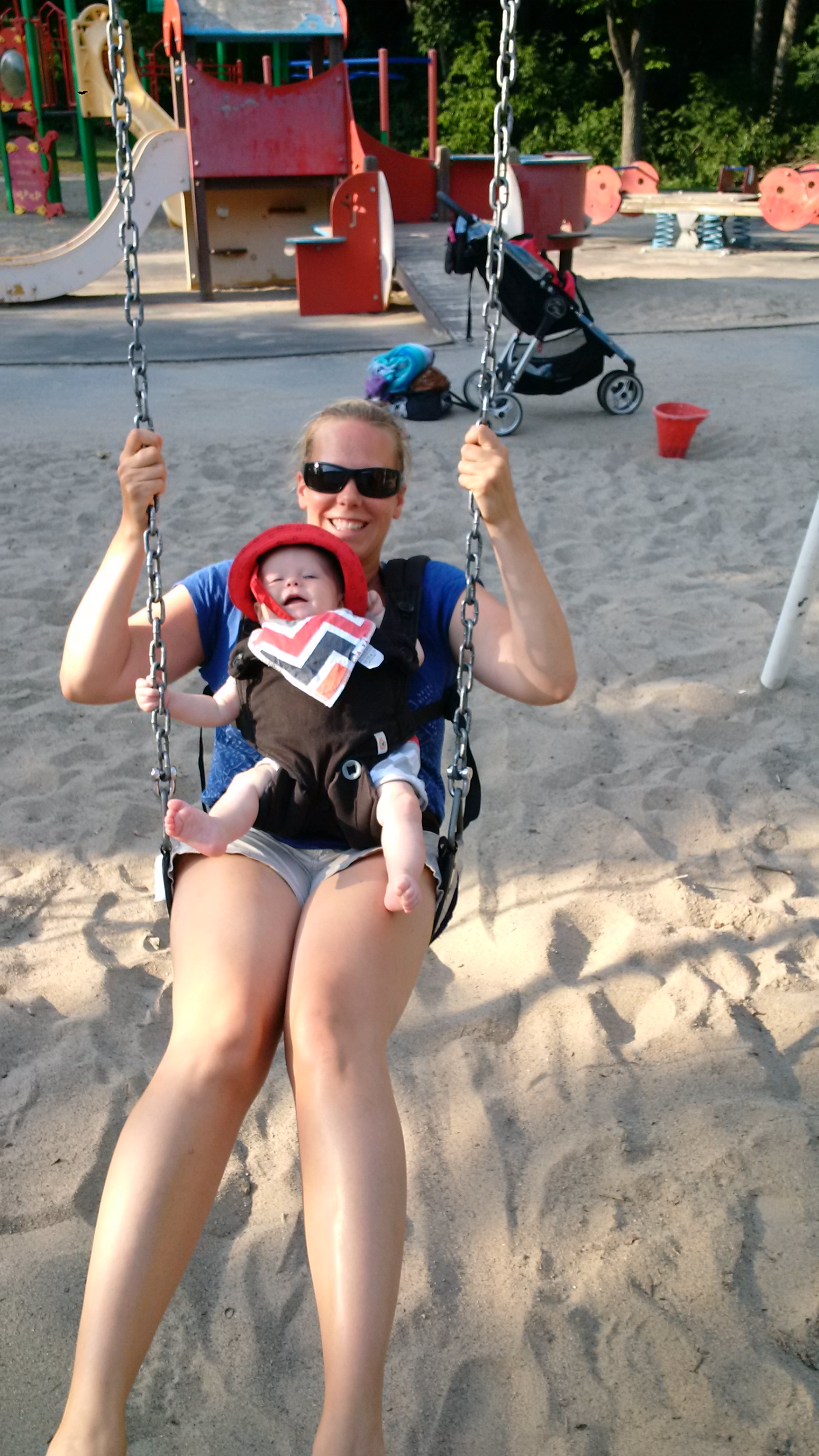 A few new activities to add to the list including surviving his first cottage party August long weekend, baby wading pool trips, swinging on the swing set, playing at the toy library, baby salsa dancing, and most exciting of all : EATING! While pretty much everything goes in his mouth already, Isaac has been officially introduced to sucking on raw carrots and cucumbers, and eating oatmeal, brown rice cereal, applesauce and sweet potato.