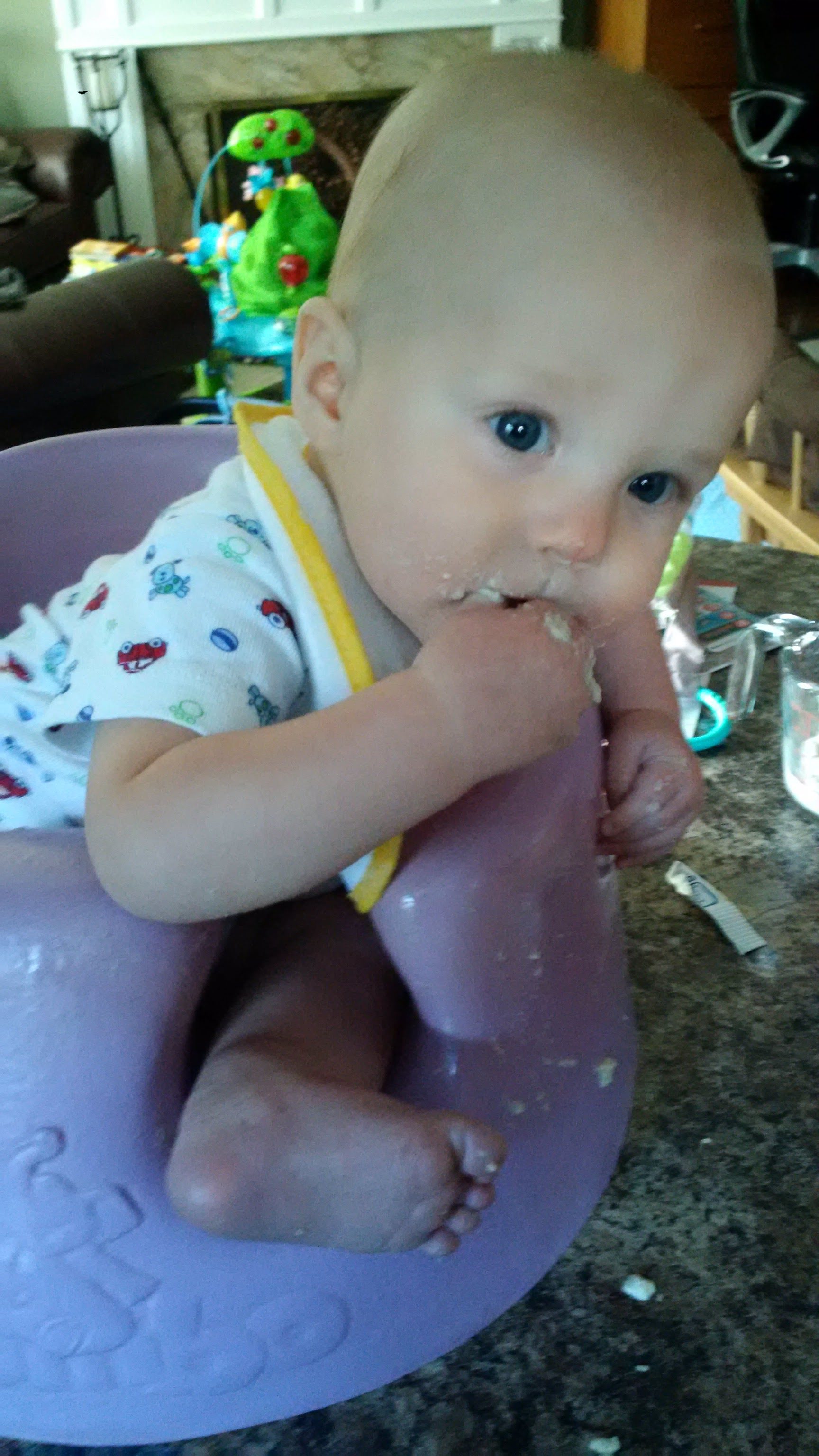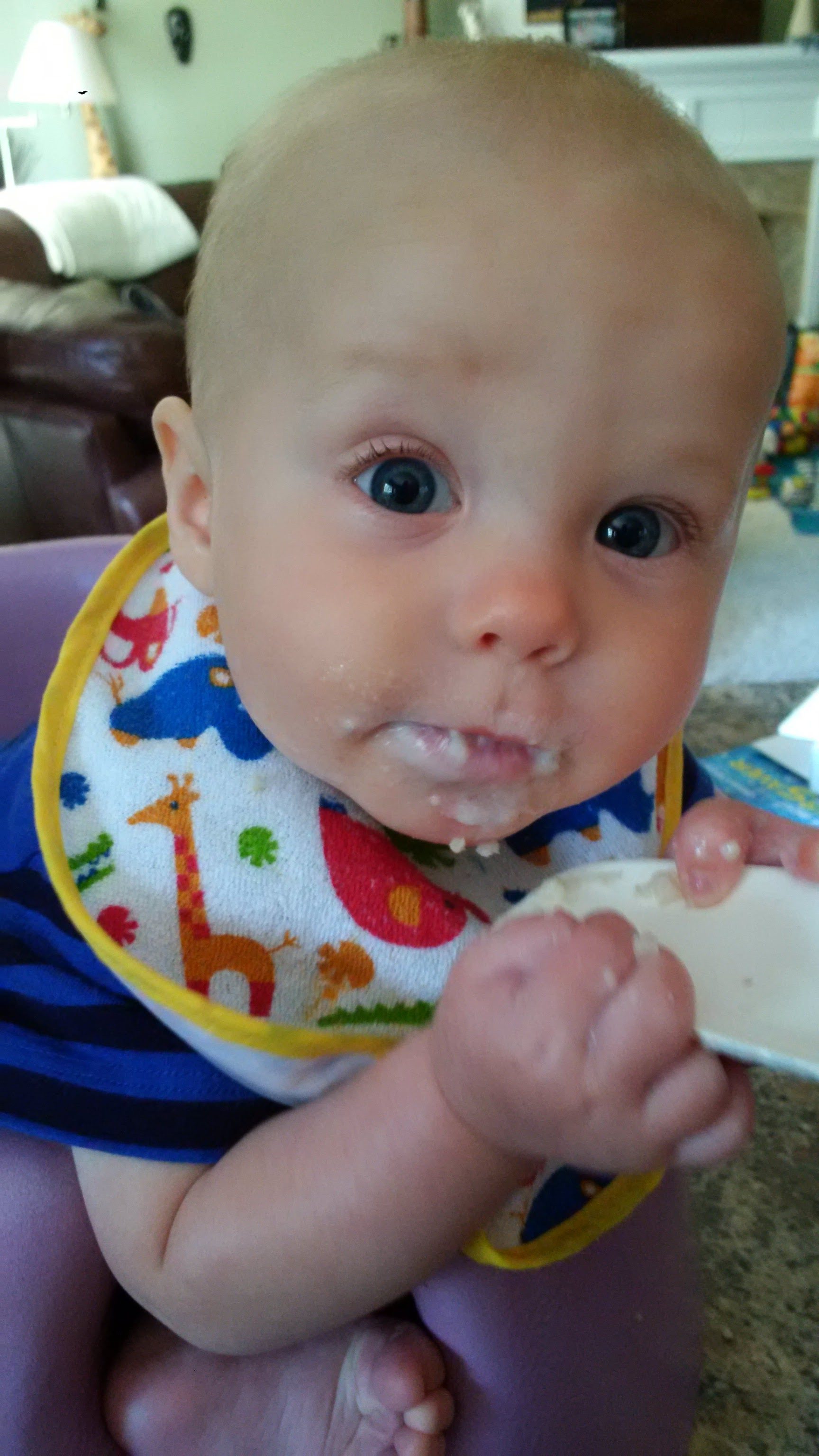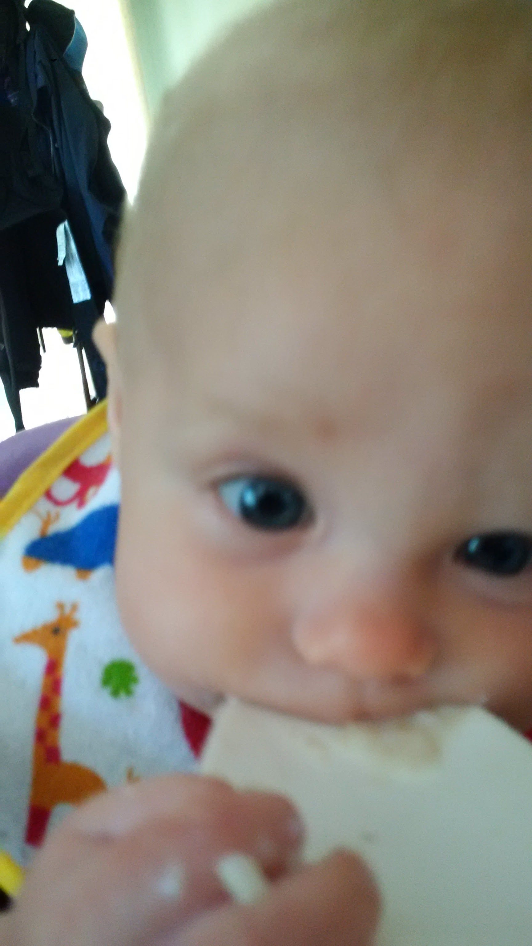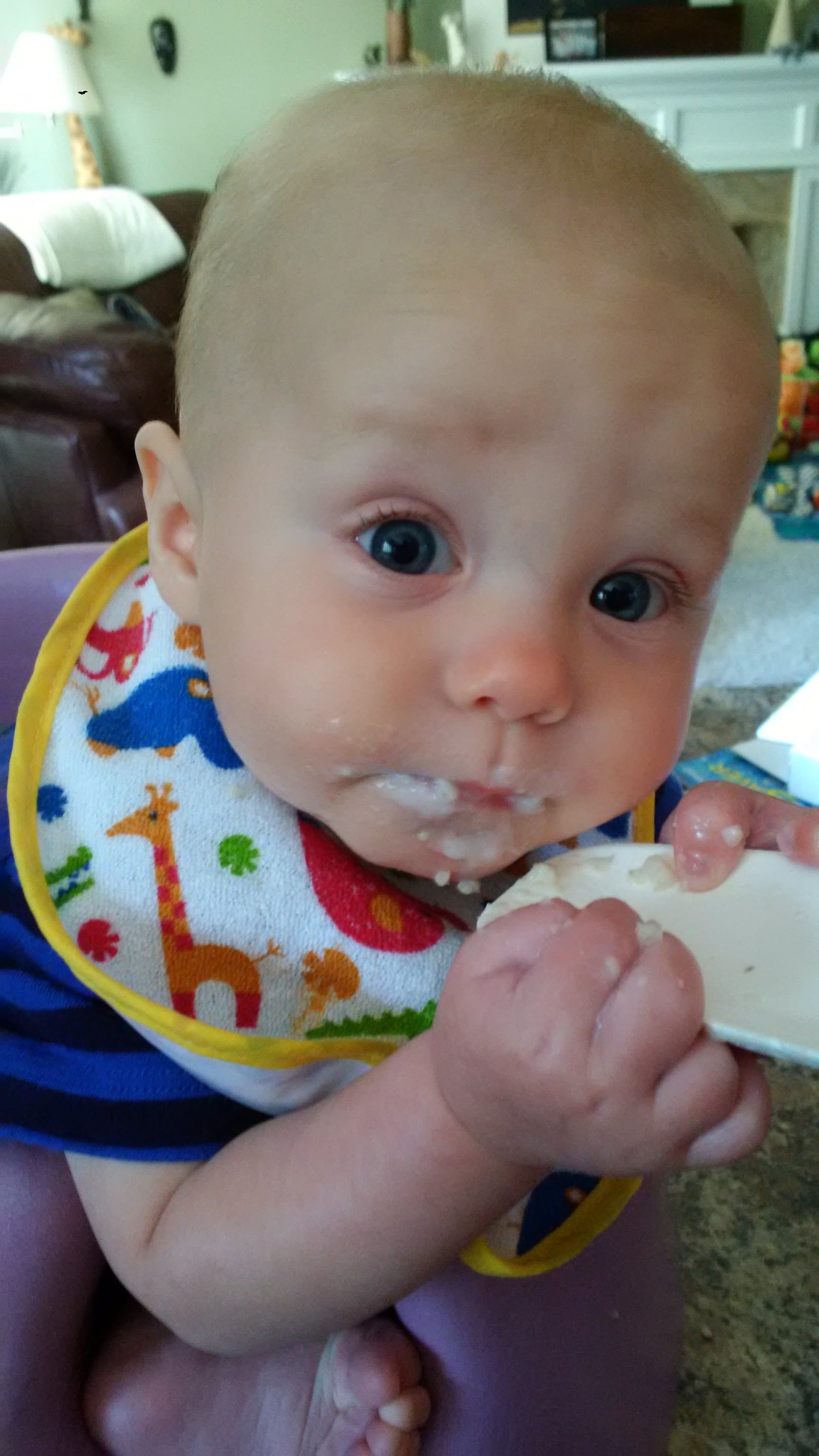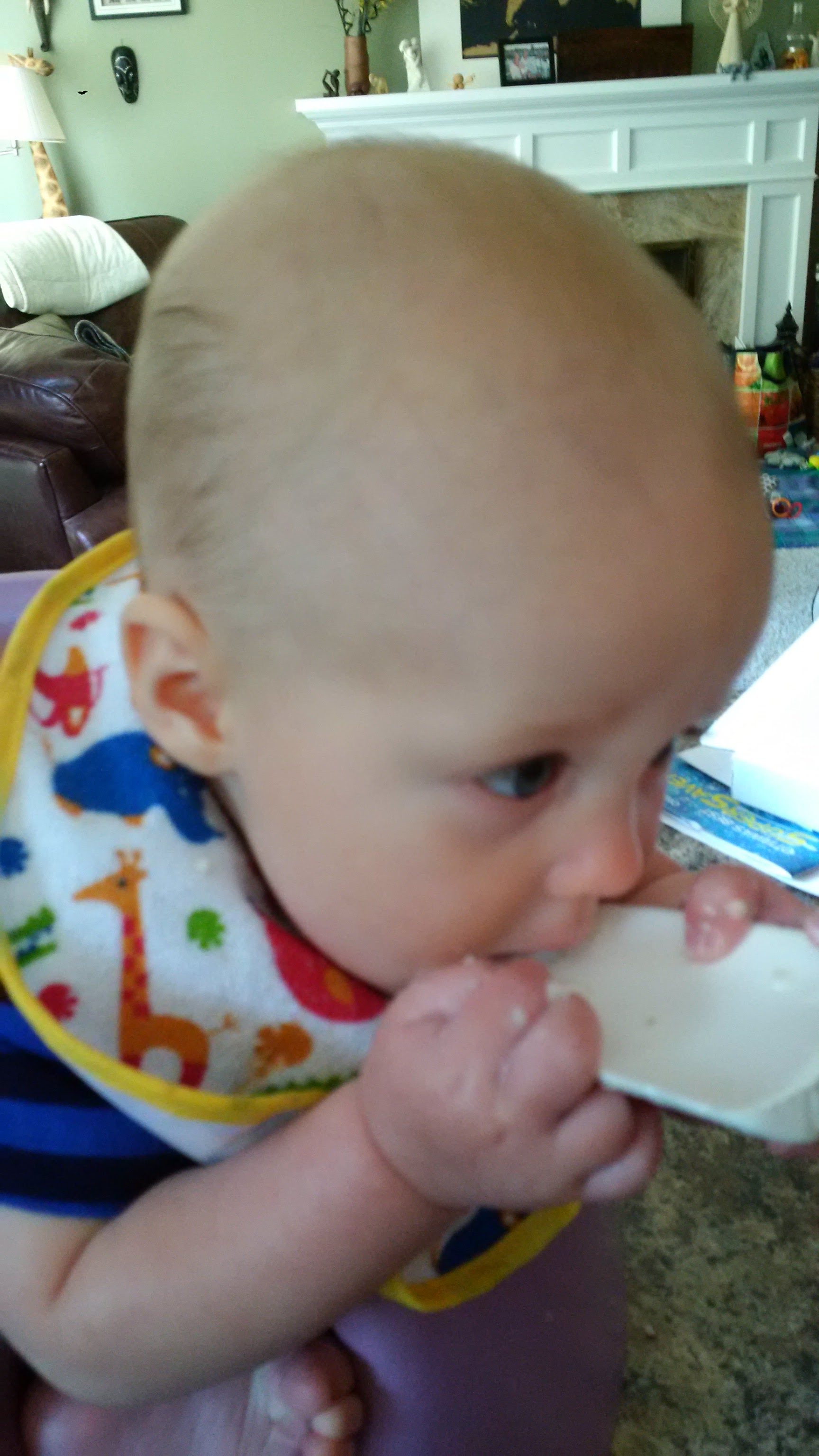 A few new activities to add to the list including surviving his first cottage party August long weekend, baby wading pool trips, swinging on the swing set, playing at the toy library, baby salsa dancing, and most exciting of all : EATING! While pretty much everything goes in his mouth already, Isaac has been officially introduced to sucking on raw carrots and cucumbers, and eating oatmeal, brown rice cereal, applesauce and sweet potato.