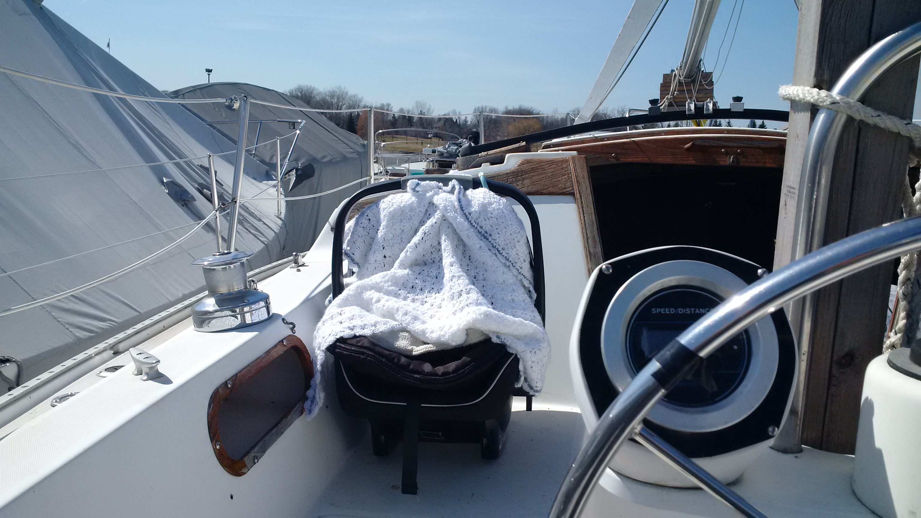 The first beautiful weekend of spring usually includes a trip to the sailing club to unveil the boat after the winter, and see what needs to be done before launch. This year, boat launch weekend comes early so there’s a bit of a rush to get ready in time…meaning all hands on deck!
