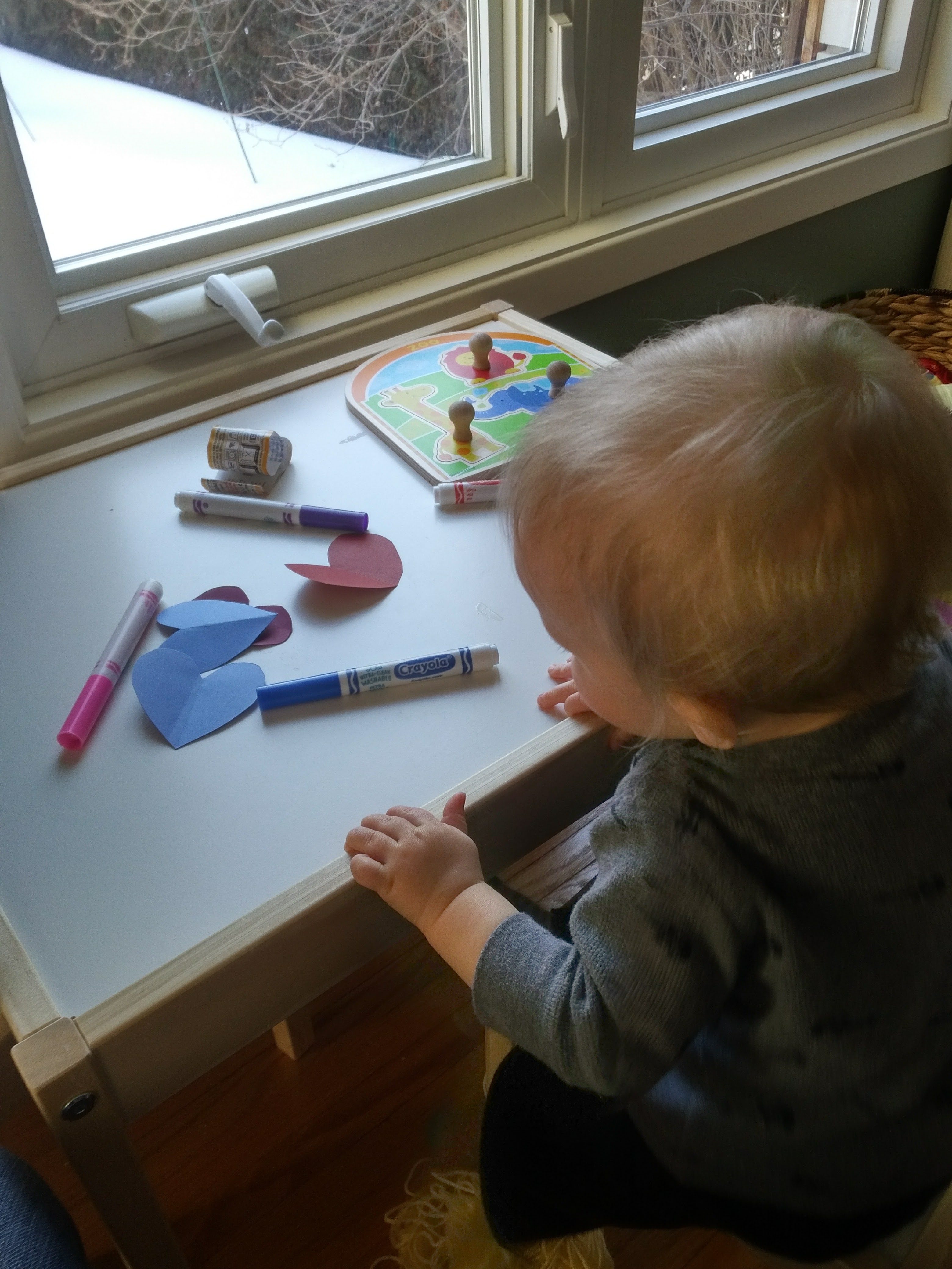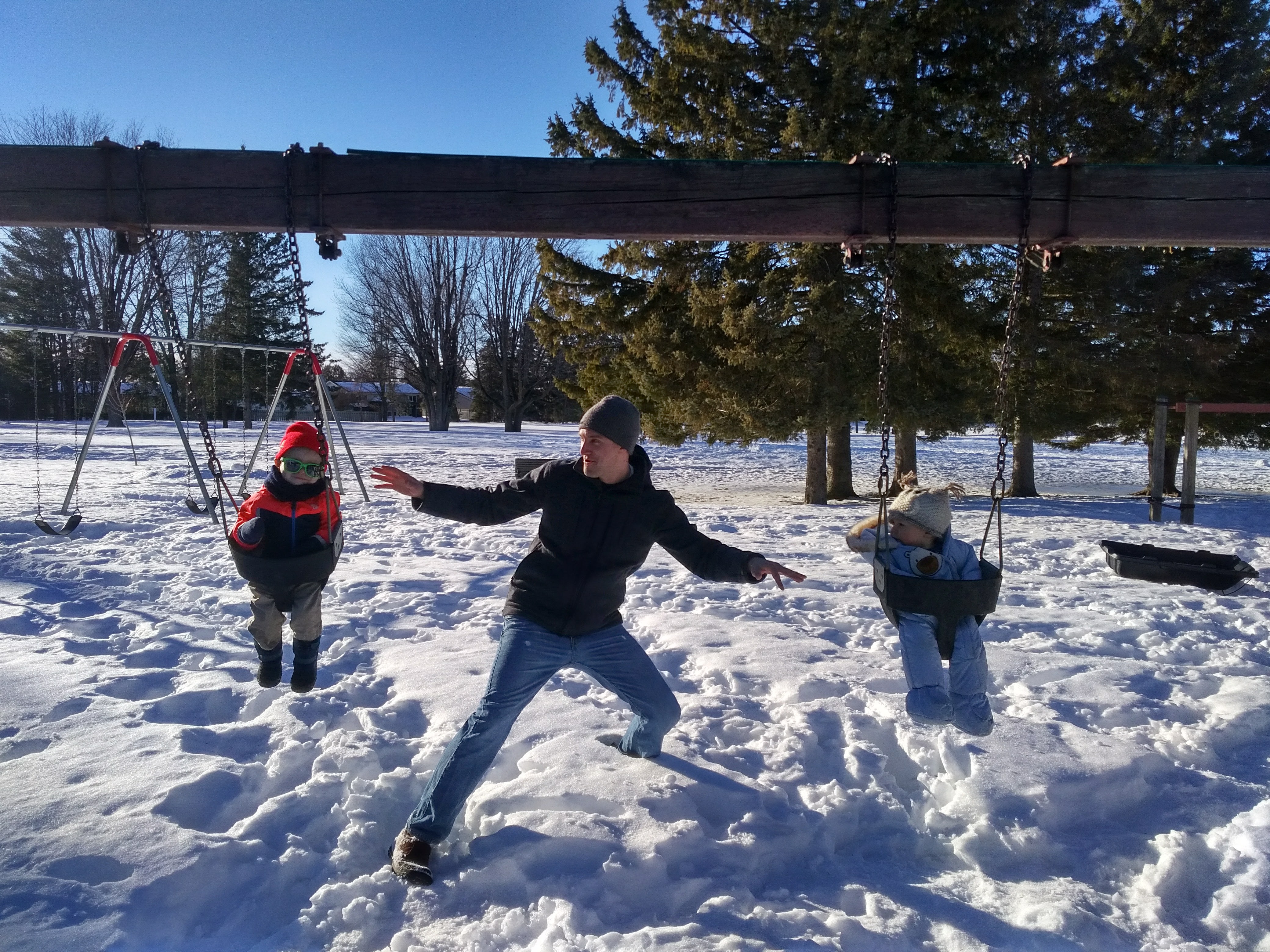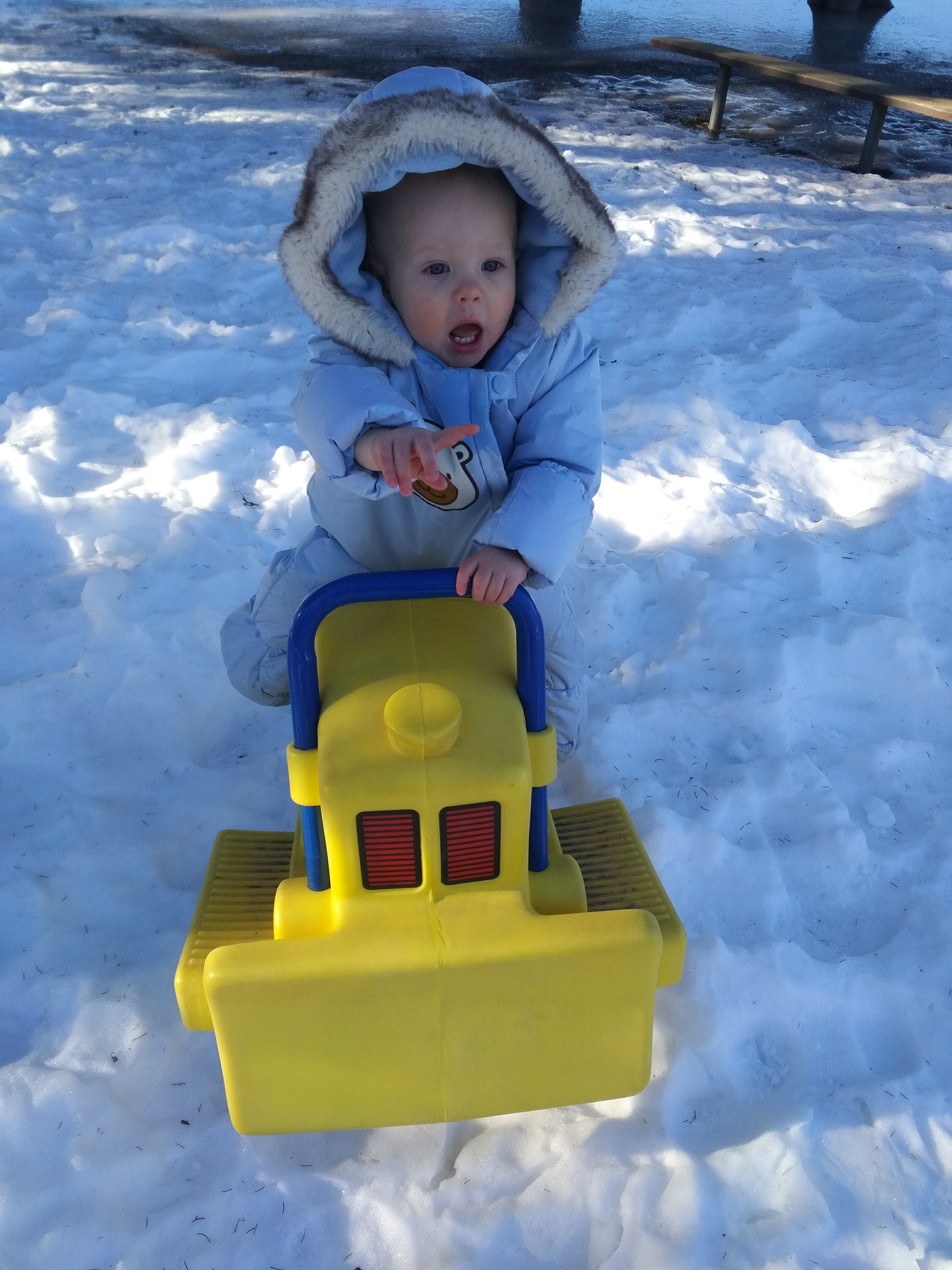 Isaac’s last month at home with Lindy was busy with playgroups and gym time – trying to squeeze as much fun in together as possible. He attended his first valentine’s day party at a neighbour’s house where he received several valentines. We spent a sunny afternoon at the neighbourhood Winter Fun Day, around a campfire, tobaganning, and playing on the swings. Family Day weekend was spent mostly outdoors, with a trip to the park with friends Mat and Kim and Iden.