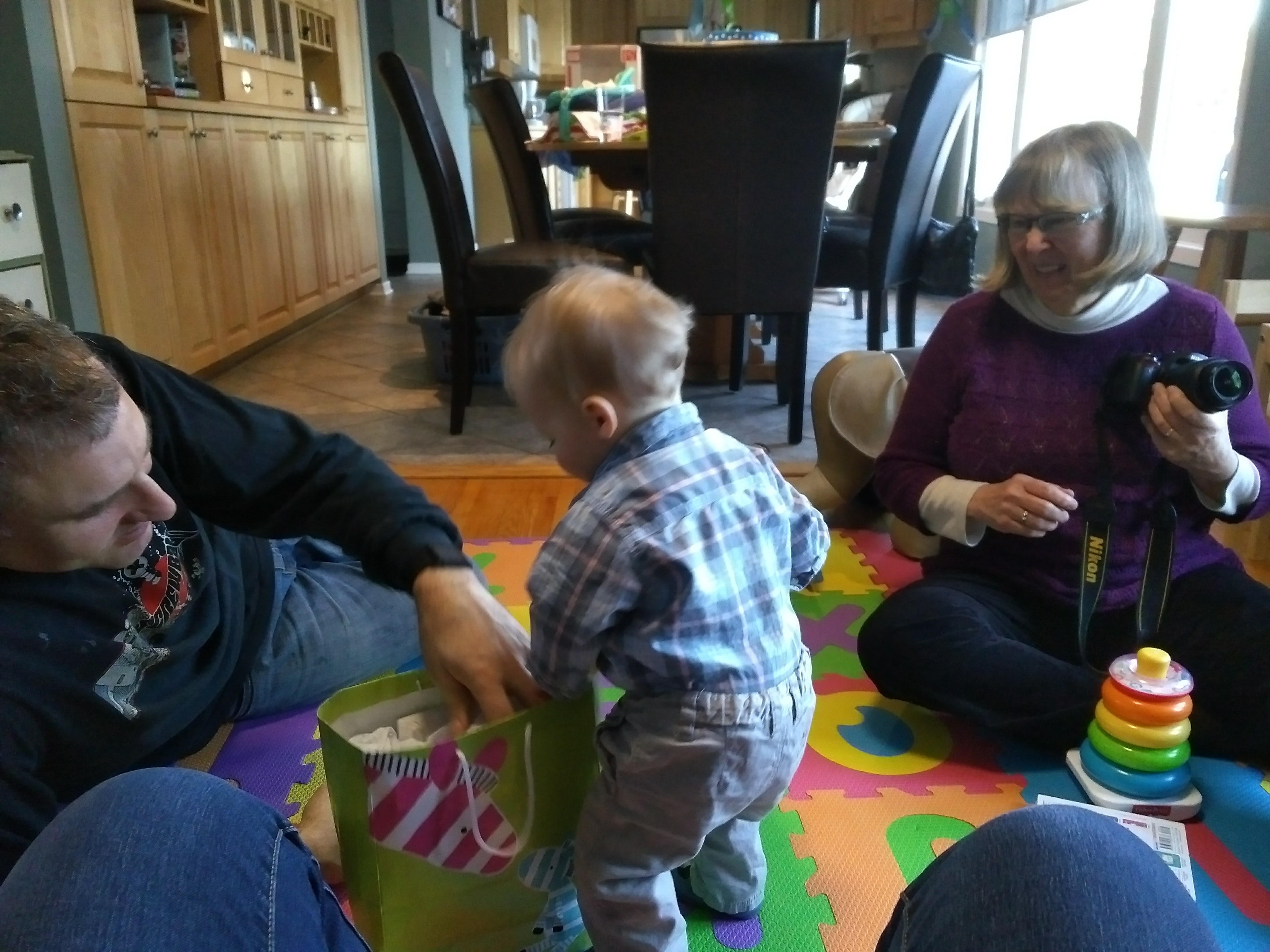 Isaac’s not a baby anymore! Isaac turned 1 on March 7th 2017. He spent his birthday at daycare, as it was Lindy’s second day back to work. Opa and Oma came to visit the weekend before, to celebrate the Otterspoor March birthdays with Opa turning 65, Uncle Greg turning 38 and Isaac turning 1 – all born in the first week of March. We celebrated the Clark March birthdays the following weekend, as Papa turns 75 this month too!