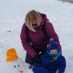 Back from the beach – we jumped right back into winter. We visited Winterlude again, skating on the canal and attempting to build snowmen at Landsdowne Park after a ride on the snowbus. Then we made a trip to visit Opa and Oma in Bonfield – where they hung out with Isaac so Lindy and Jon could go skiing at the new hill in Mattawa. Isaac helped bake his birthday cake, and played the piano. We made an ice tower from coloured blocks that Oma made, and went for a walk on the lake with Opa to see the ice fishing shacks.
