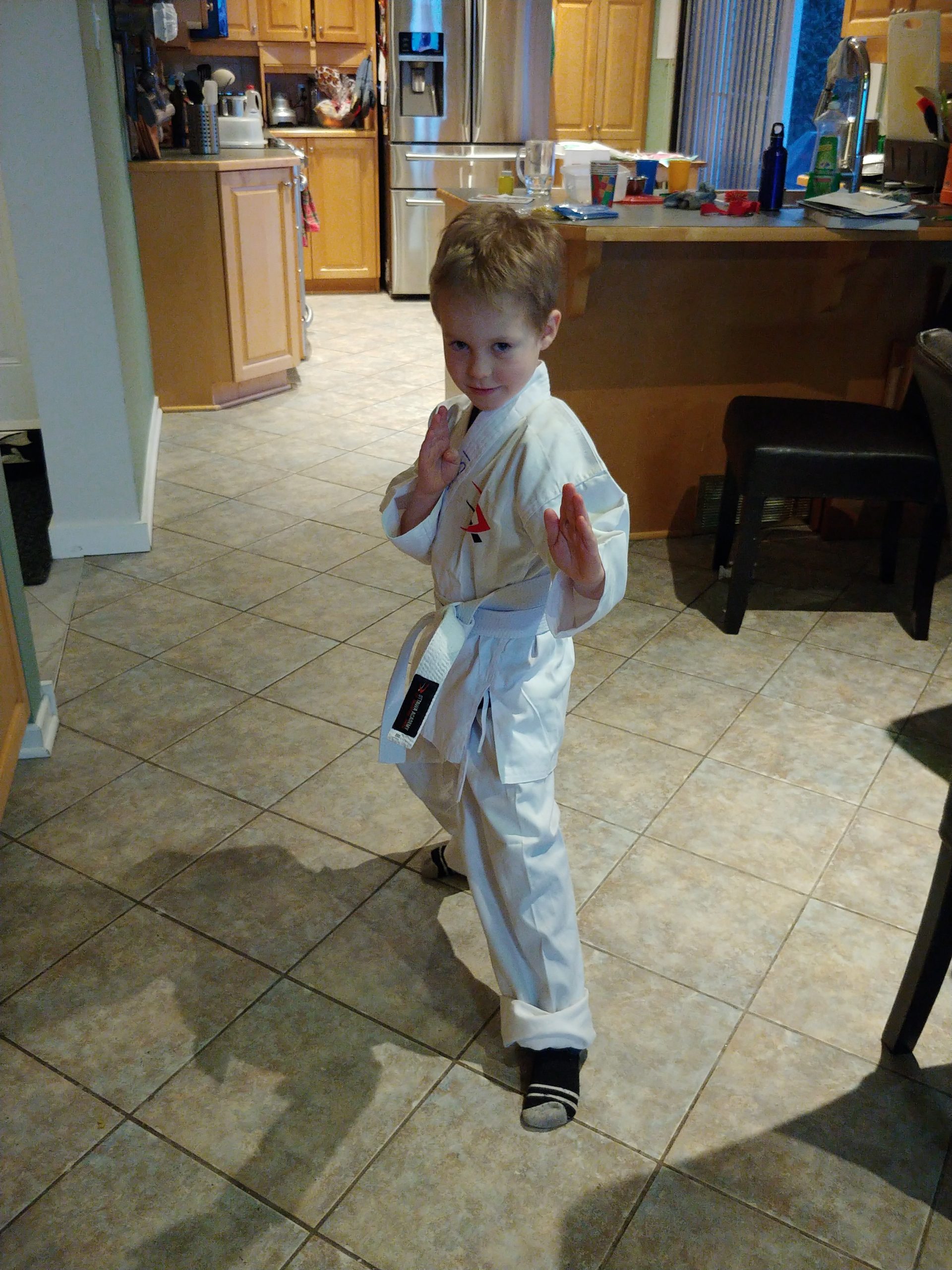 Isaac started Grade 1 this year and was worried about not being with his friends or having toys in the classroom. He bravely started a new after school program at the Ottawa Academy of Martial Arts. While he hates having to sit in school all day, he has adjusted well and is loving the Jiu Jitsu lessons. He is learning to read in French and English and his teacher raves about him. He also lost his first tooth!