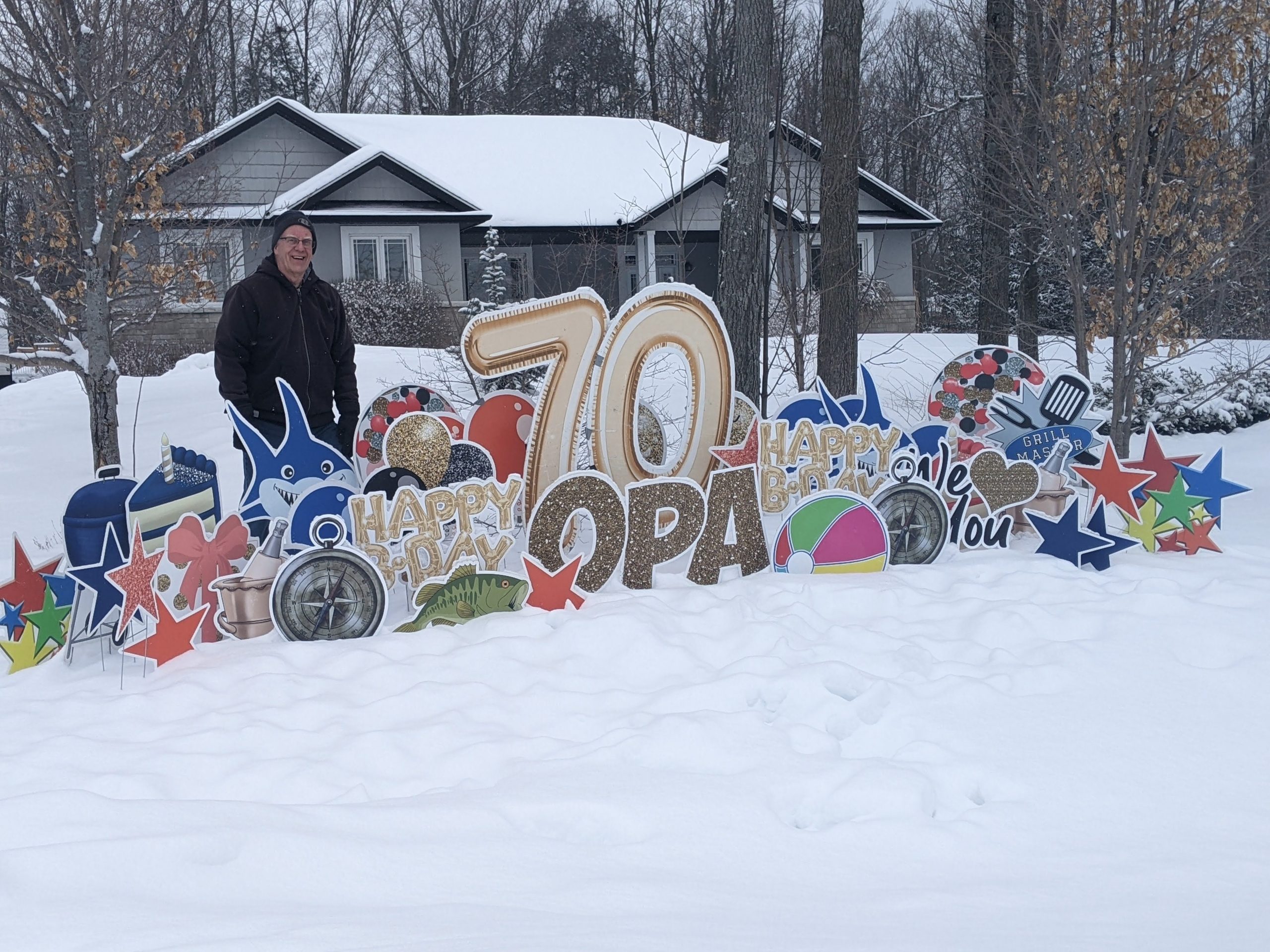 Then we celebrated Dad’s 70th birthday as much as the restrictions would allow, with a small family gathering and an extended zoom call with friends and family. There was also the surprise sign on Dad’s front lawn…