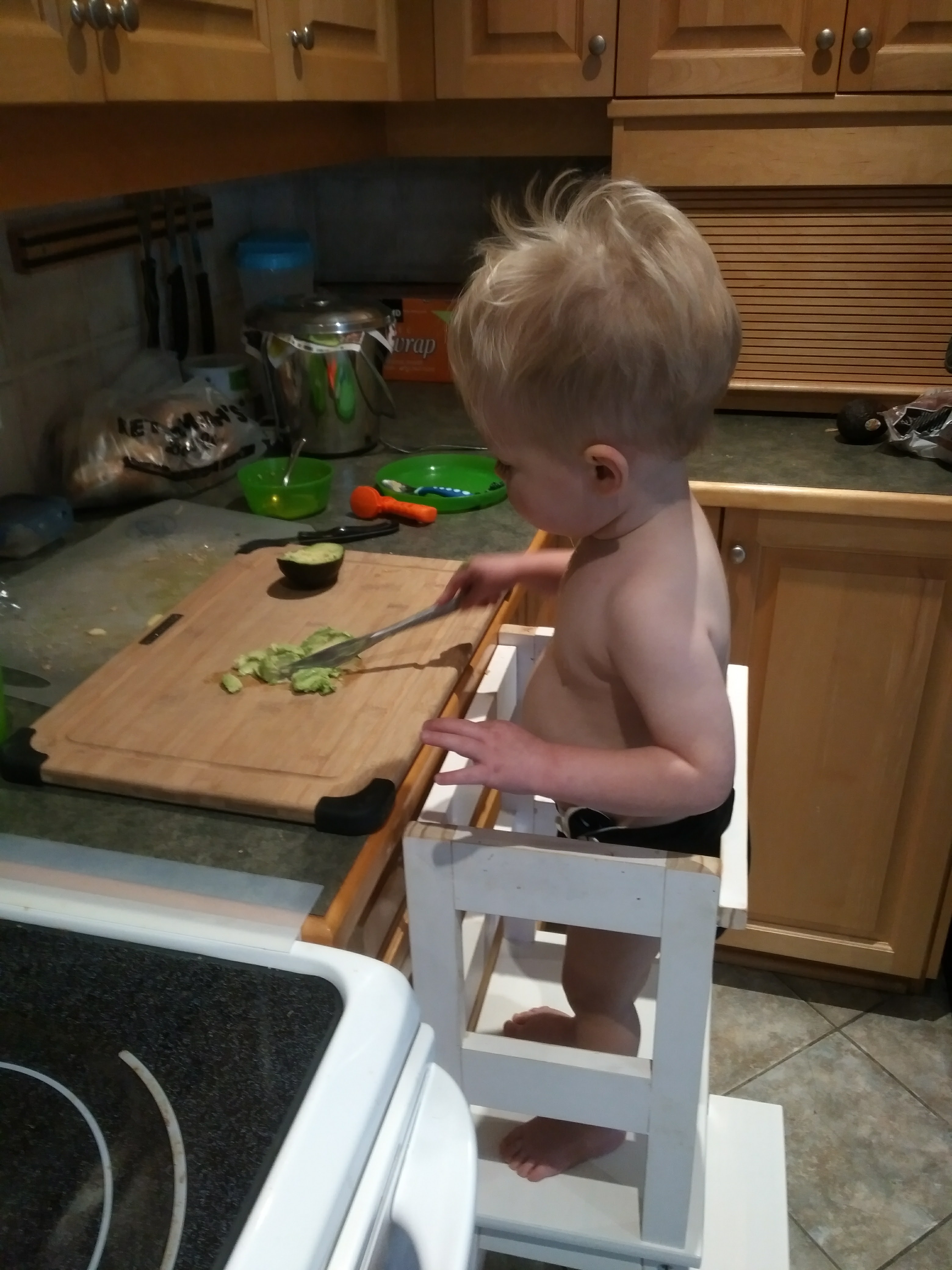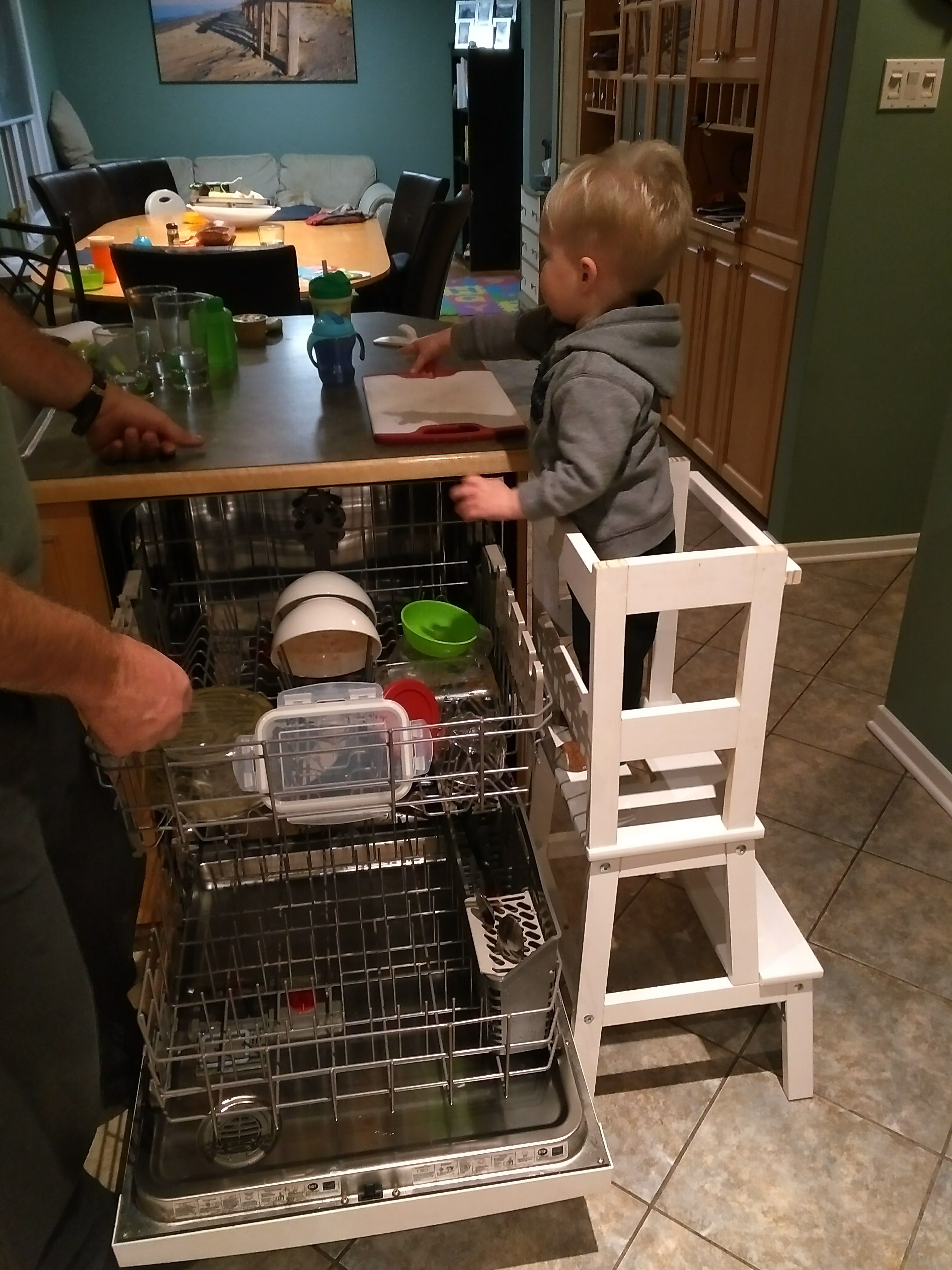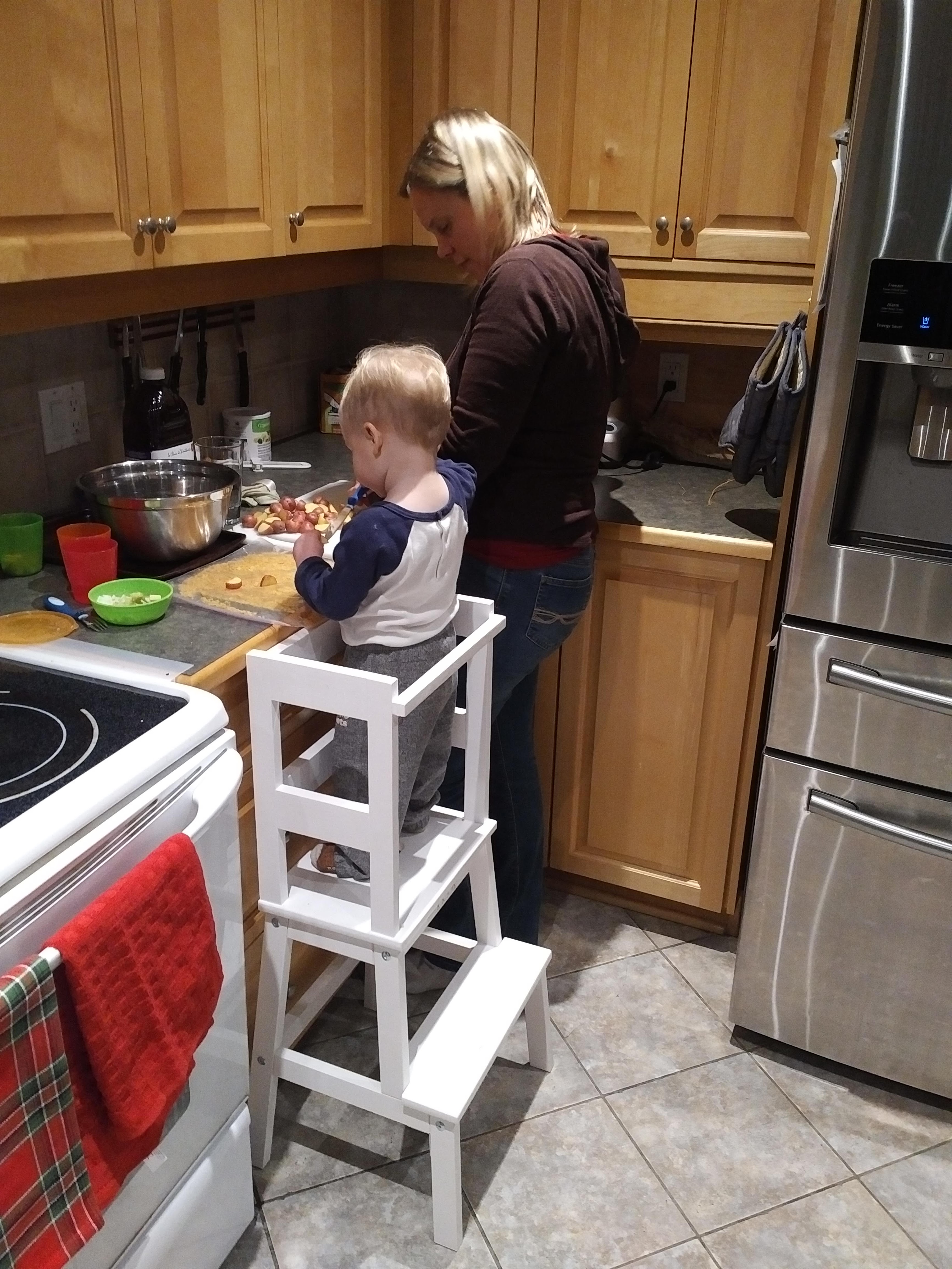 Jon built Isaac a ‘learning tower’ on top of an Ikea stool so that Isaac can participate in everything we do in the kitchen. Little chef in the making, and one who even helps clean up!
