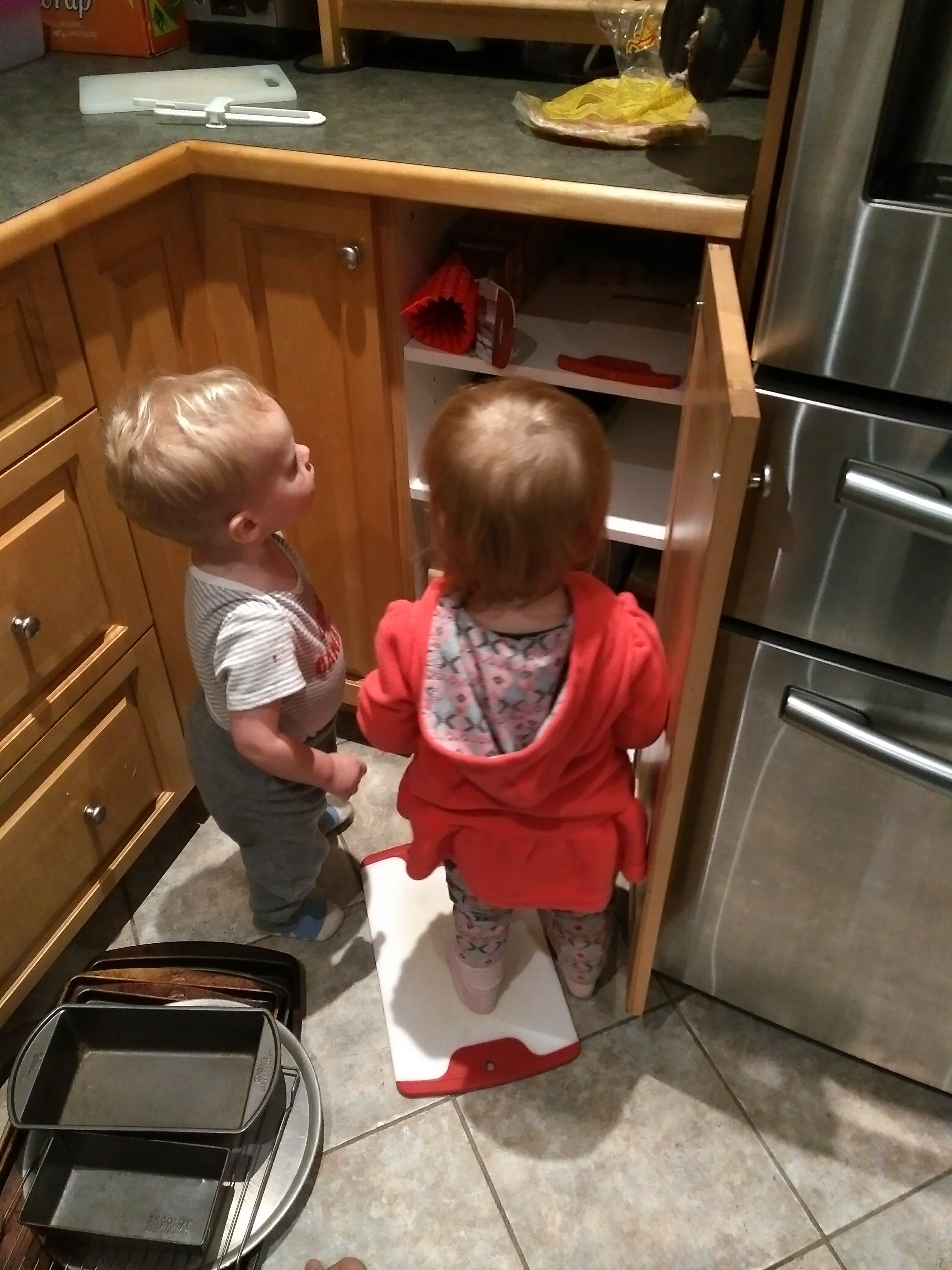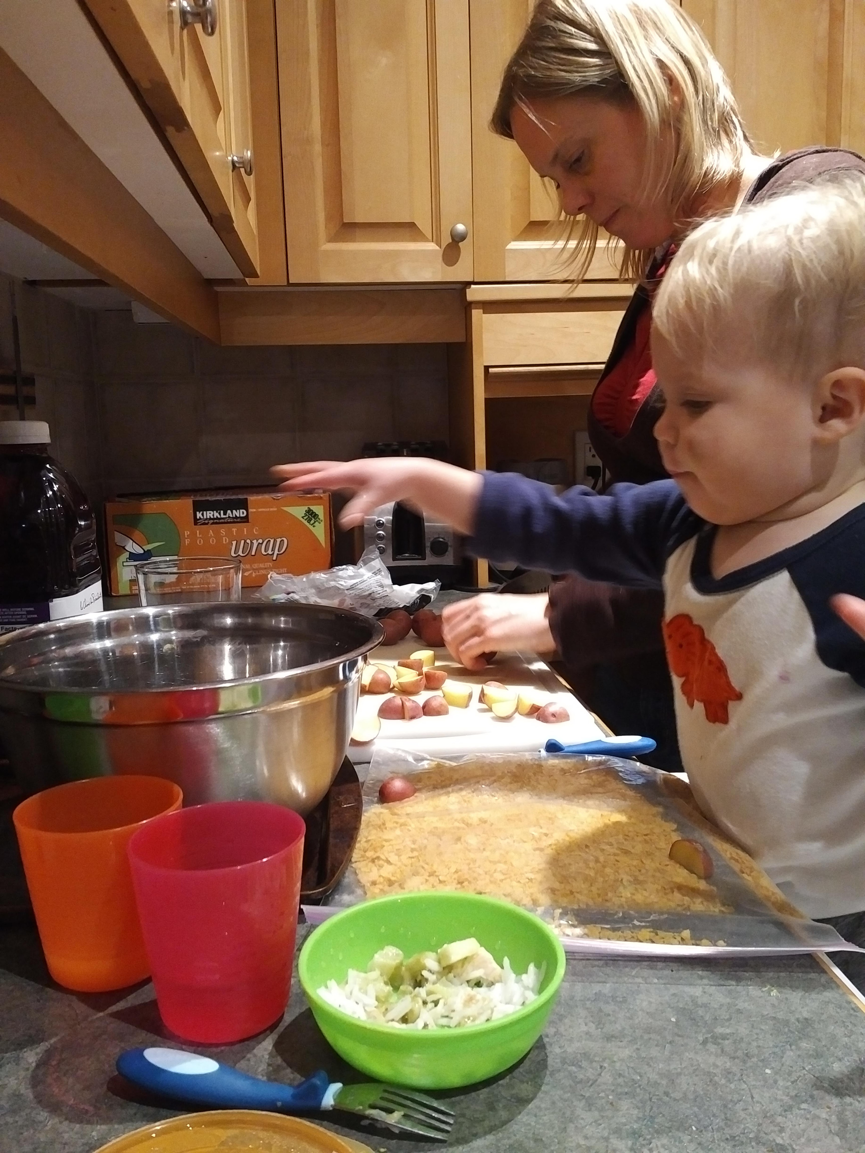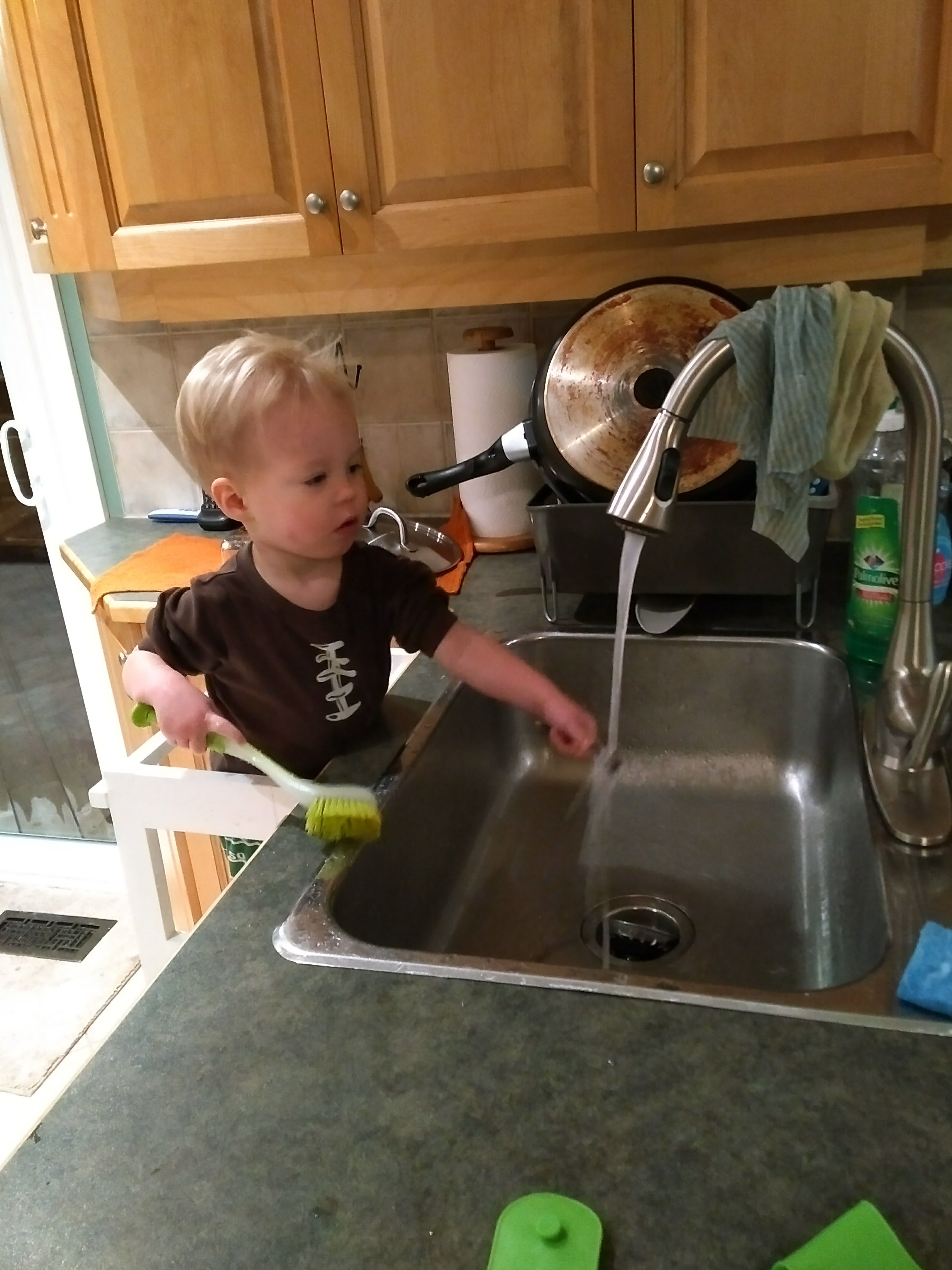 Jon built Isaac a ‘learning tower’ on top of an Ikea stool so that Isaac can participate in everything we do in the kitchen. Little chef in the making, and one who even helps clean up!