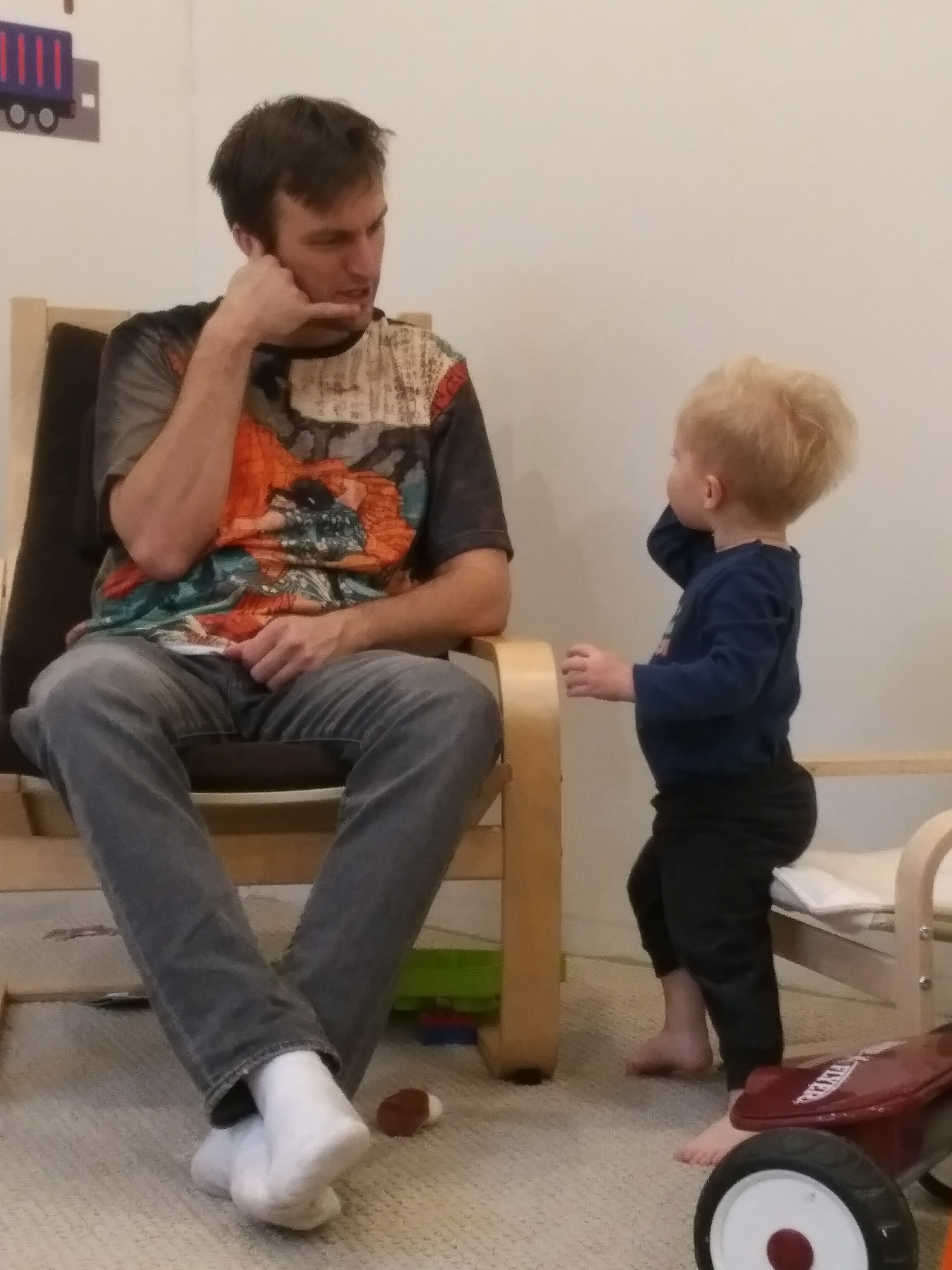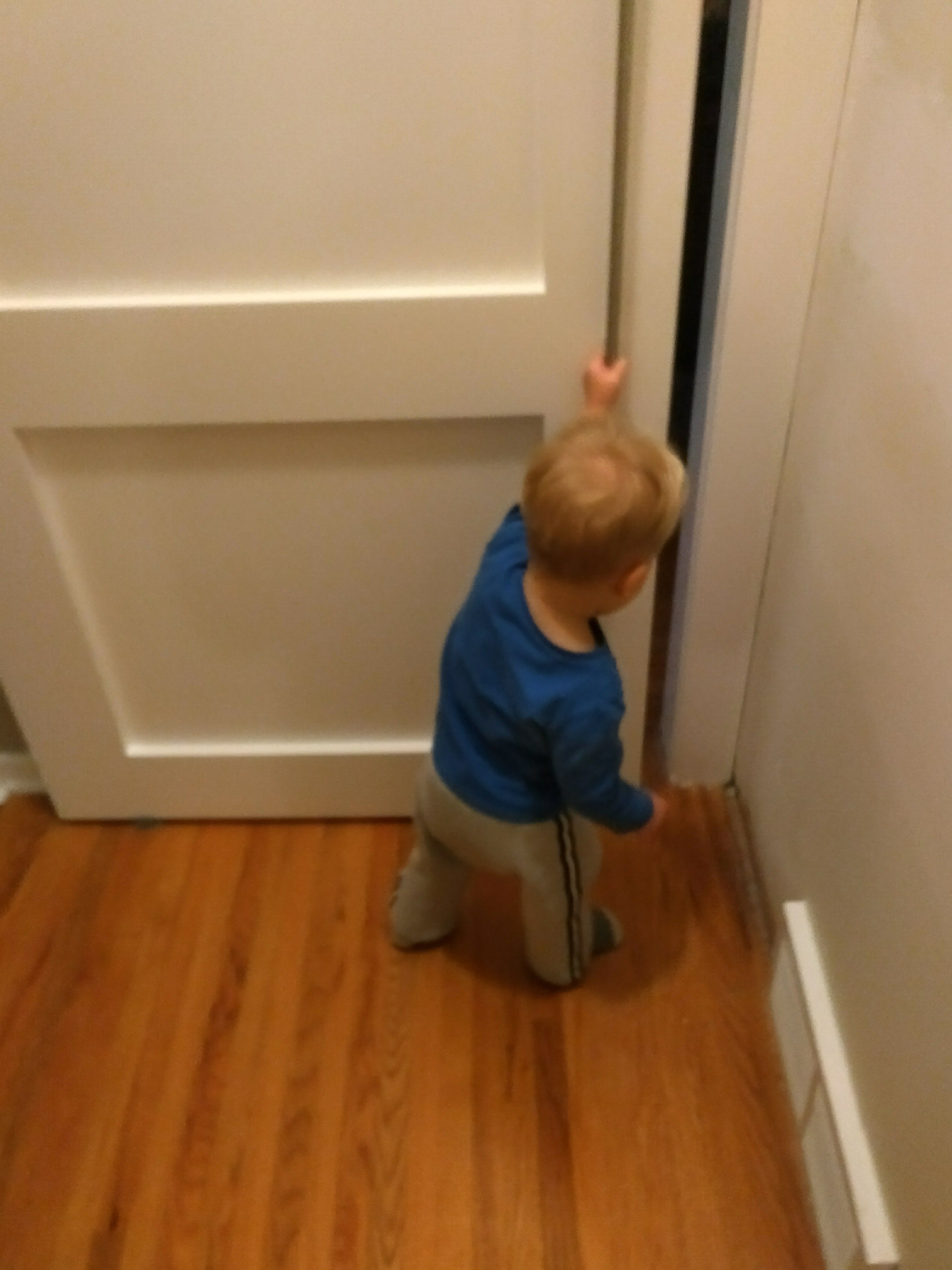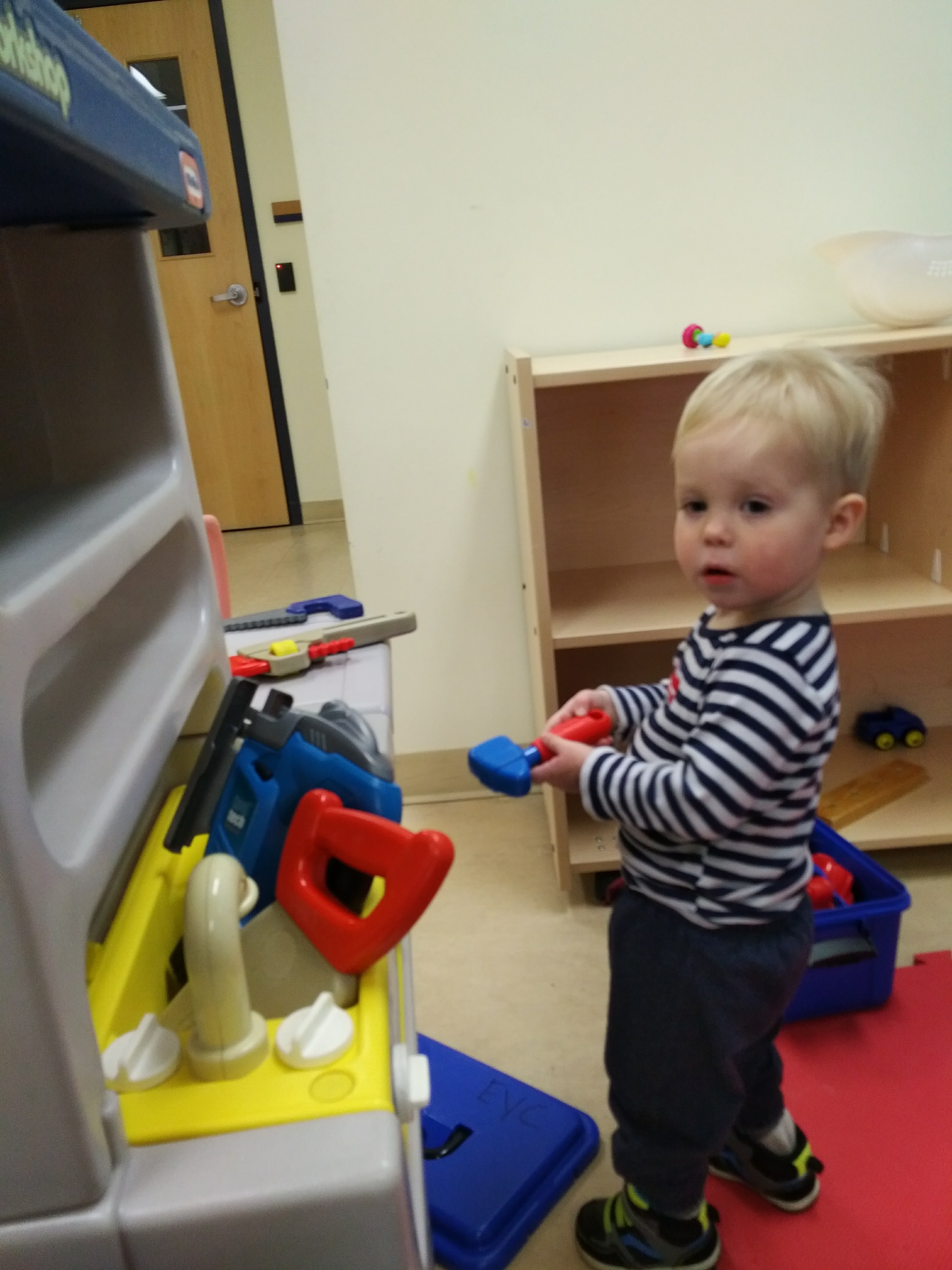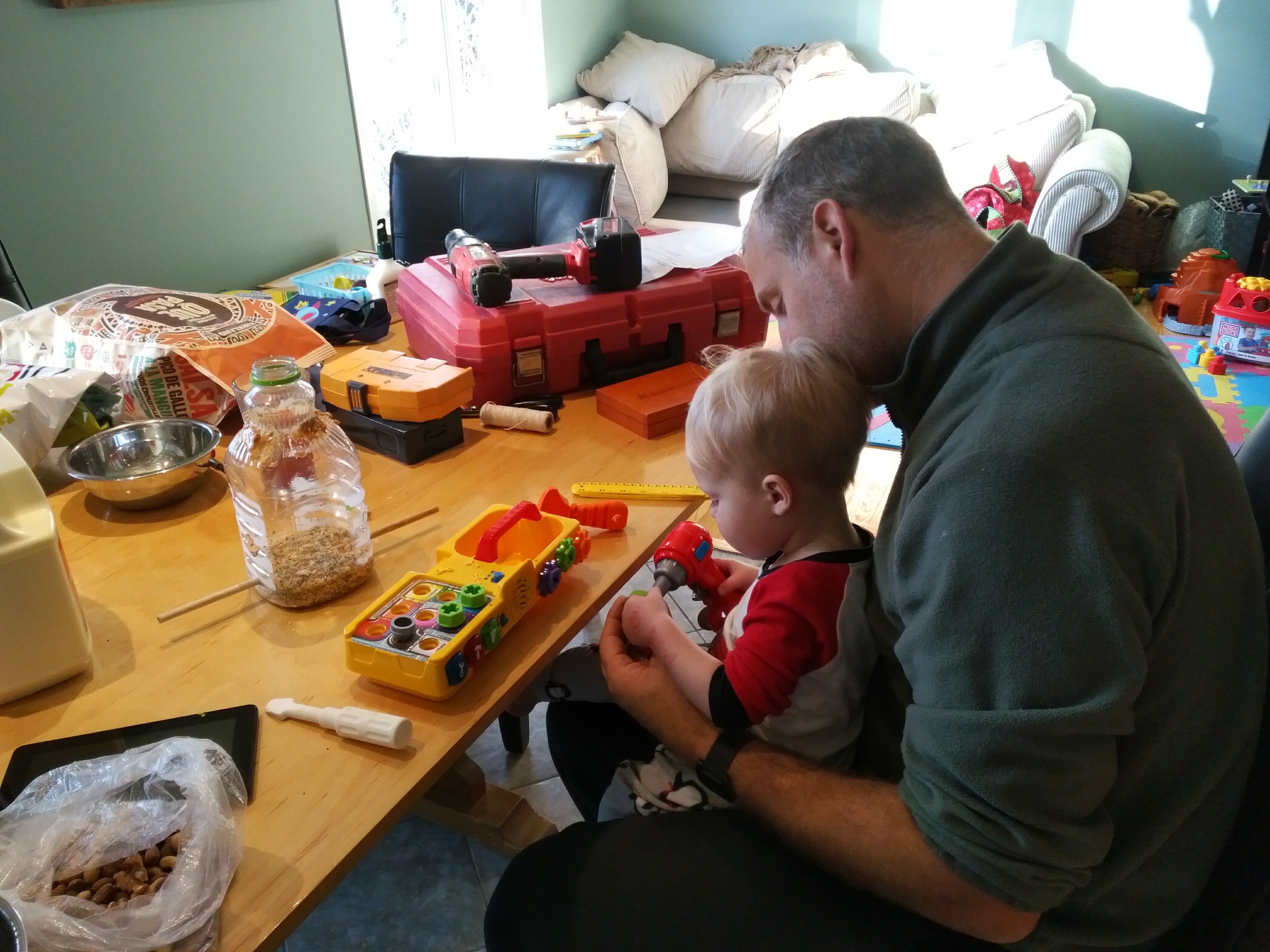 Jon was working on building the bedroom door, so anything to do with daddy’s tools and Isaac is in heaven. We spend a lot of time looking through Jon’s wall of drawers full of screws and staples and drill bits. “Daddy drill, Isaac drill” – and Isaac brings his tools everywhere.