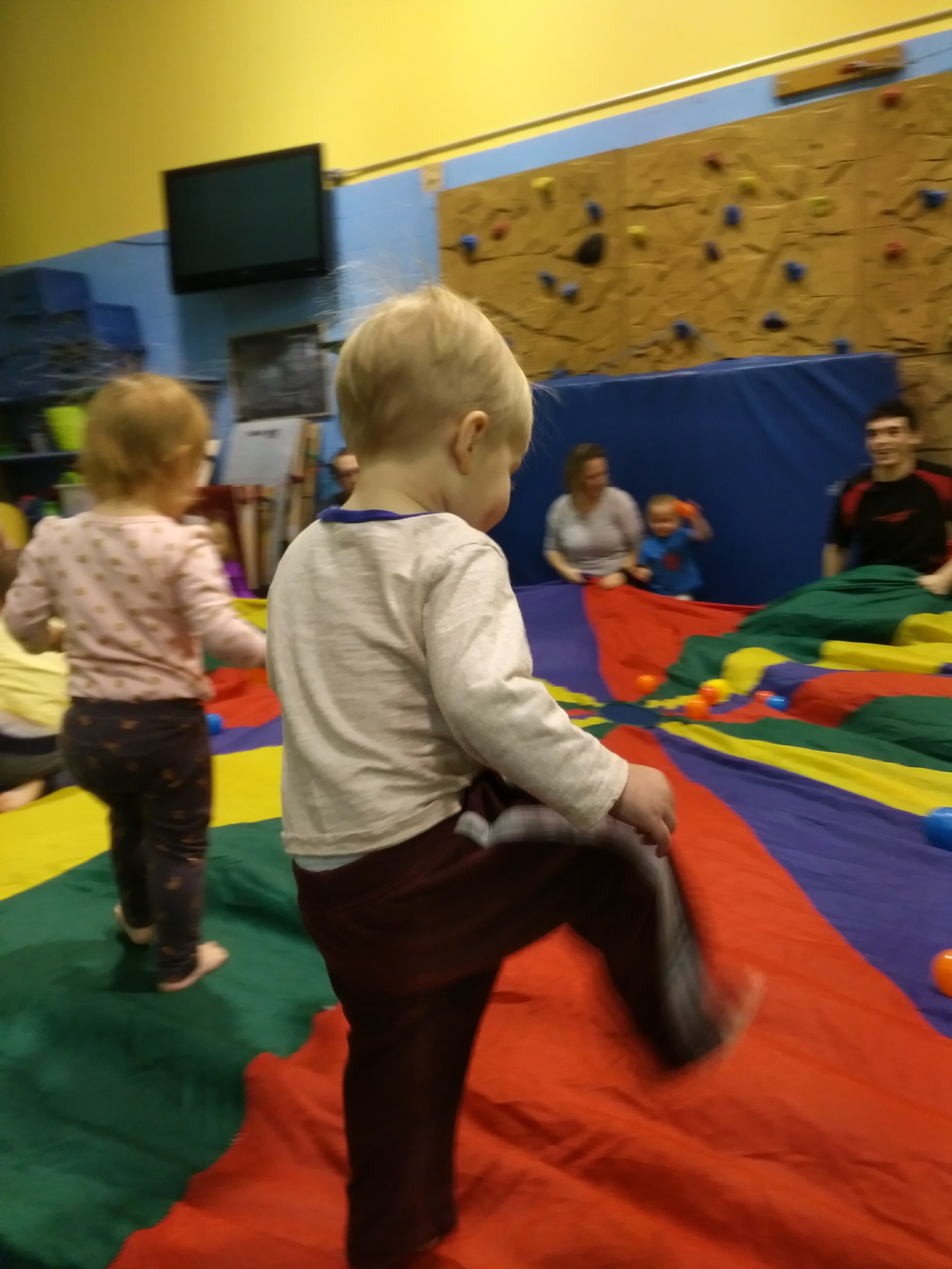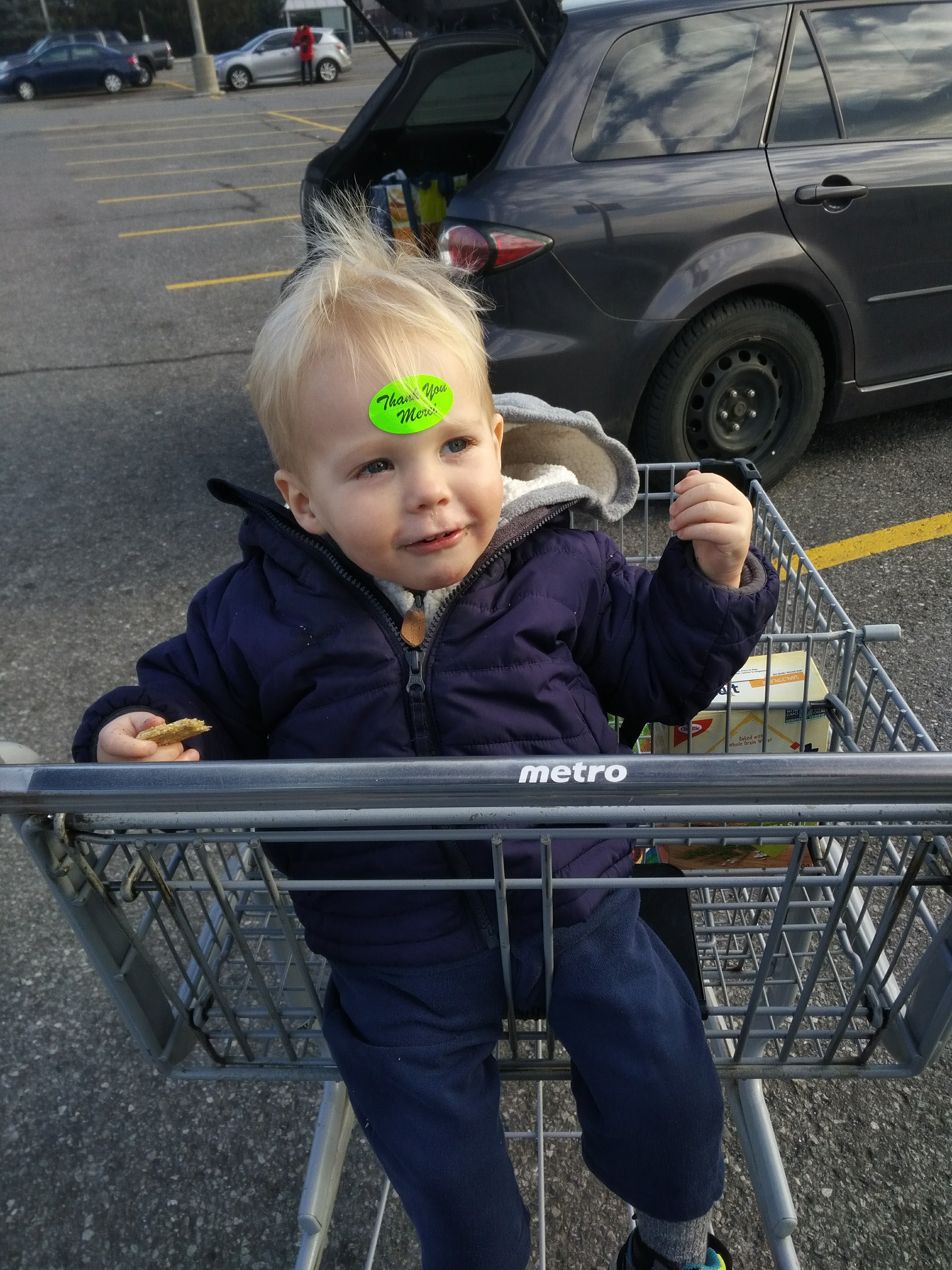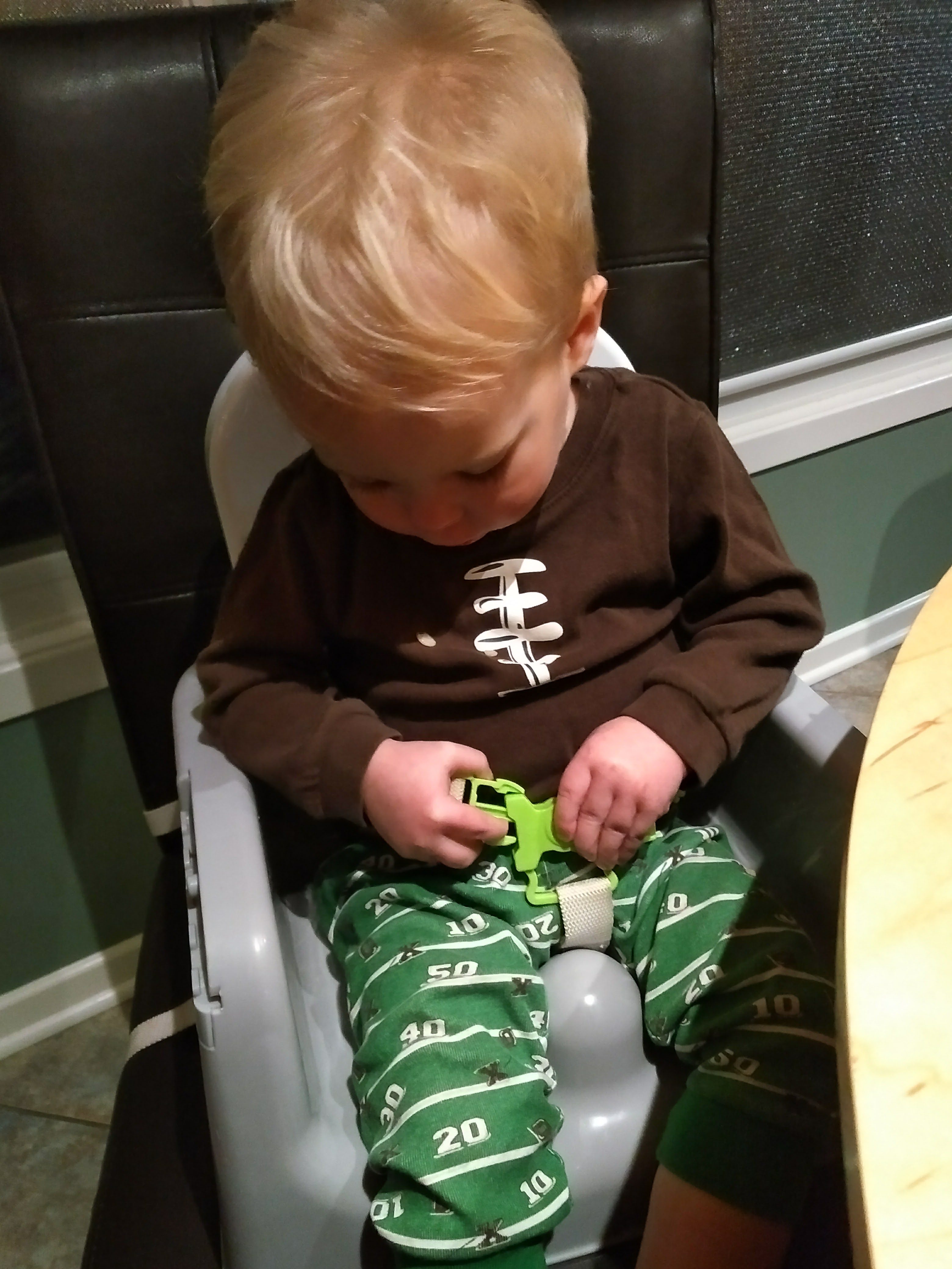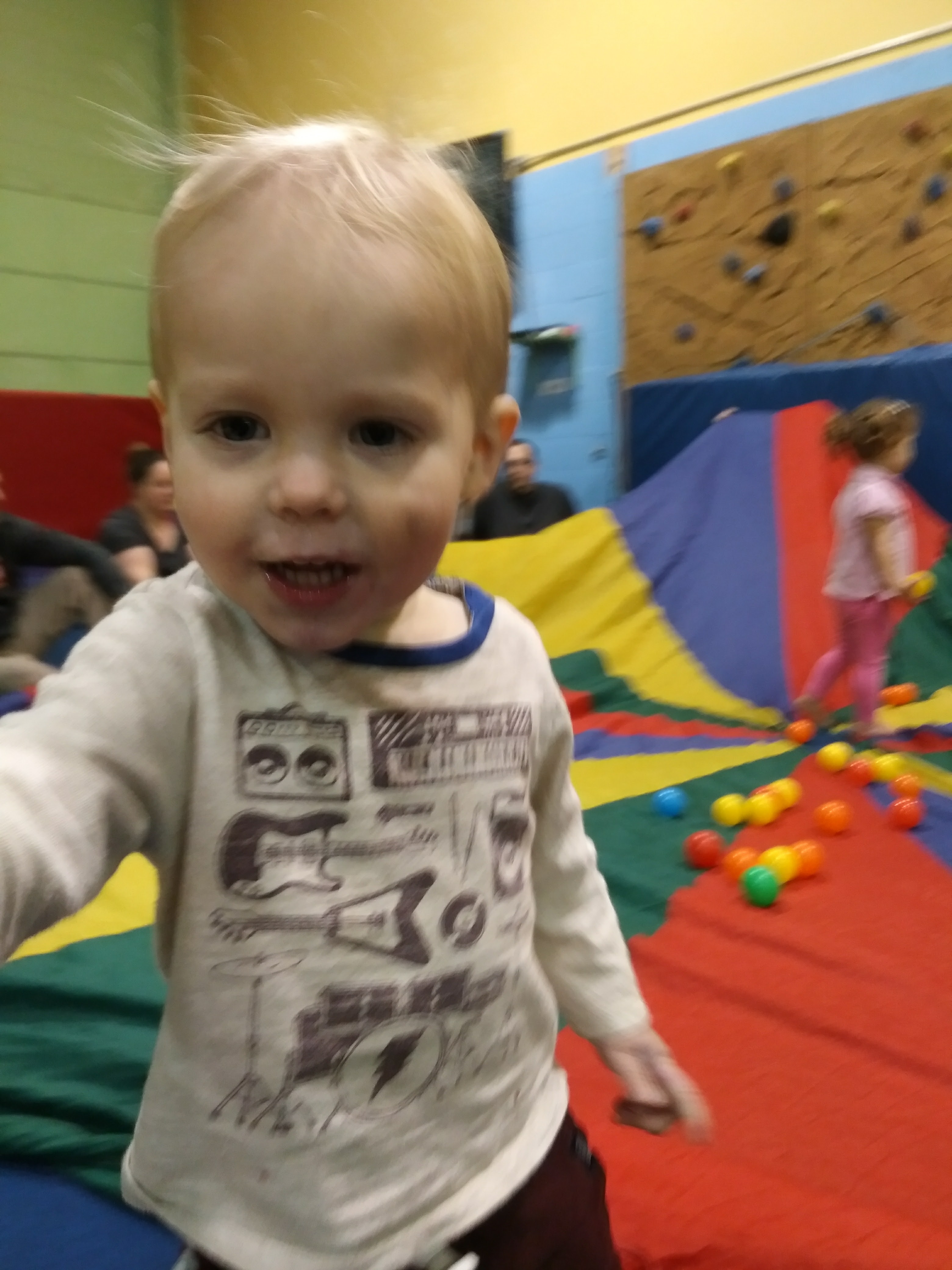 We all got into the holiday spirit early this year – the tree is up and decorated, the Christmas lights are hung, most of the presents are wrapped already… a day off on Black Friday kicked it all off and Isaac kept it going! “Pretty lights!” Isaac loves the decorations, and wanted to read books by the tree lights the first night it was up. Isaac was excited to see Santa at the neighbourhood children’s holiday party, and seemed to know who he was. He didn’t like sitting on Santa’s knee, but he still talks about it. He did surprise us by sitting silently watching the magic show, and also by patiently stringing beads on a pipecleaner.