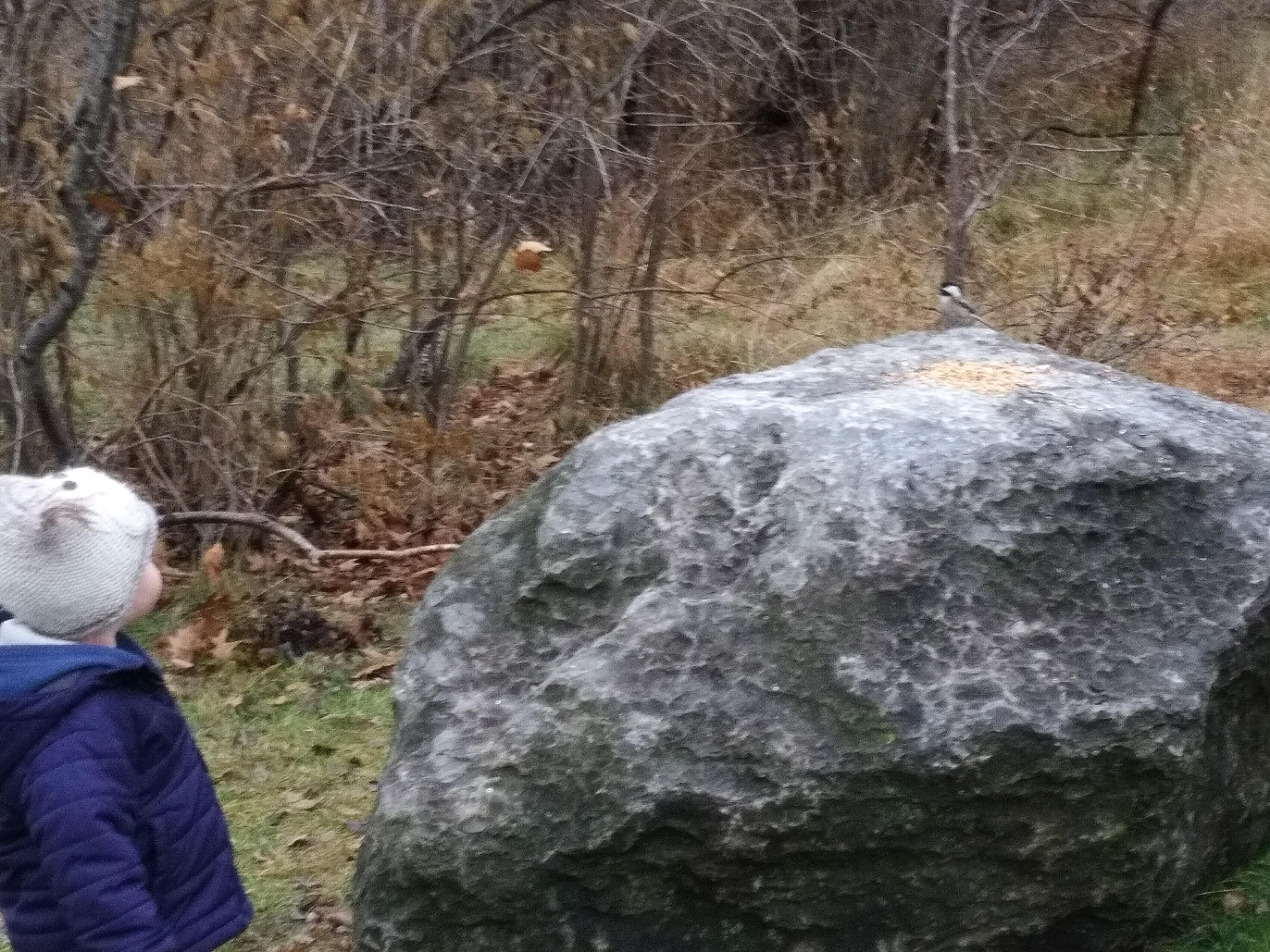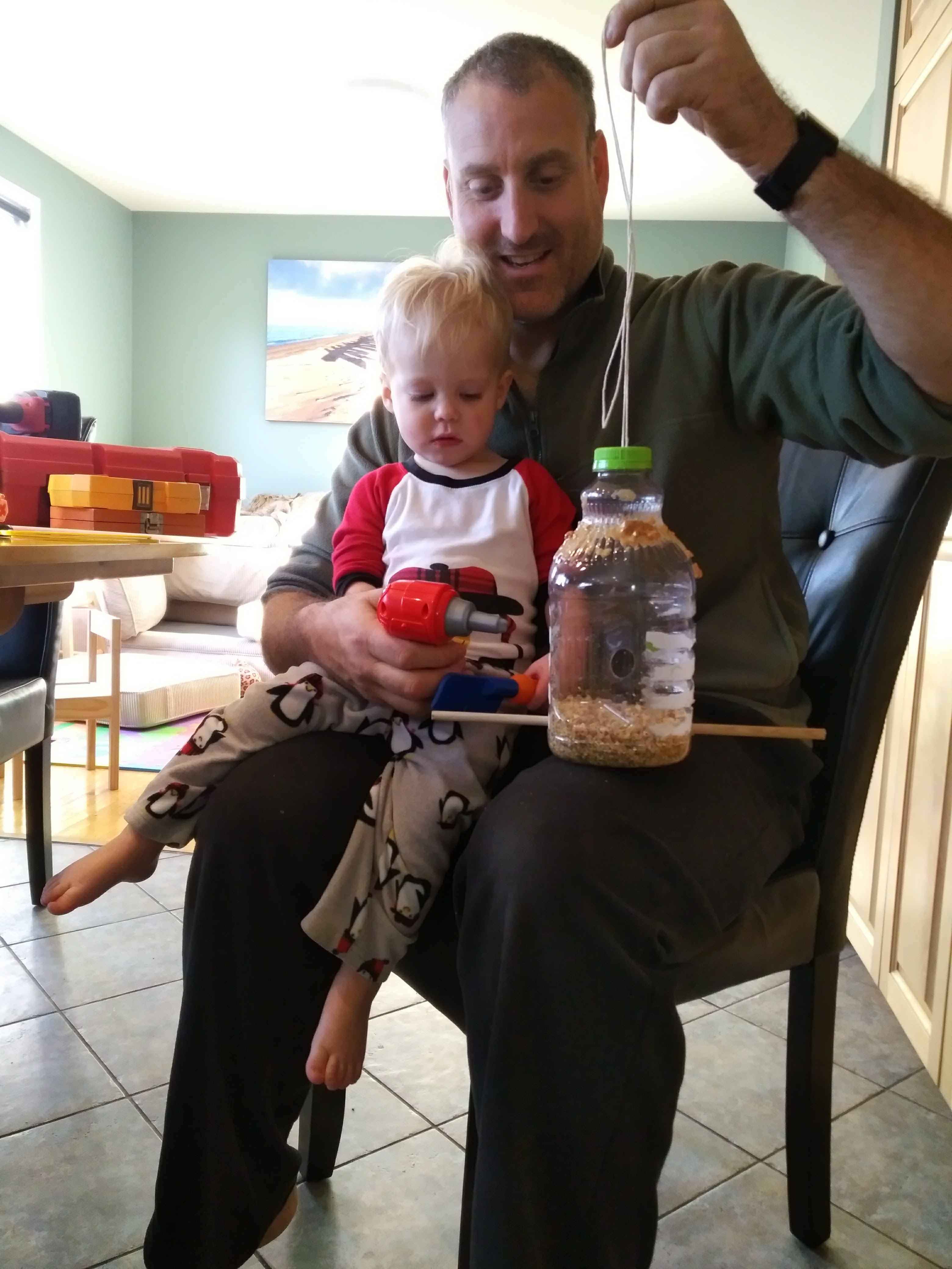 Isaac loves watching the birds, so Jon and Isaac made a bird feeder – and when the birds didn’t show up right away, Lindy took him to the woods where a chickadee ate out of our hands – very exciting stuff.