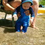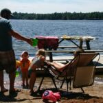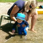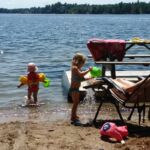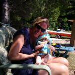 We had our first family holiday for a week at the cottage in July. It was great weather and lots of fun! Shelley, Matt and the girls came for the weekend, and Jon’s parents visited for a day during the week. Naps were made easy with having Opa’s trailer by the beach and there was actually some relaxing had by us parents! Lindy was able to get in for a swim almost every day, and go sailing a few times. Jon had a couple projects on the go – repainting the picnic table and Adirondack chairs, and building a baby gate for our house. Isaac had lots of play time on the beach, and liked swinging in the hammock chair.