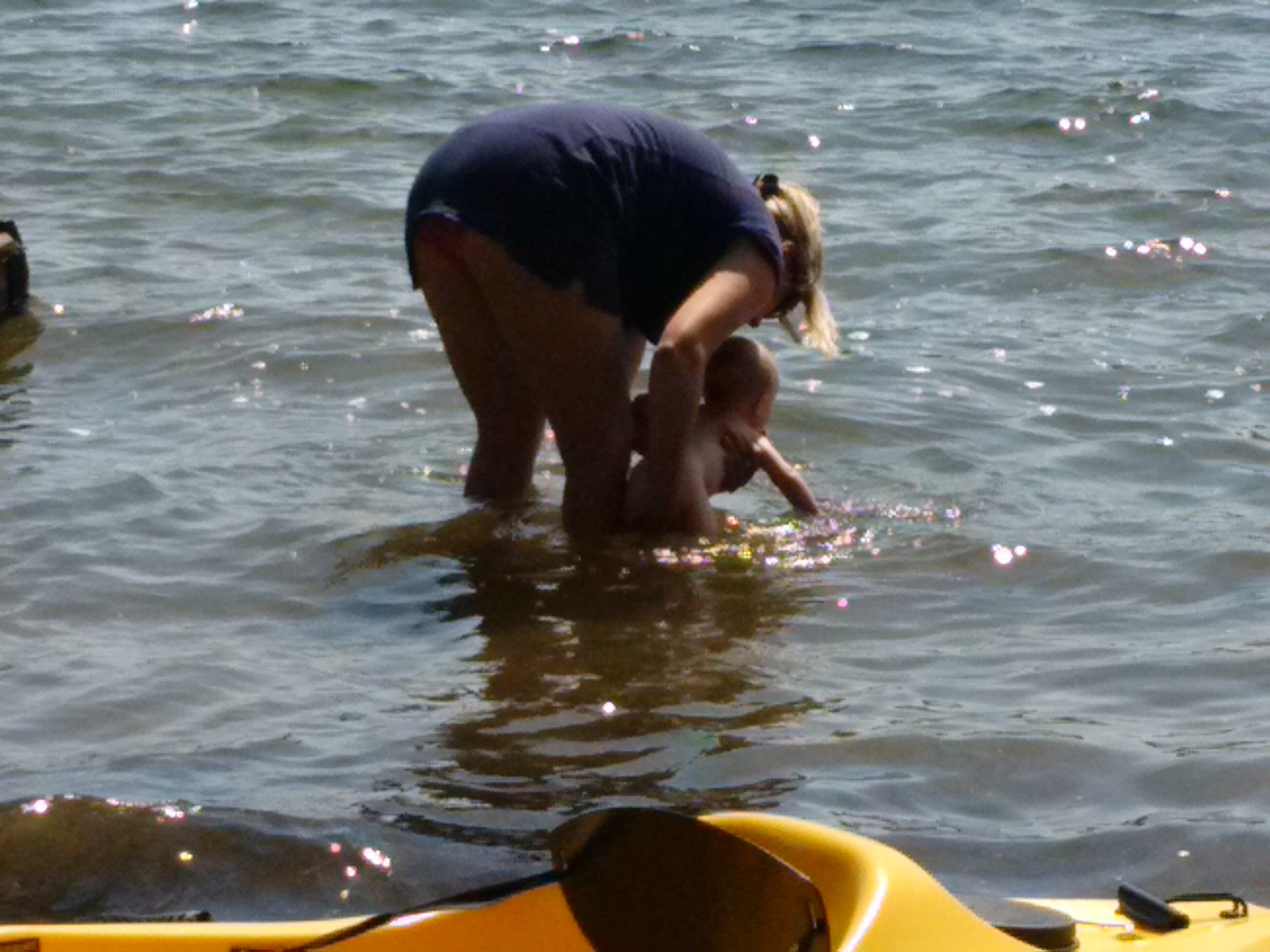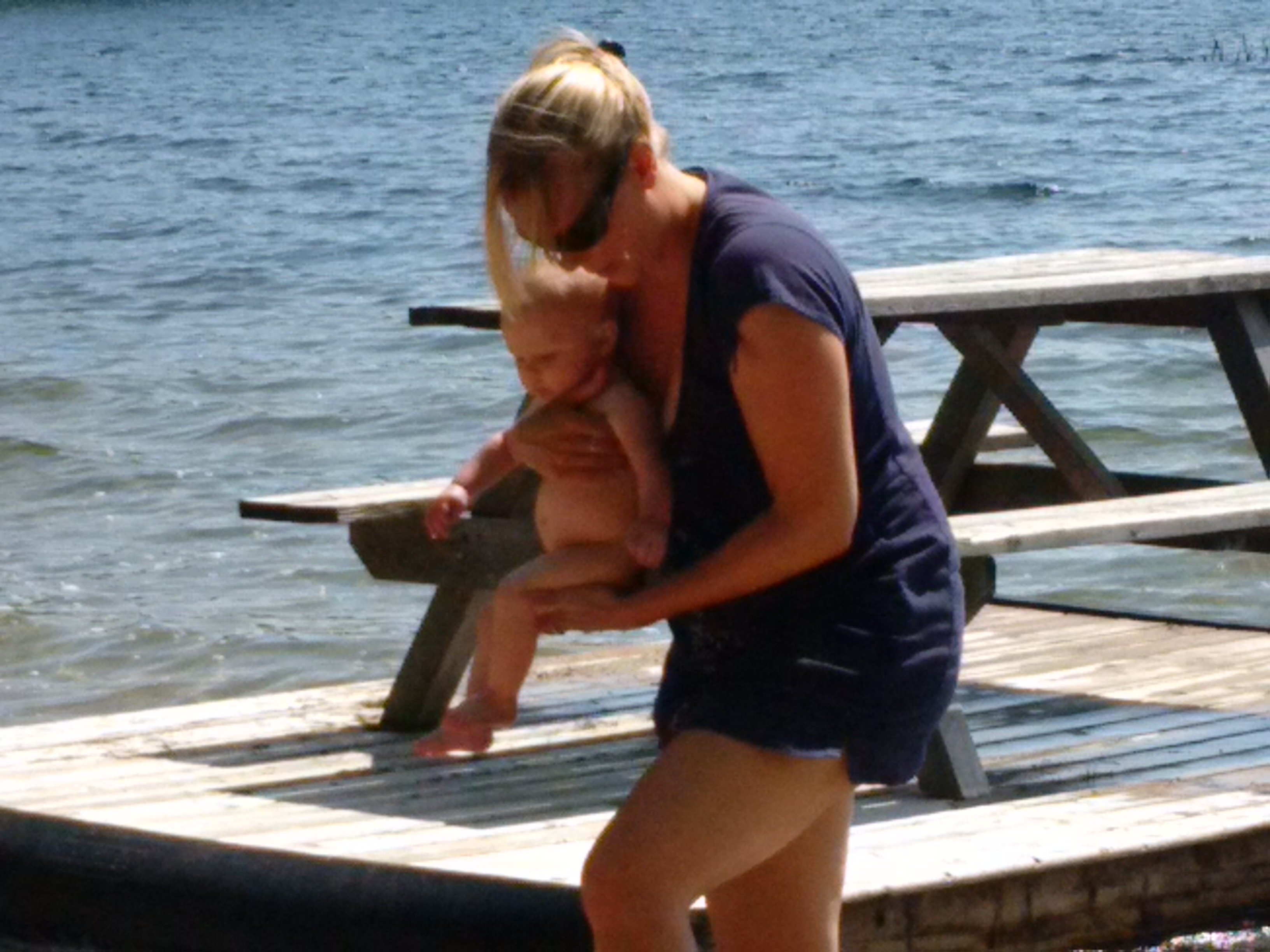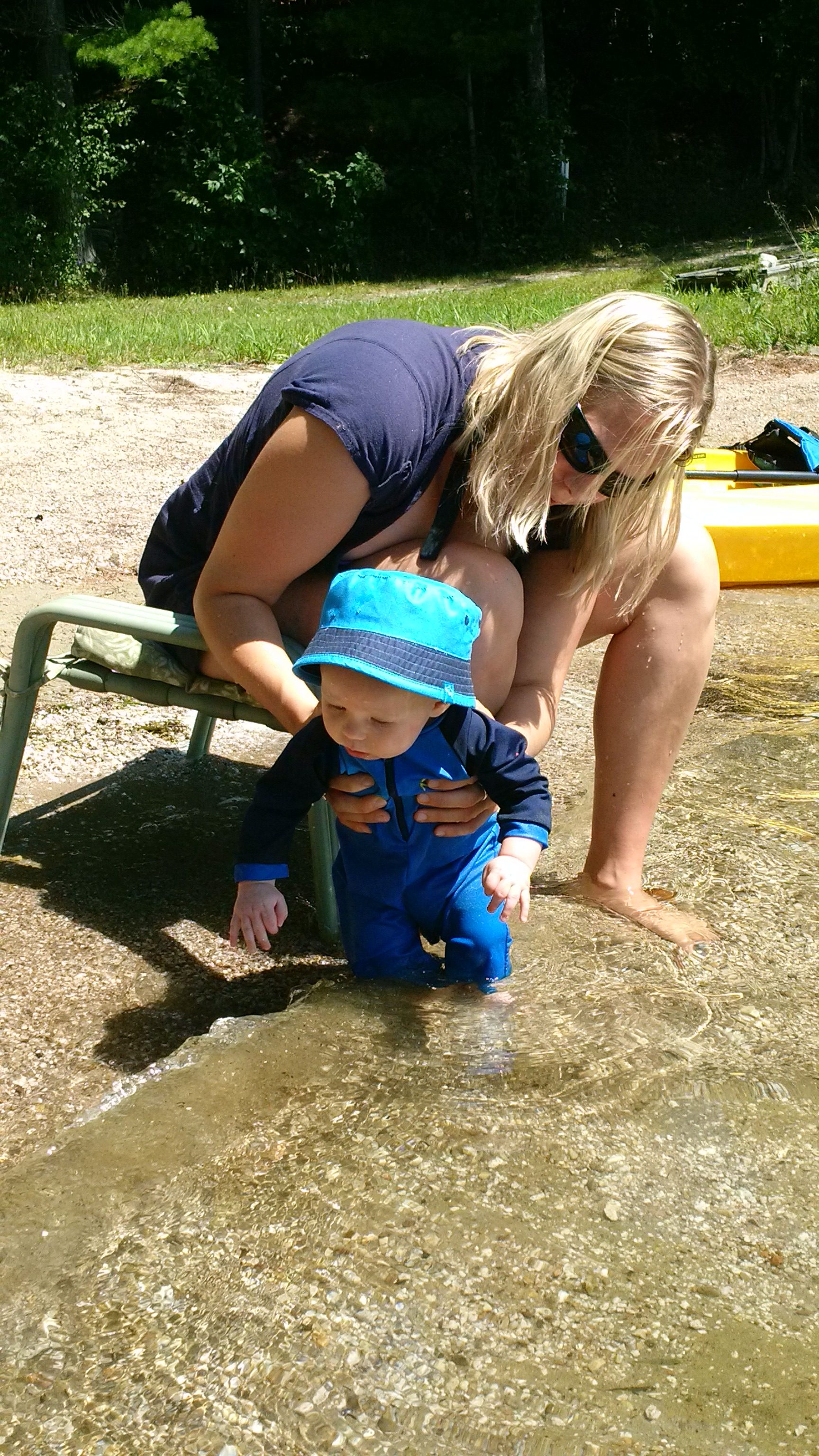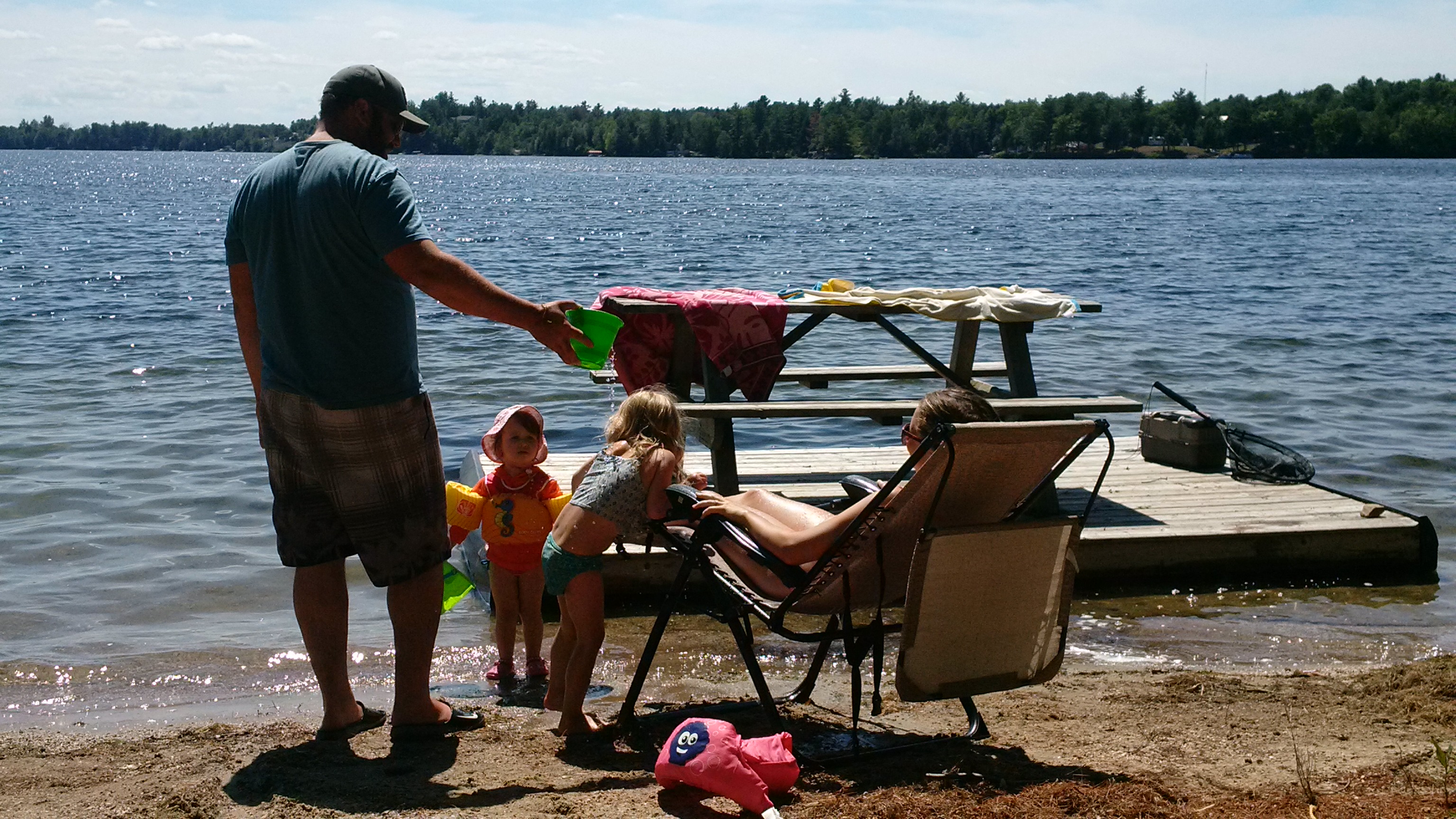We had our first family holiday for a week at the cottage in July. It was great weather and lots of fun! Shelley, Matt and the girls came for the weekend, and Jon’s parents visited for a day during the week. Naps were made easy with having Opa’s trailer by the beach and there was actually some relaxing had by us parents! Lindy was able to get in for a swim almost every day, and go sailing a few times. Jon had a couple projects on the go – repainting the picnic table and Adirondack chairs, and building a baby gate for our house. Isaac had lots of play time on the beach, and liked swinging in the hammock chair.
