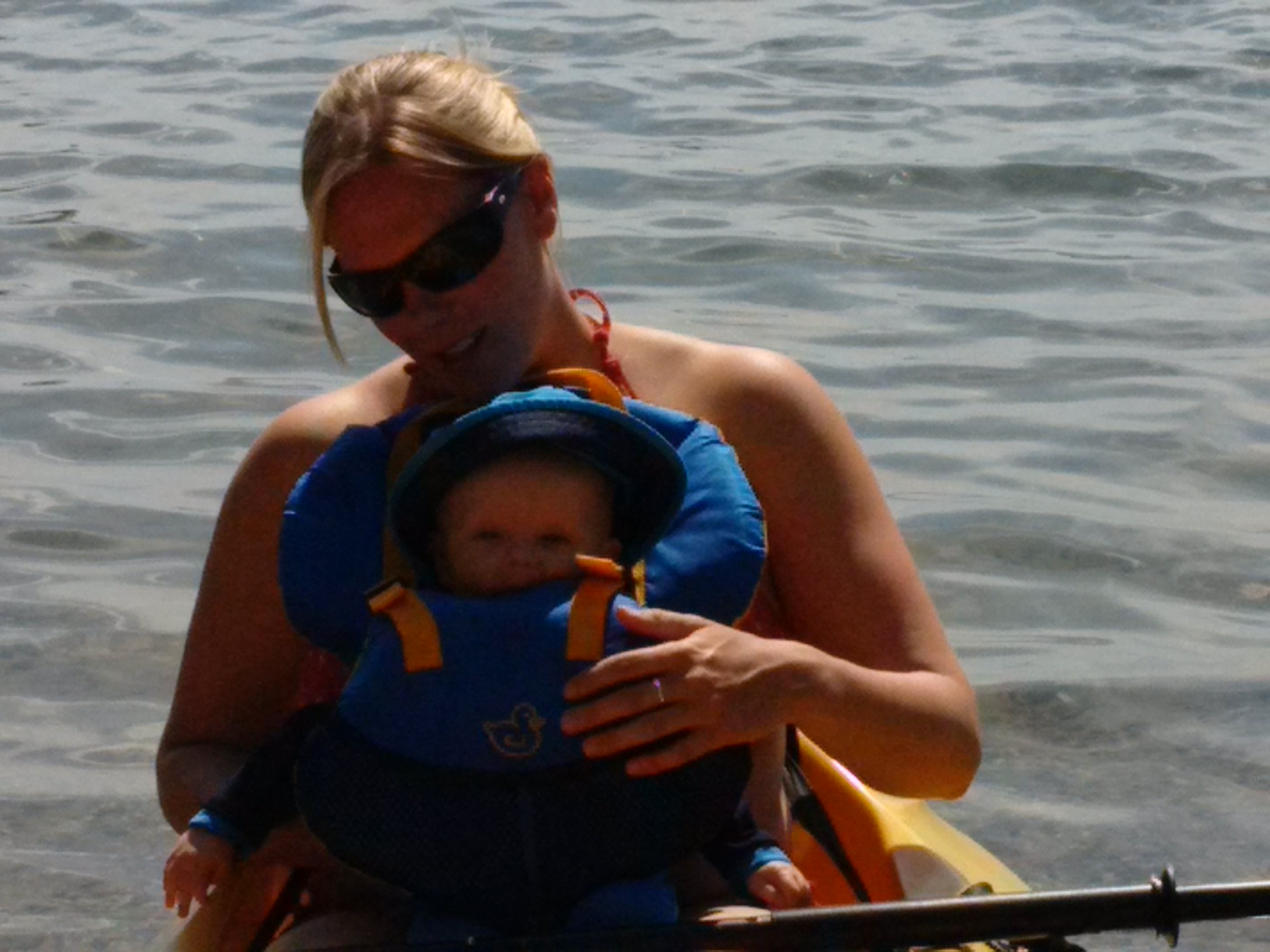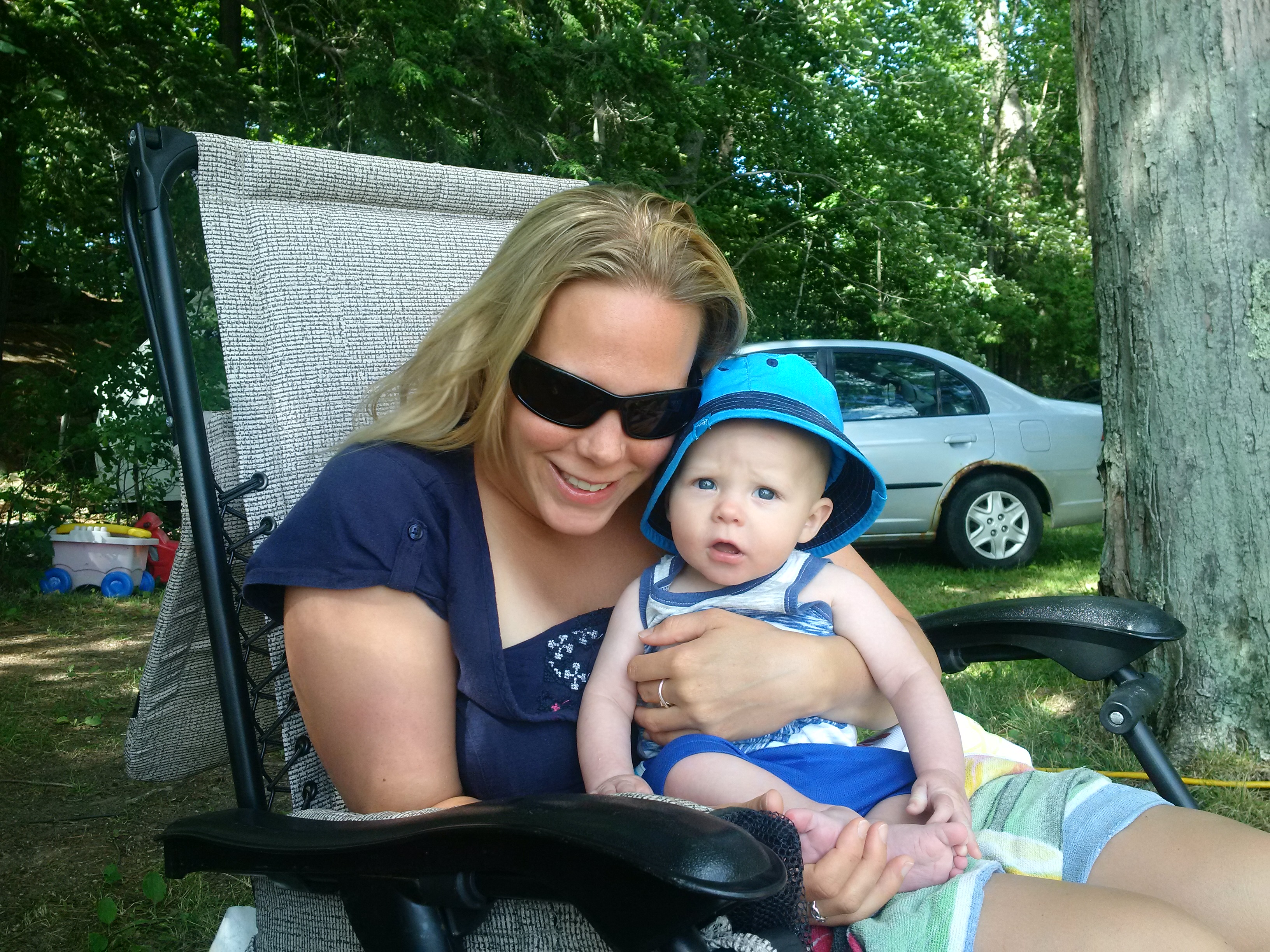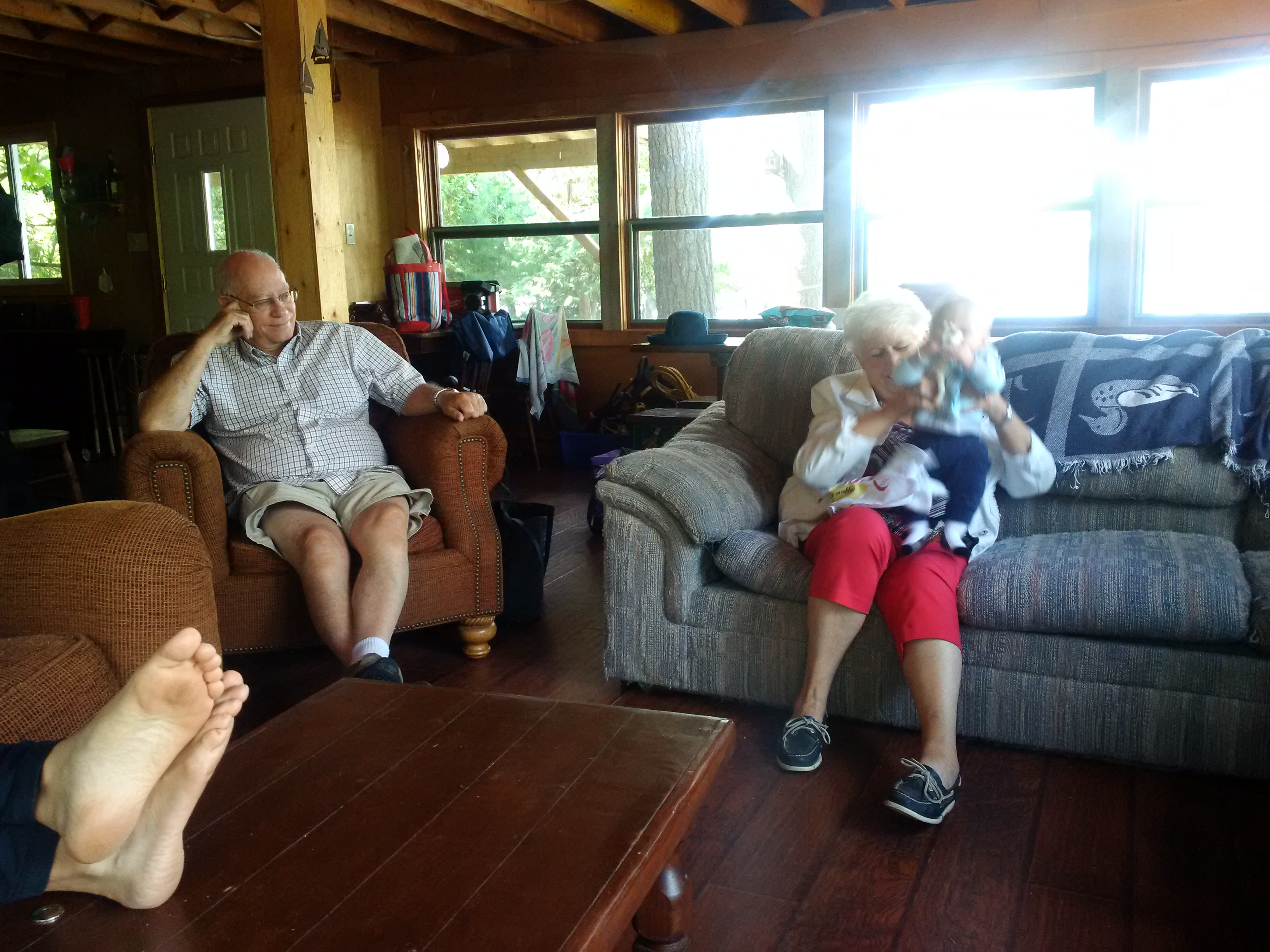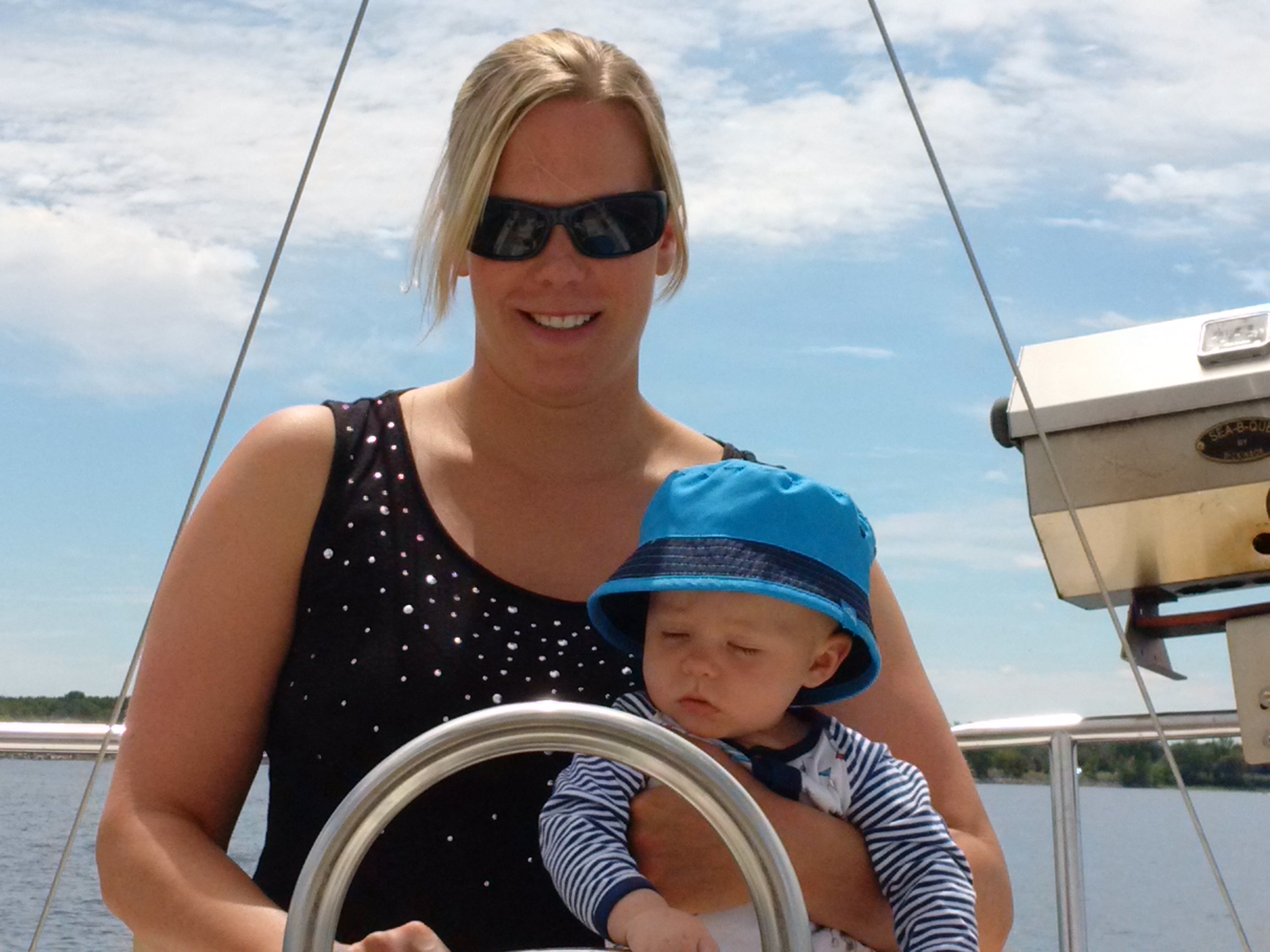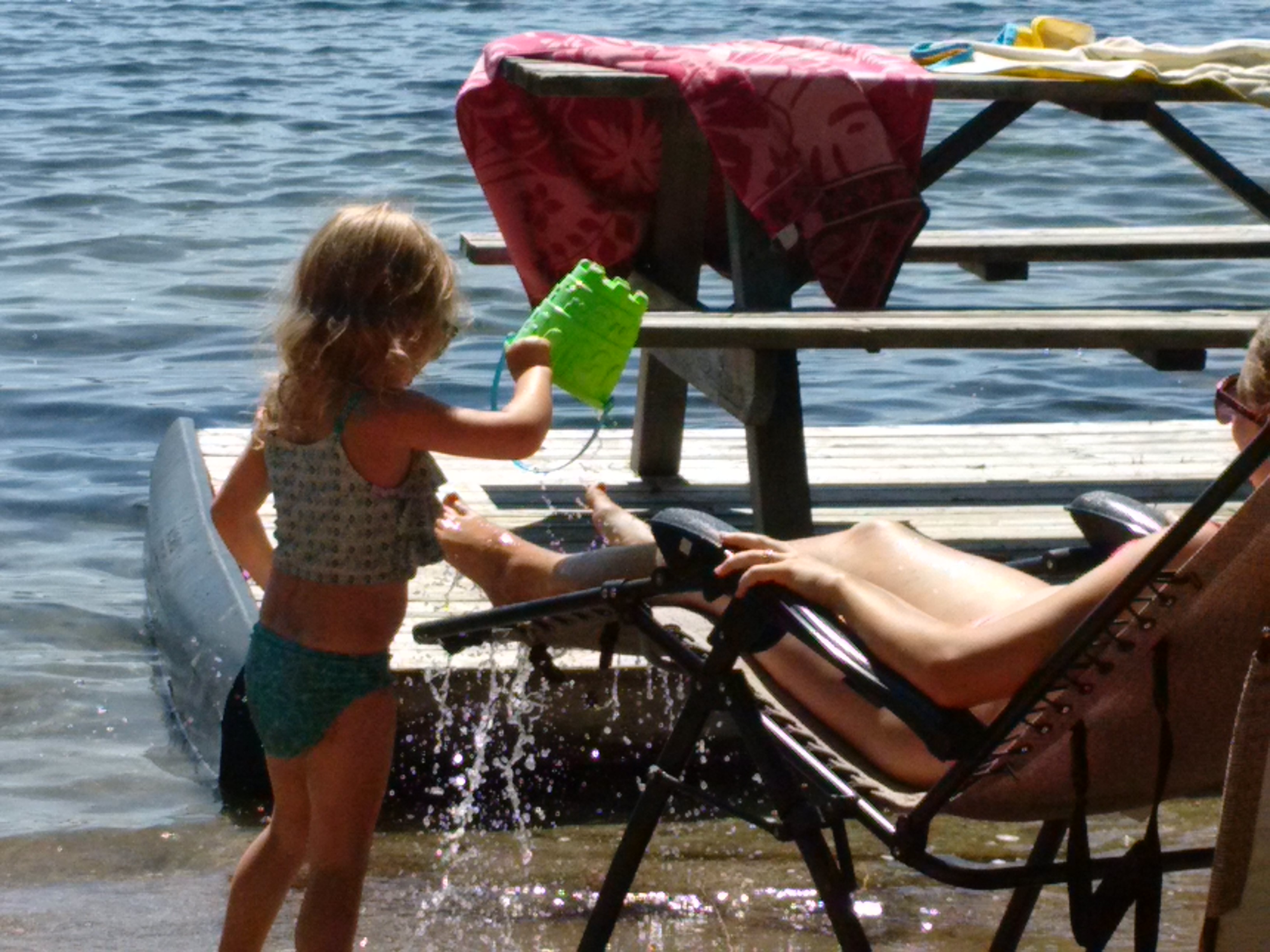 We had our first family holiday for a week at the cottage in July. It was great weather and lots of fun! Shelley, Matt and the girls came for the weekend, and Jon’s parents visited for a day during the week. Naps were made easy with having Opa’s trailer by the beach and there was actually some relaxing had by us parents! Lindy was able to get in for a swim almost every day, and go sailing a few times. Jon had a couple projects on the go – repainting the picnic table and Adirondack chairs, and building a baby gate for our house. Isaac had lots of play time on the beach, and liked swinging in the hammock chair.