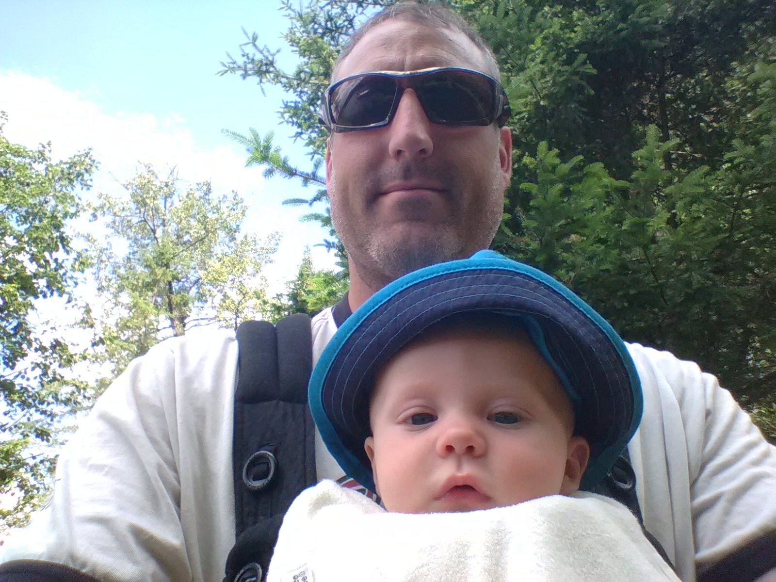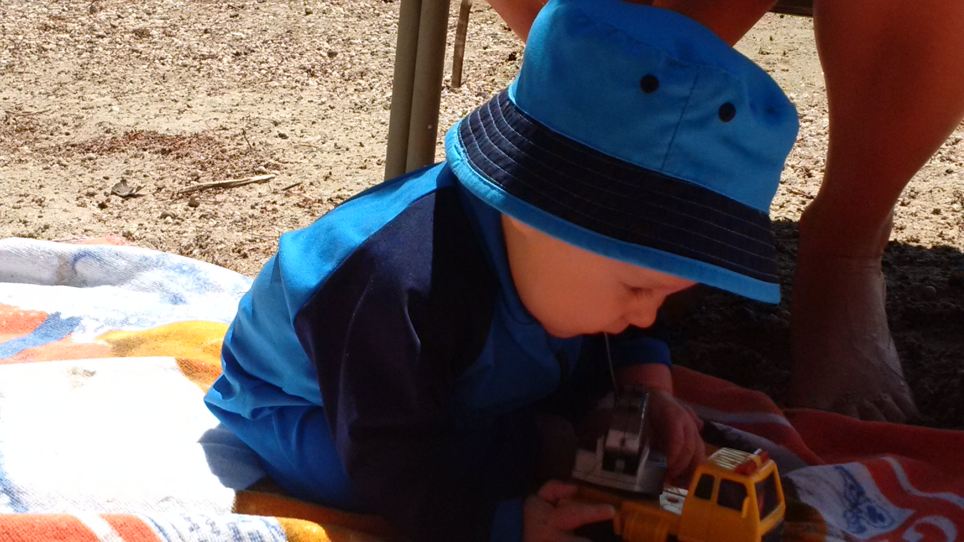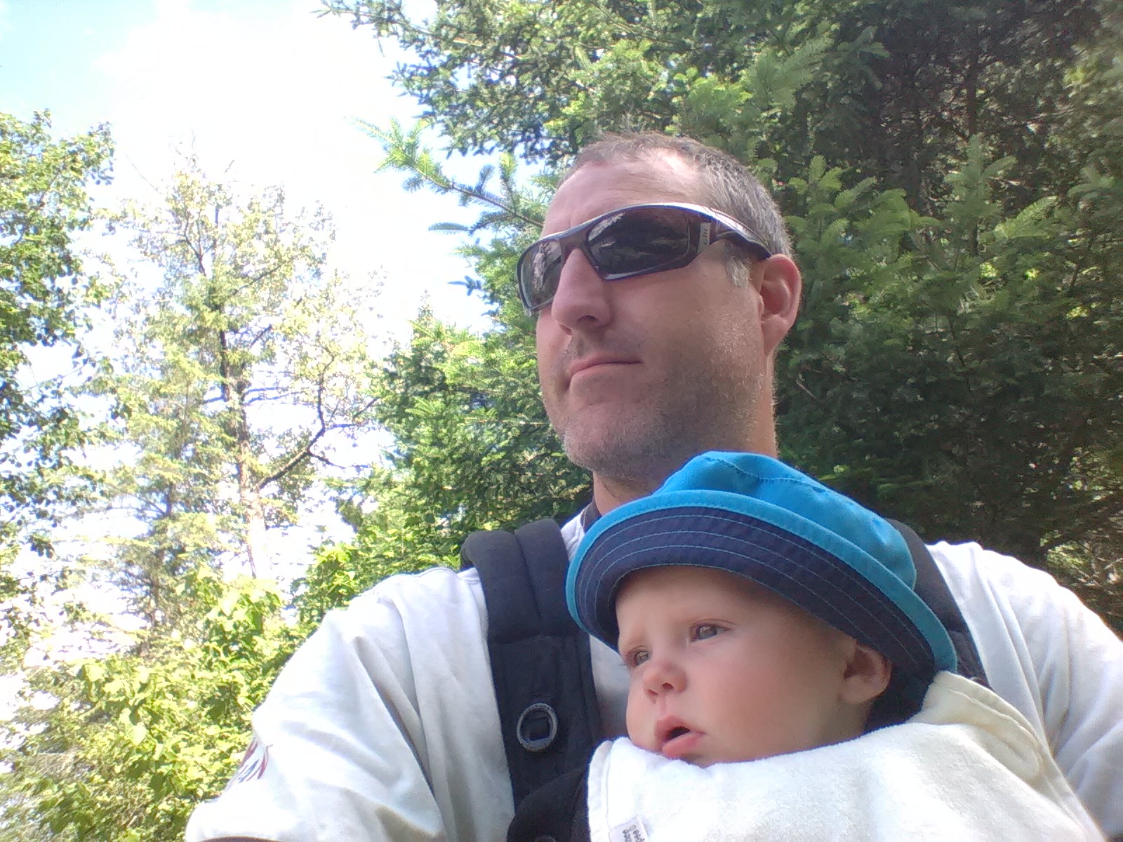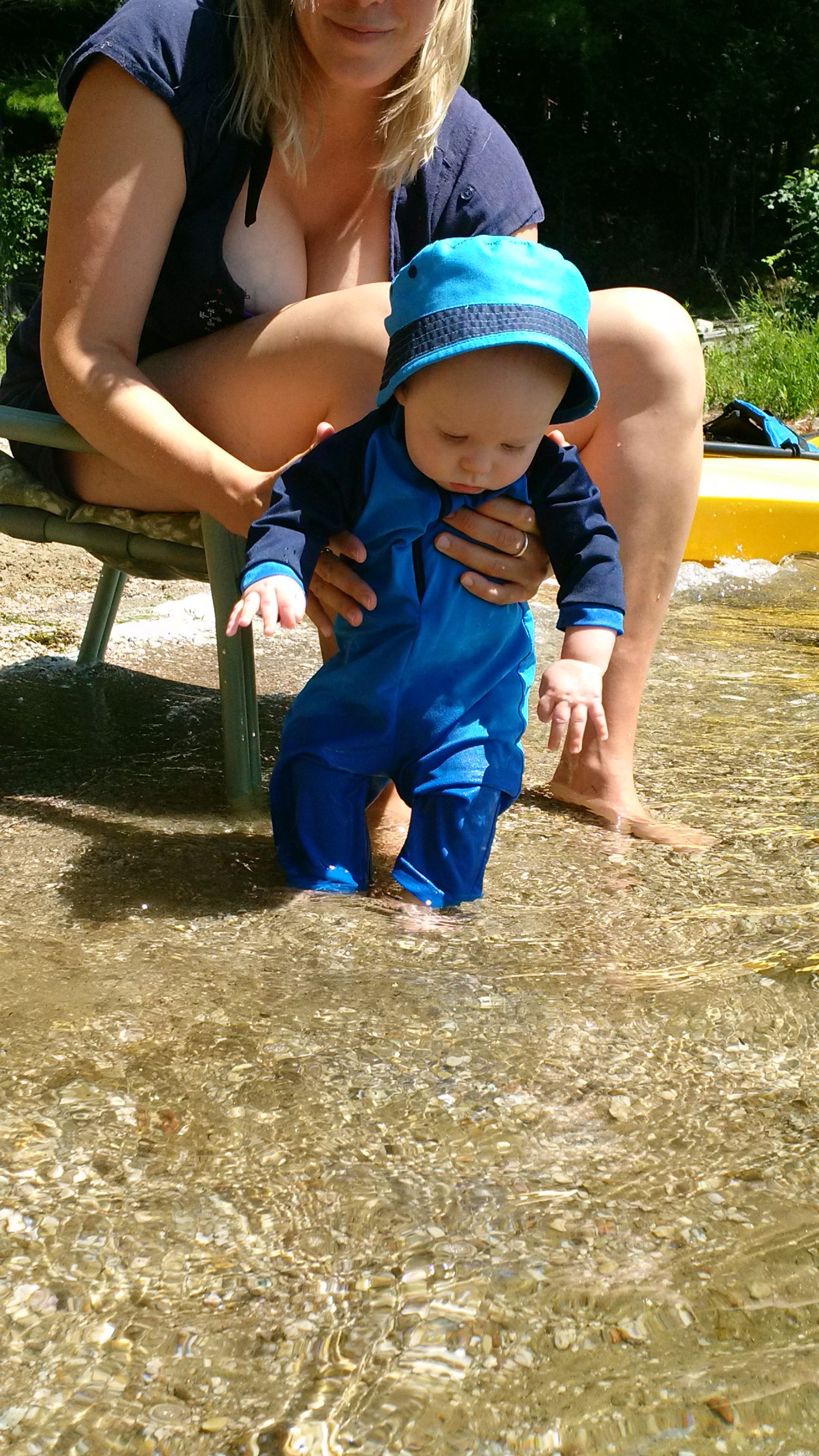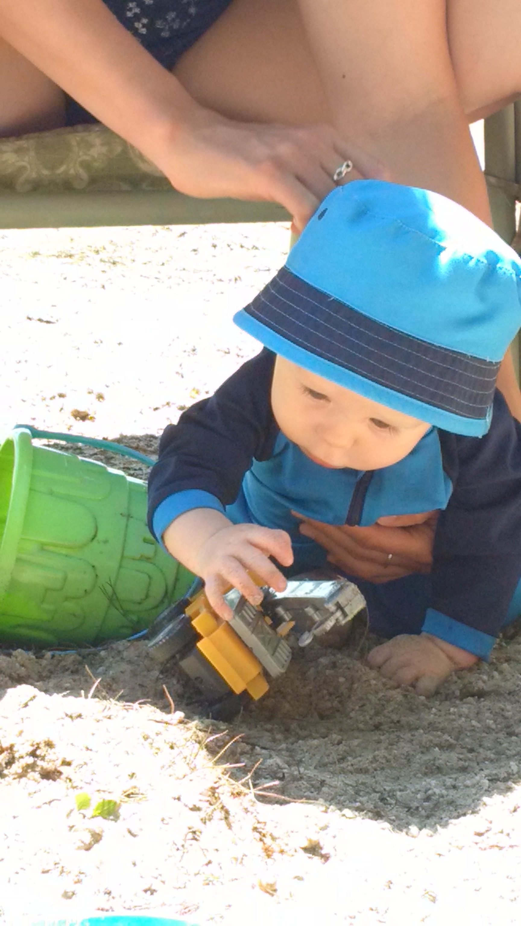 We had our first family holiday for a week at the cottage in July. It was great weather and lots of fun! Shelley, Matt and the girls came for the weekend, and Jon’s parents visited for a day during the week. Naps were made easy with having Opa’s trailer by the beach and there was actually some relaxing had by us parents! Lindy was able to get in for a swim almost every day, and go sailing a few times. Jon had a couple projects on the go – repainting the picnic table and Adirondack chairs, and building a baby gate for our house. Isaac had lots of play time on the beach, and liked swinging in the hammock chair.
