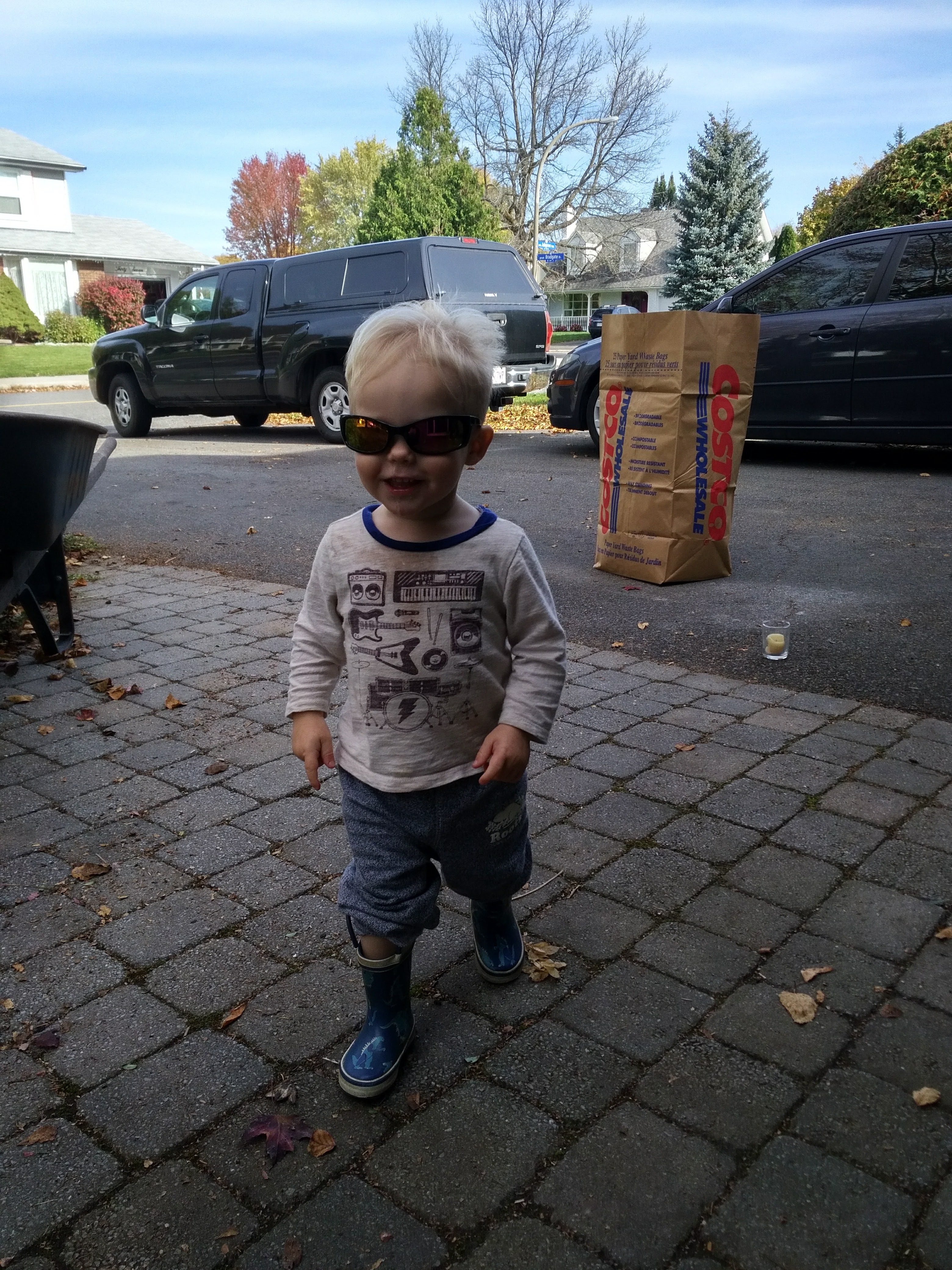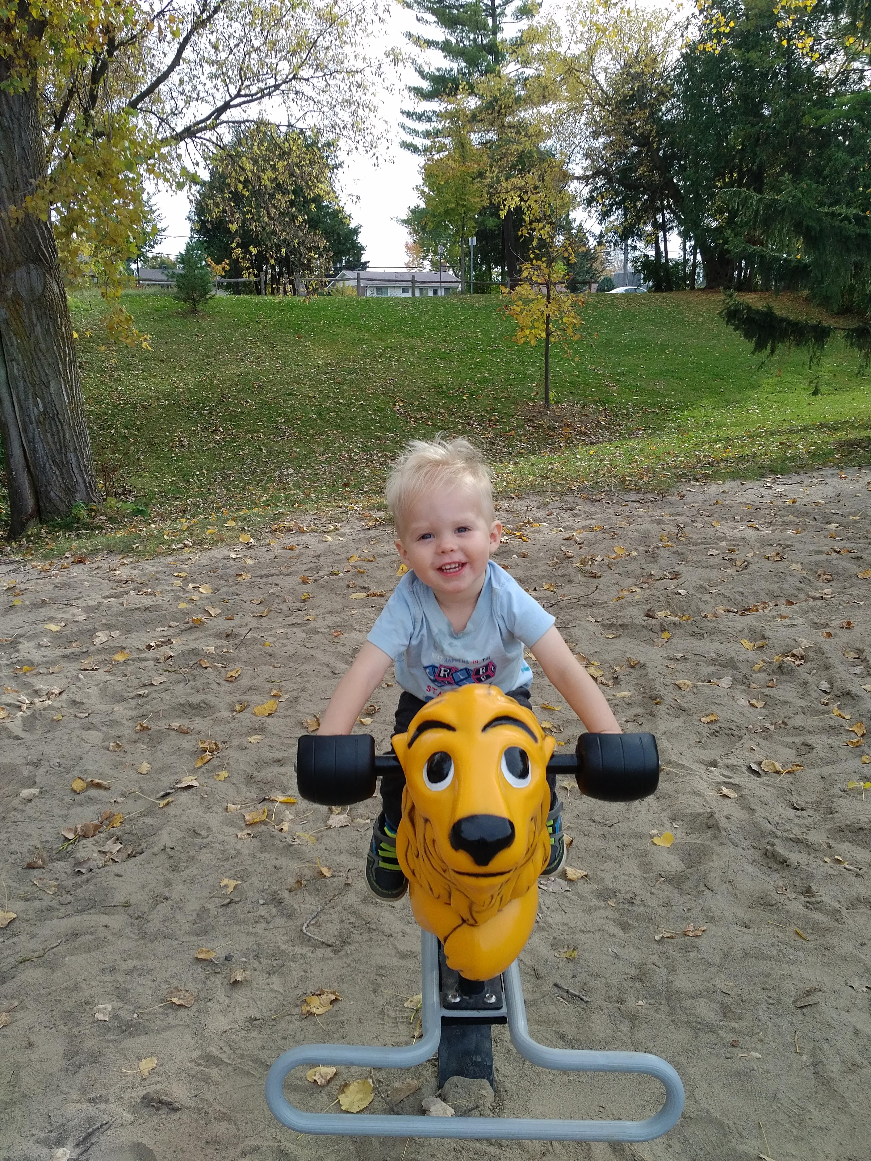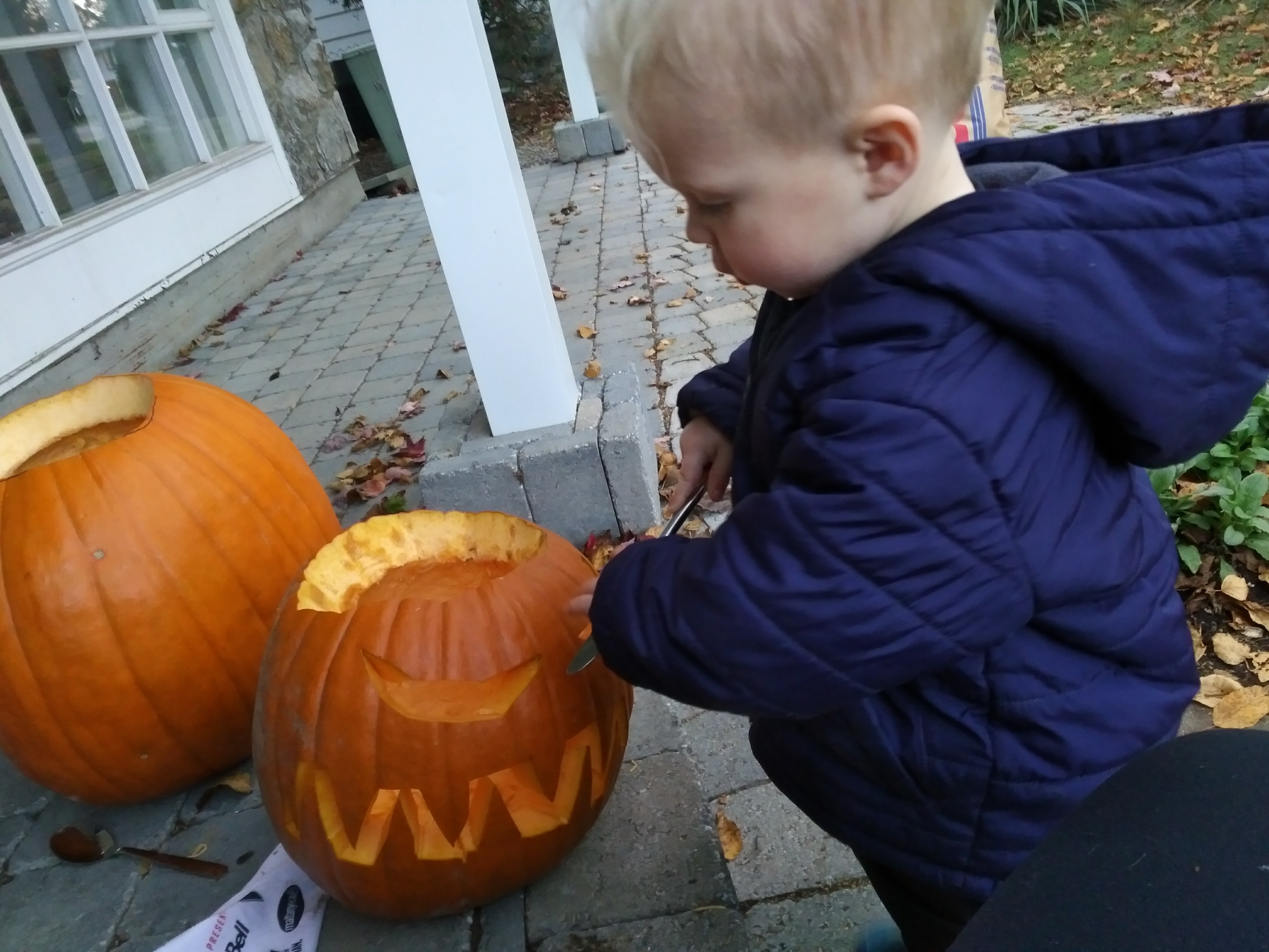 We had a few more firsts this month – a first hair cut for photo day at daycare, a first trip to CHEO because of a swollen face after a black fly bite, a first trip to Saunders Farm and to the Children’s museum, and a first time carving pumpkins! Isaac loved handing out candy on Halloween. “More kids! Door ding, more kids”.