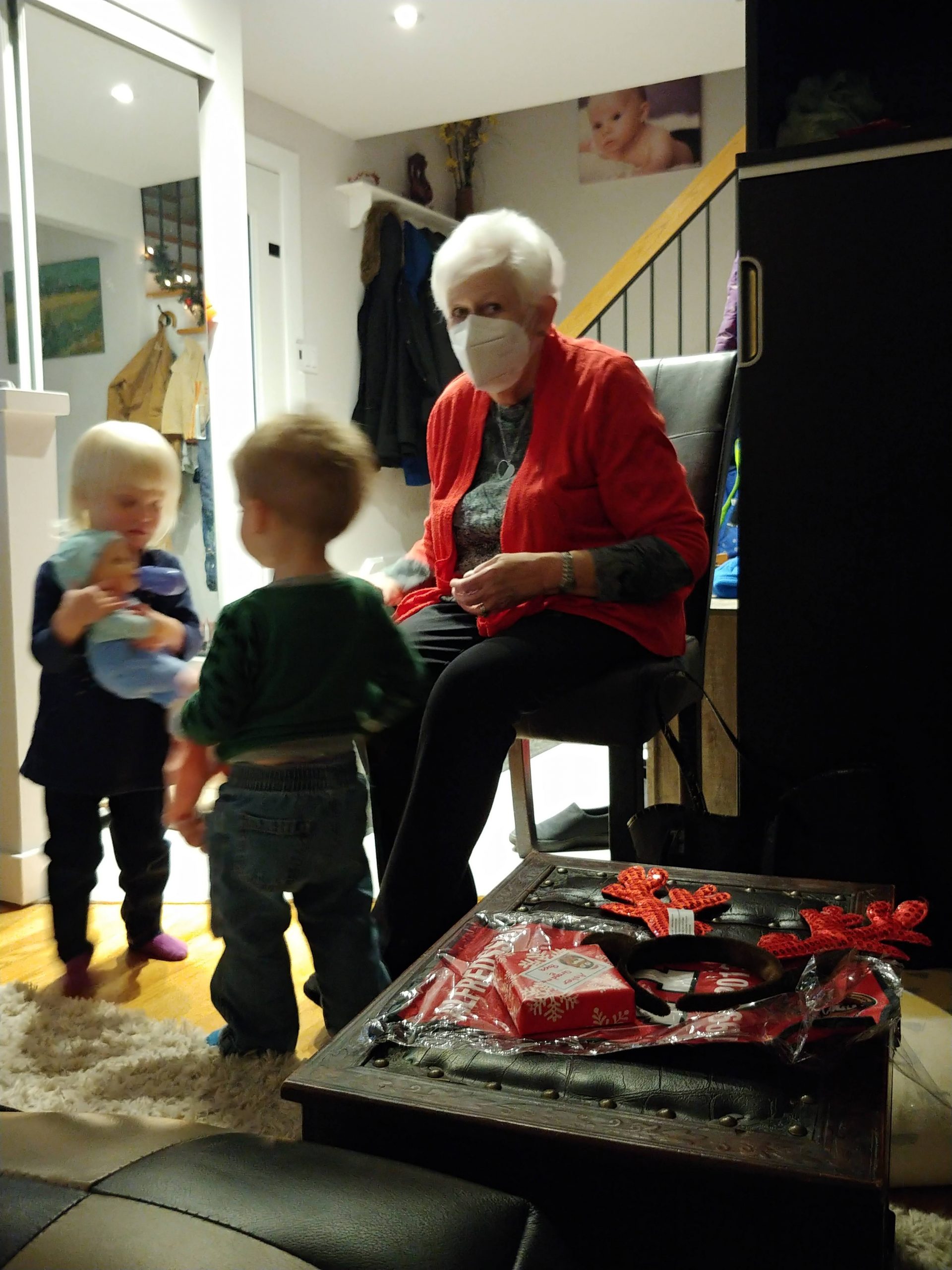 Grandma and Papa’s masked visit on Christmas morning was the highlight of Isaac’s Christmas he said. What’s your favourite thing today Isaac? “It’s not the presents mommy, it’s not! It was seeing Grandma and Papa!”. So Christmas was special this year. We were happy to have the opportunity to have Christmas dinner with Oma and Opa too. We were able to stop in to see the Magic of Lights on our way home on Christmas night – the last night it was open. We also went for a walk in the woods with Aunt Sam and Uncle Jeremy and Charlotte and Isabelle, and of course their new dog Winston. Uncle Greg also came by to deliver a remote control truck to Isaac! So we were lucky to squeeze in some family time, though just not the same as usual.