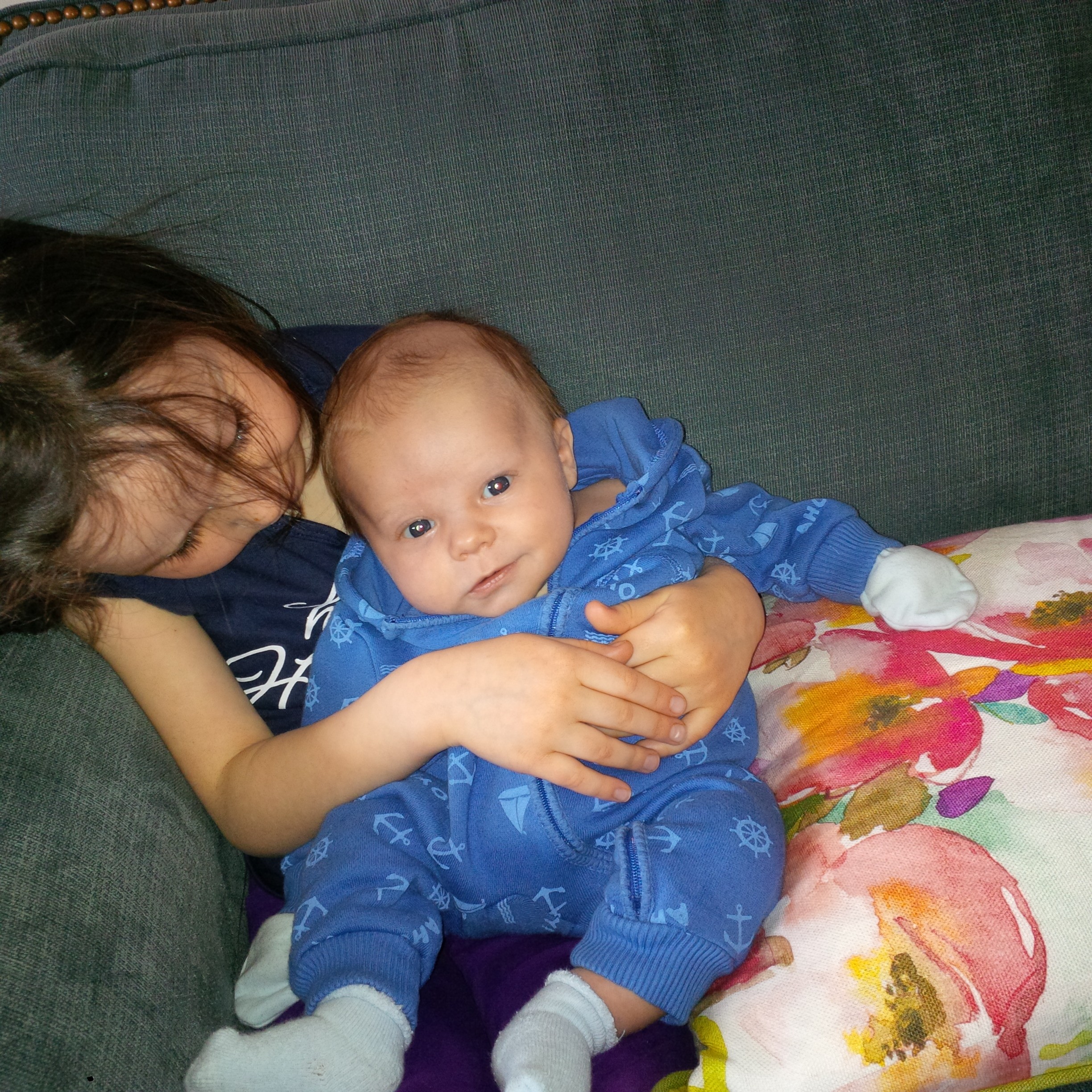 Isaac has started following objects with his eyes, grabbing Lindy’s hair, and pushing against us with his strong little legs. He now weighs 9lbs and 10 ounzes, and is growing out of some of the newborn clothing already.