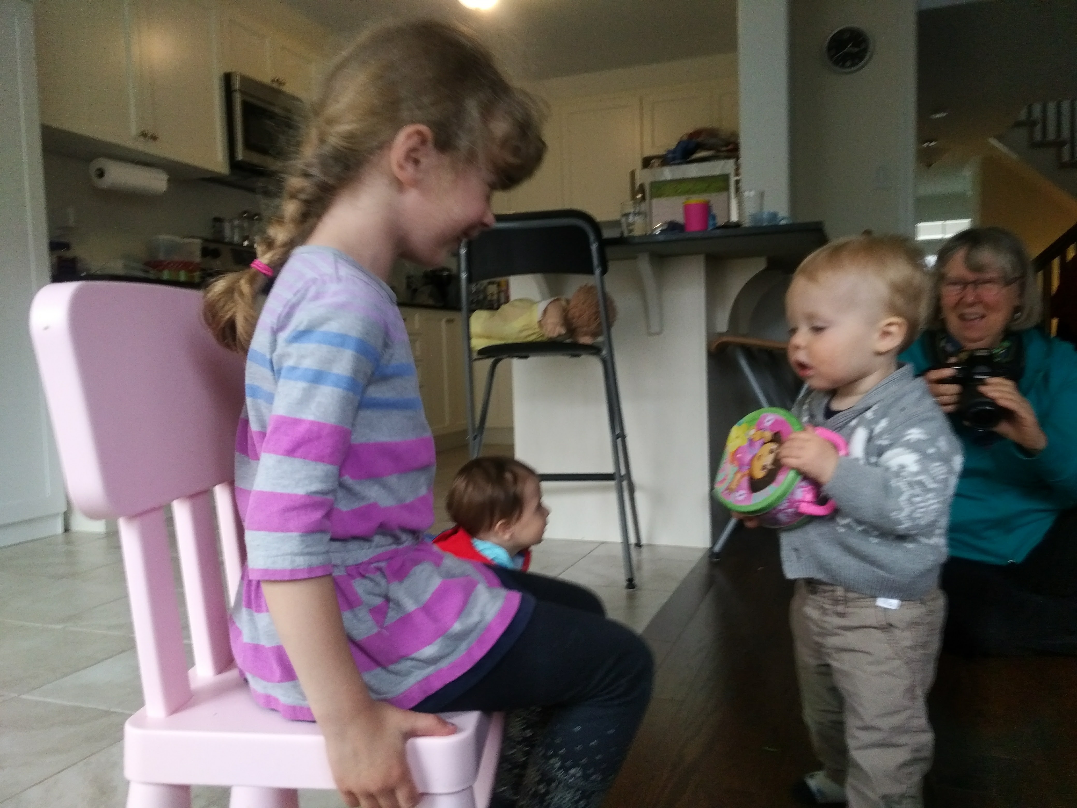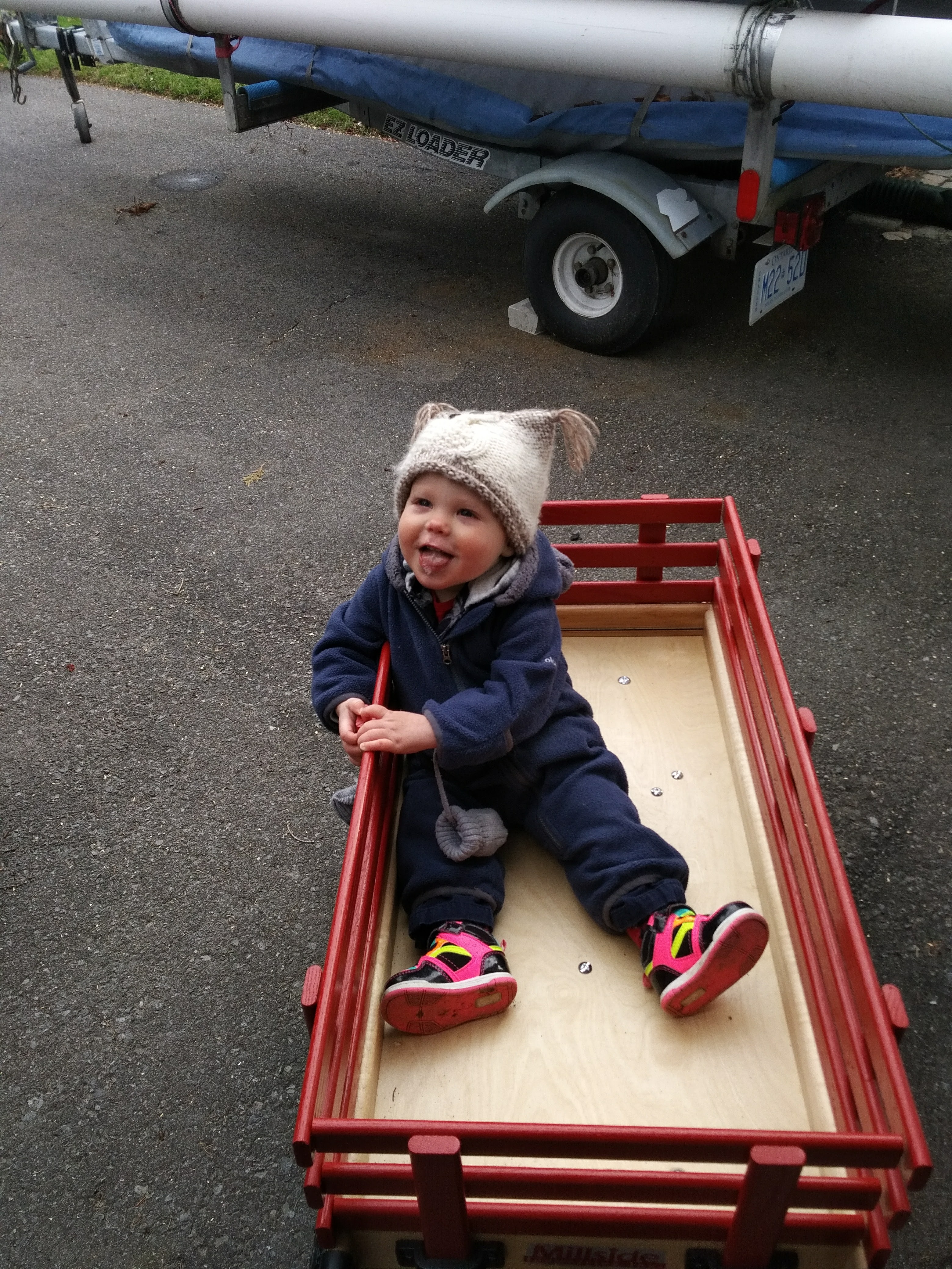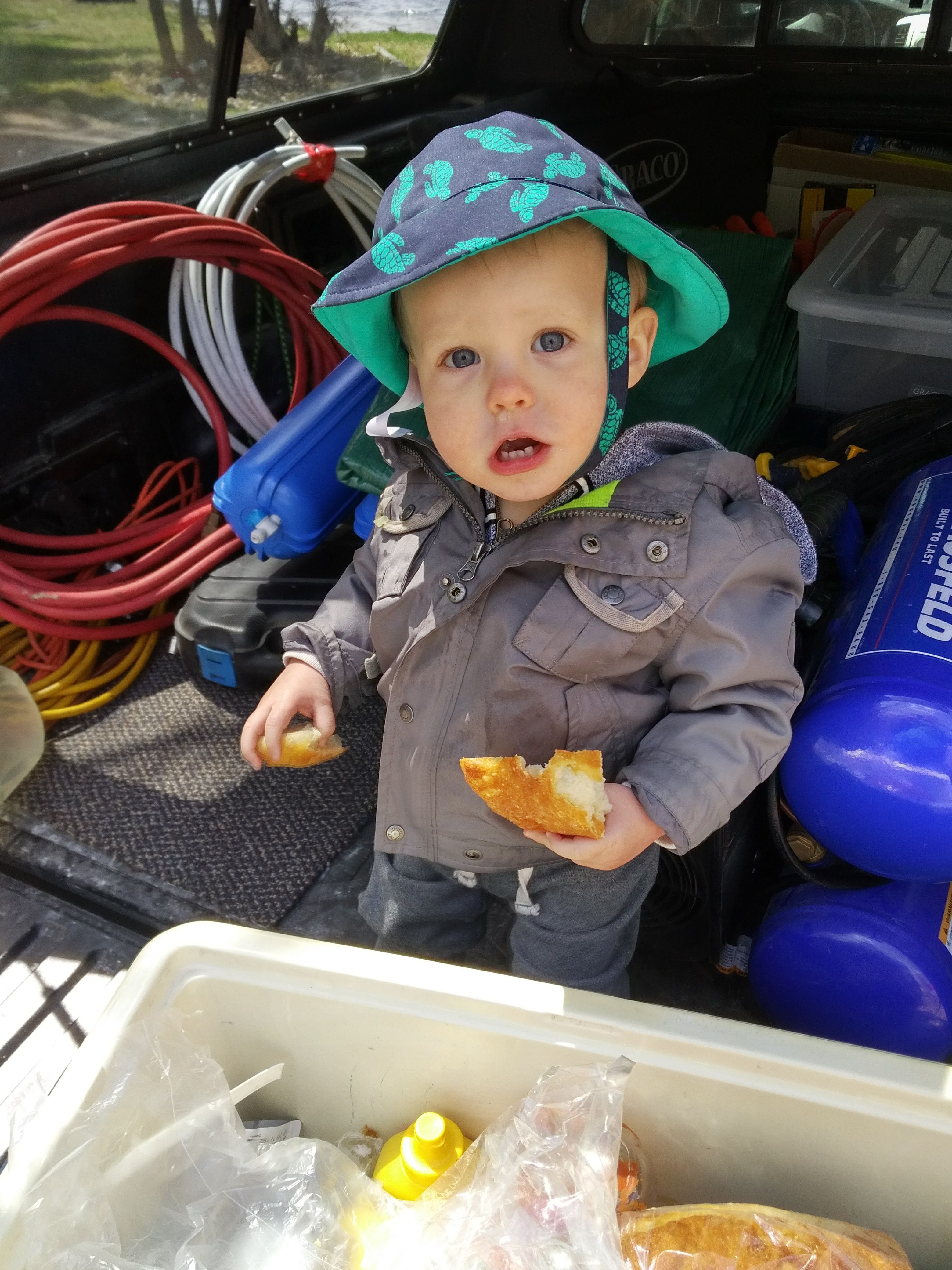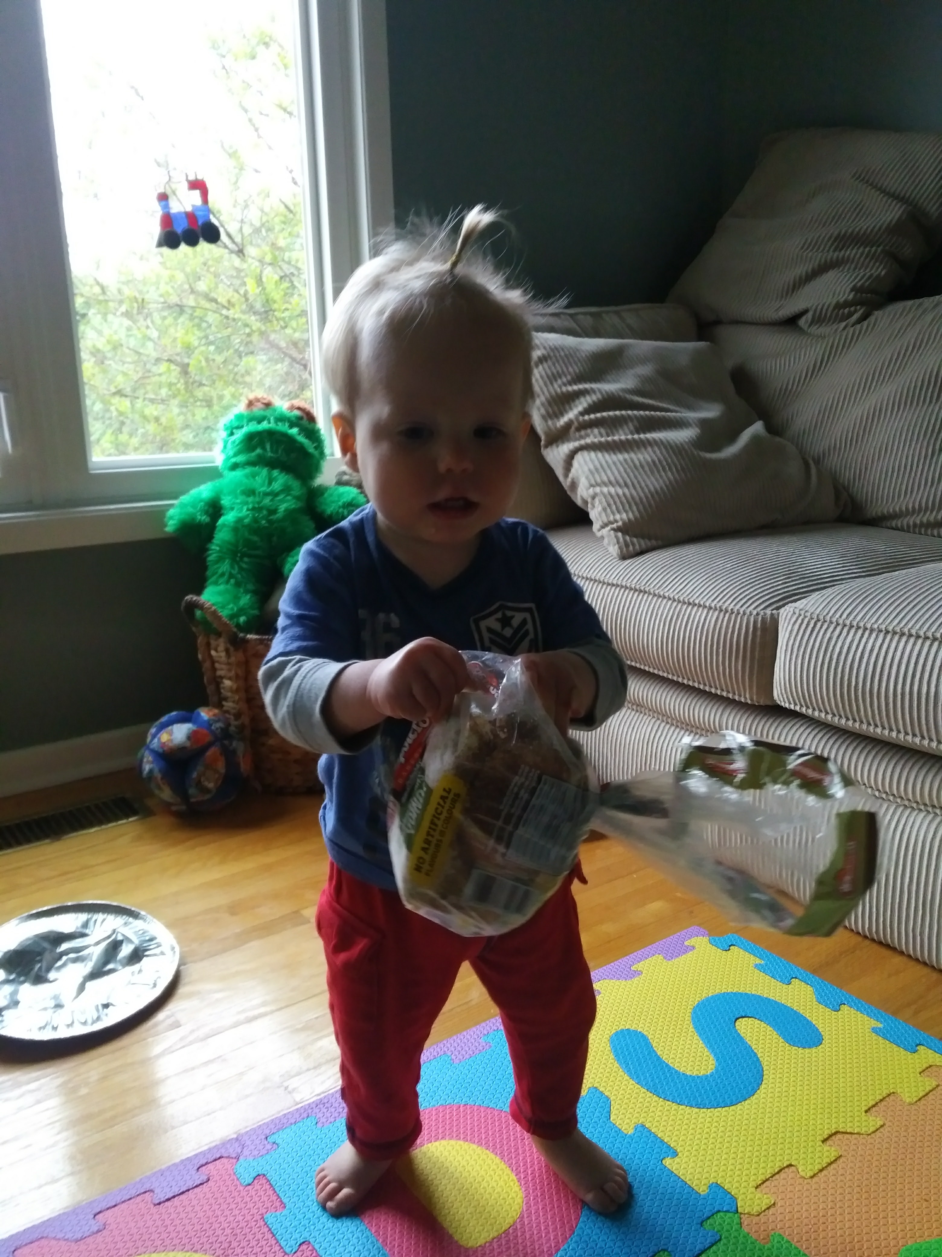 At 14 months old, Isaac seems to be learning exponentially, and is growing a bunch too. He weighs approximately 20lbs now, and has really chunked up – filling out/growing out of his clothes. It may also have something to do with his clingy phase…he’s been walking for 4 months but he’s sooooo over walking now…wants to be carried all the time. But he also gives great hugs, and is napping like a champion at home. Eating is still a bit of a challenge – especially now that he has ever changing favourite foods and knows where they are kept. He’ll root through our backpacks for the snacks he likes. Isaac loves sitting on our laps to put on his shoes, or read books. His favourite books are the ones with songs. His personality is developing more every day.