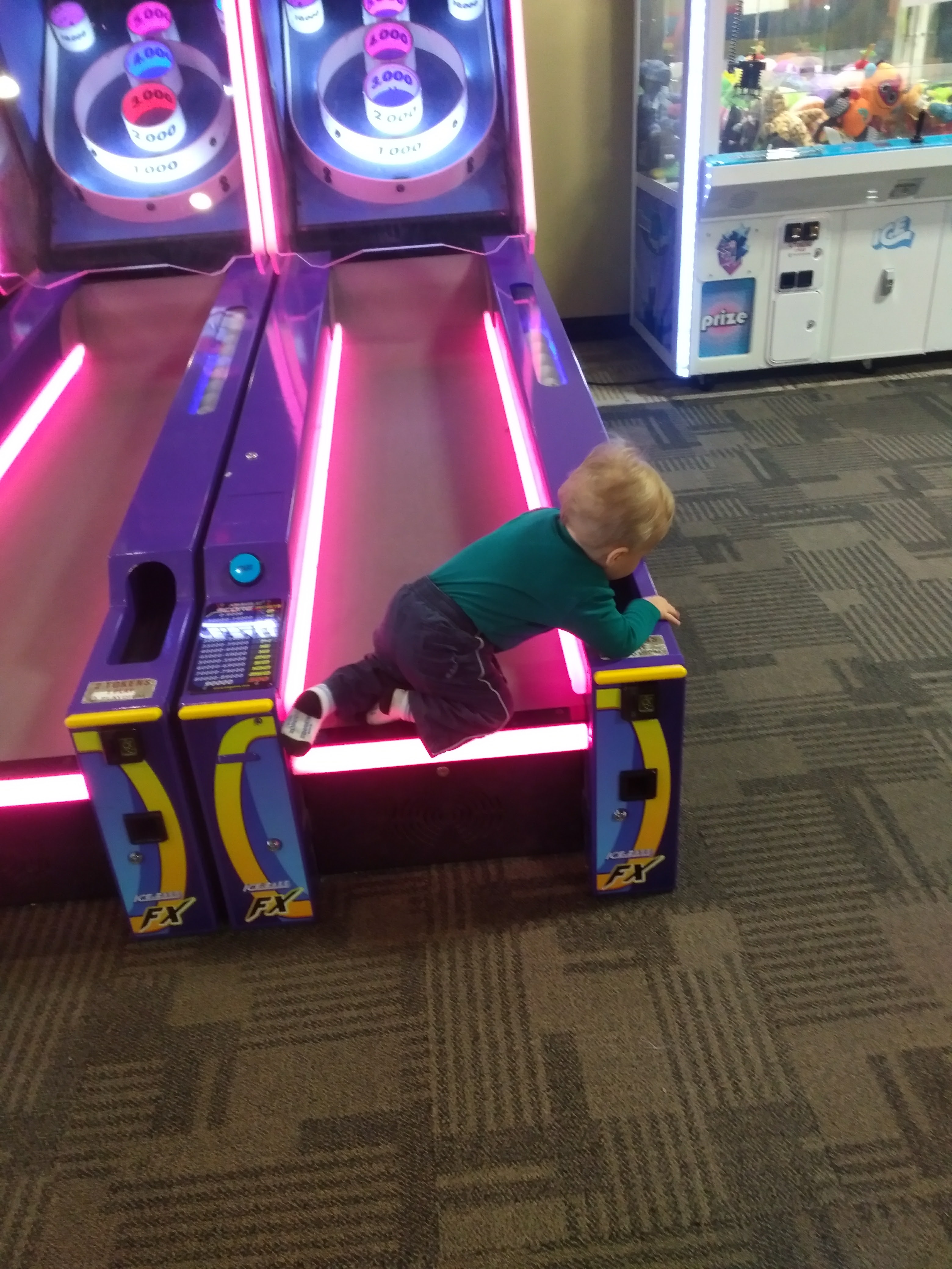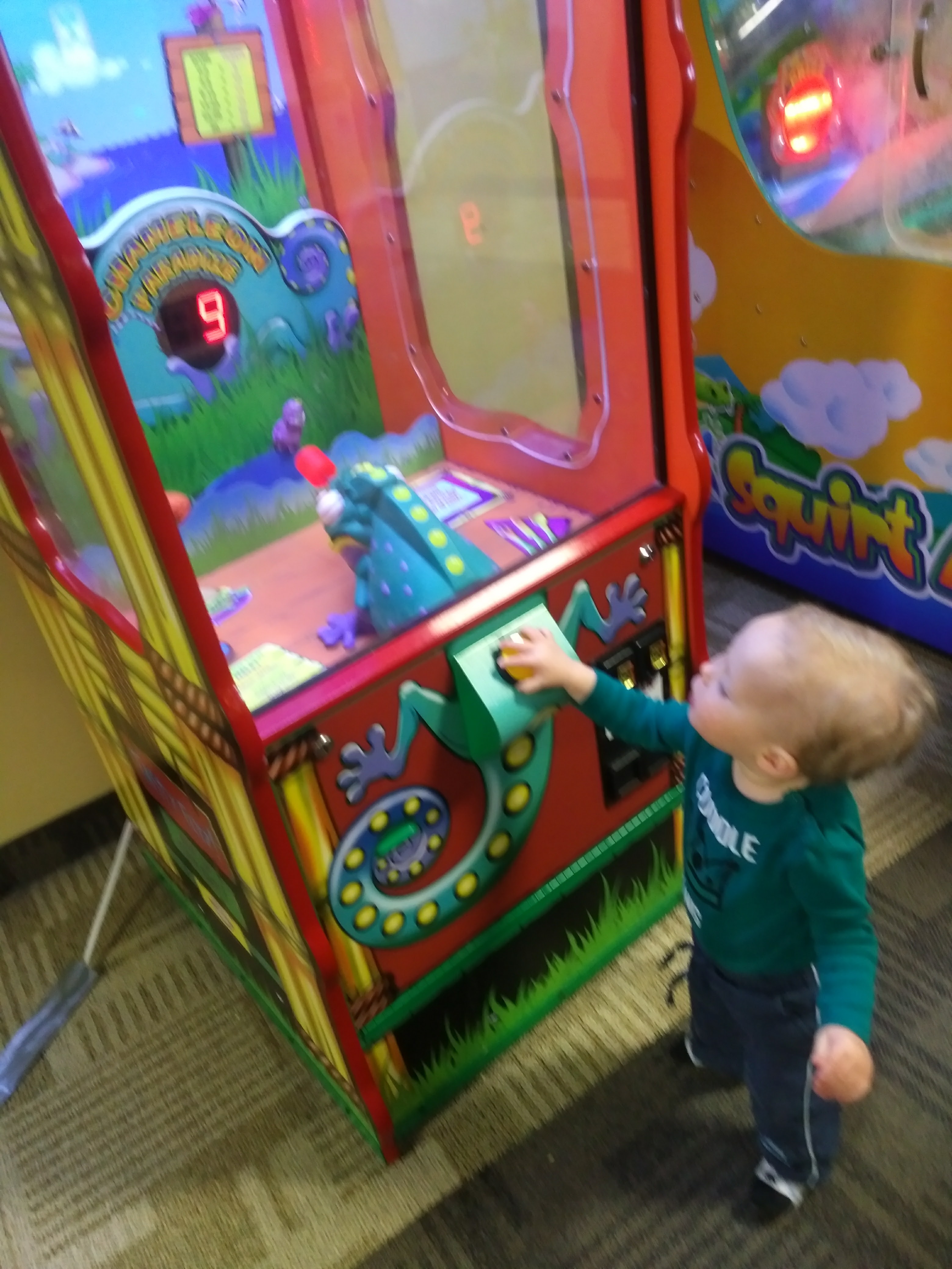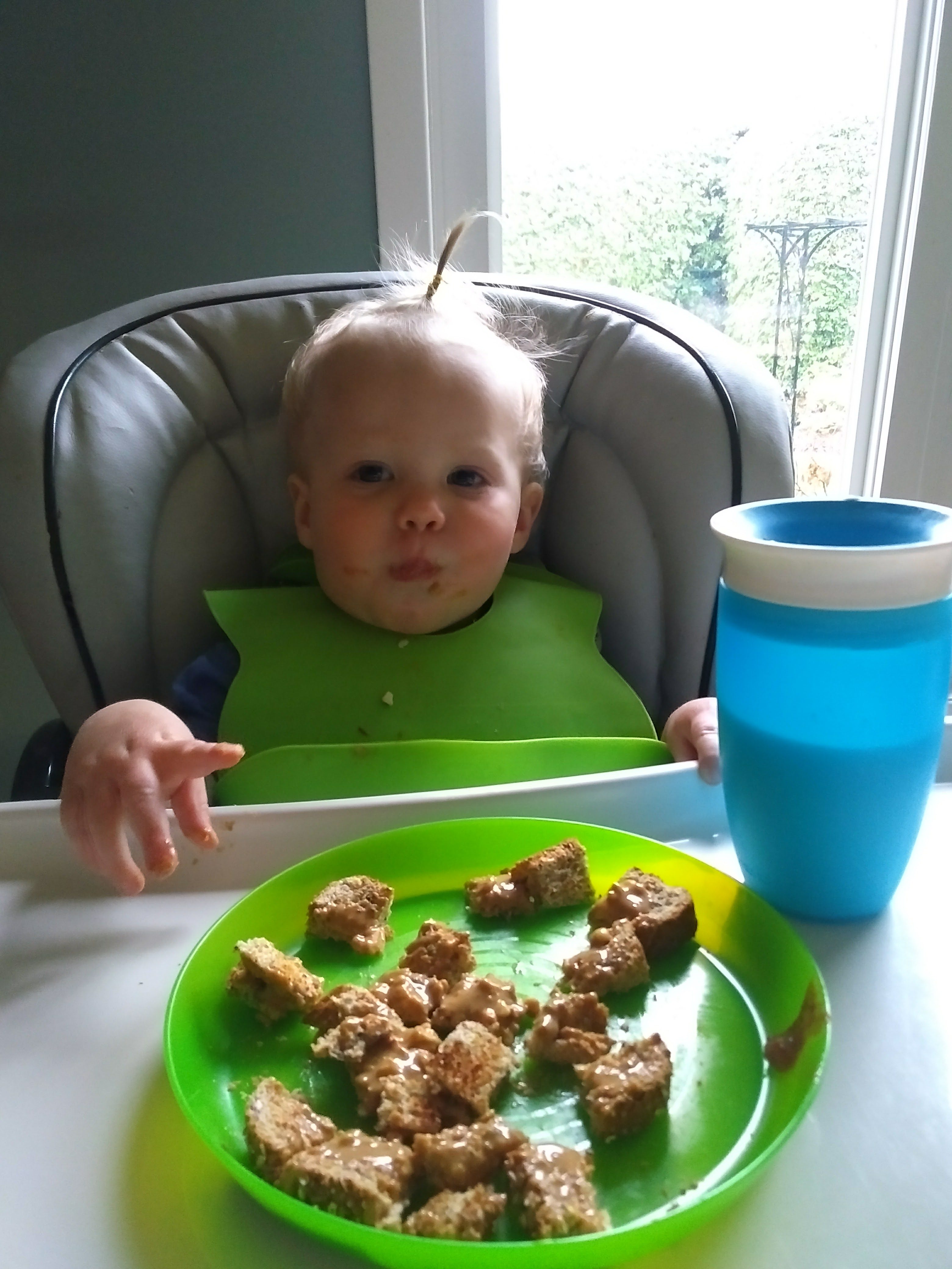 New tasks – Isaac will wipe up his spills when asked, he’s started trying to get undressed for bath (and tries to climb into the tub), gets his shoes and hat to go outside and tries to put them on, wipes his own nose (still unsuccessfully but tries), sits on the potty (fully clothed still) and throws his toilet paper in the toilet, flushes the toilet, picks up food he has dropped when asked, puts toys away, points to body parts when asked, points to the duck on the page of animals, brushes his own teeth and hair