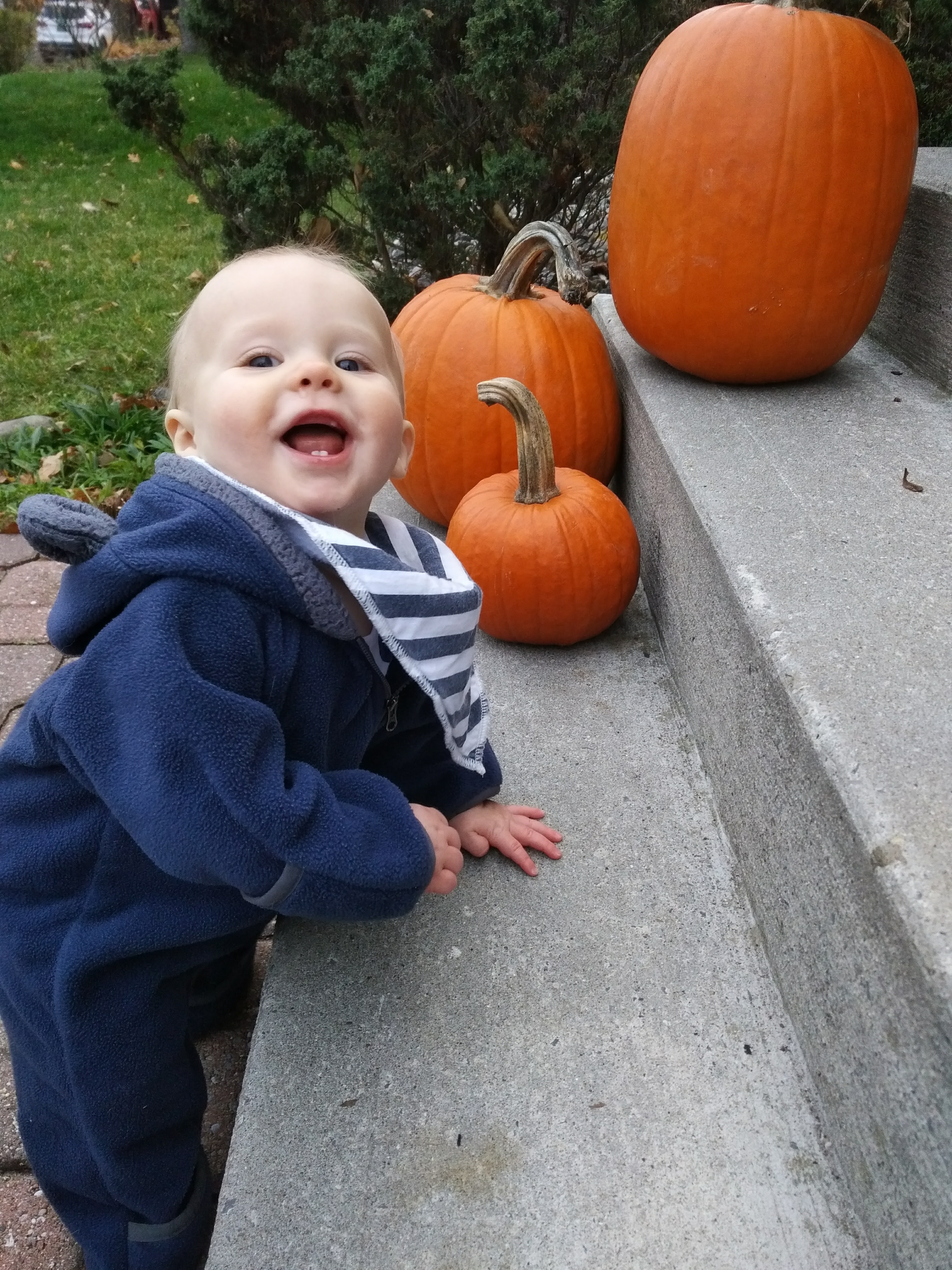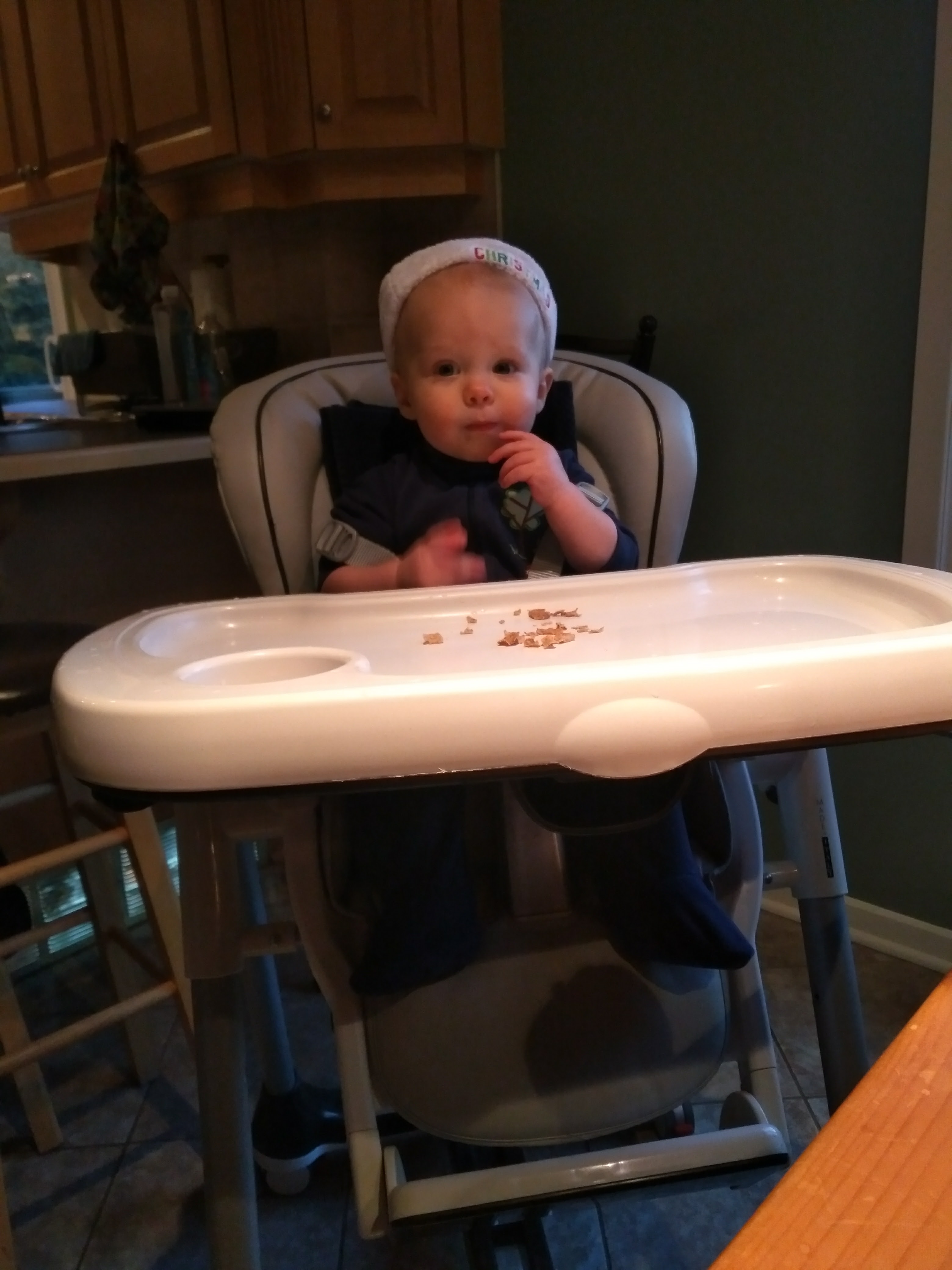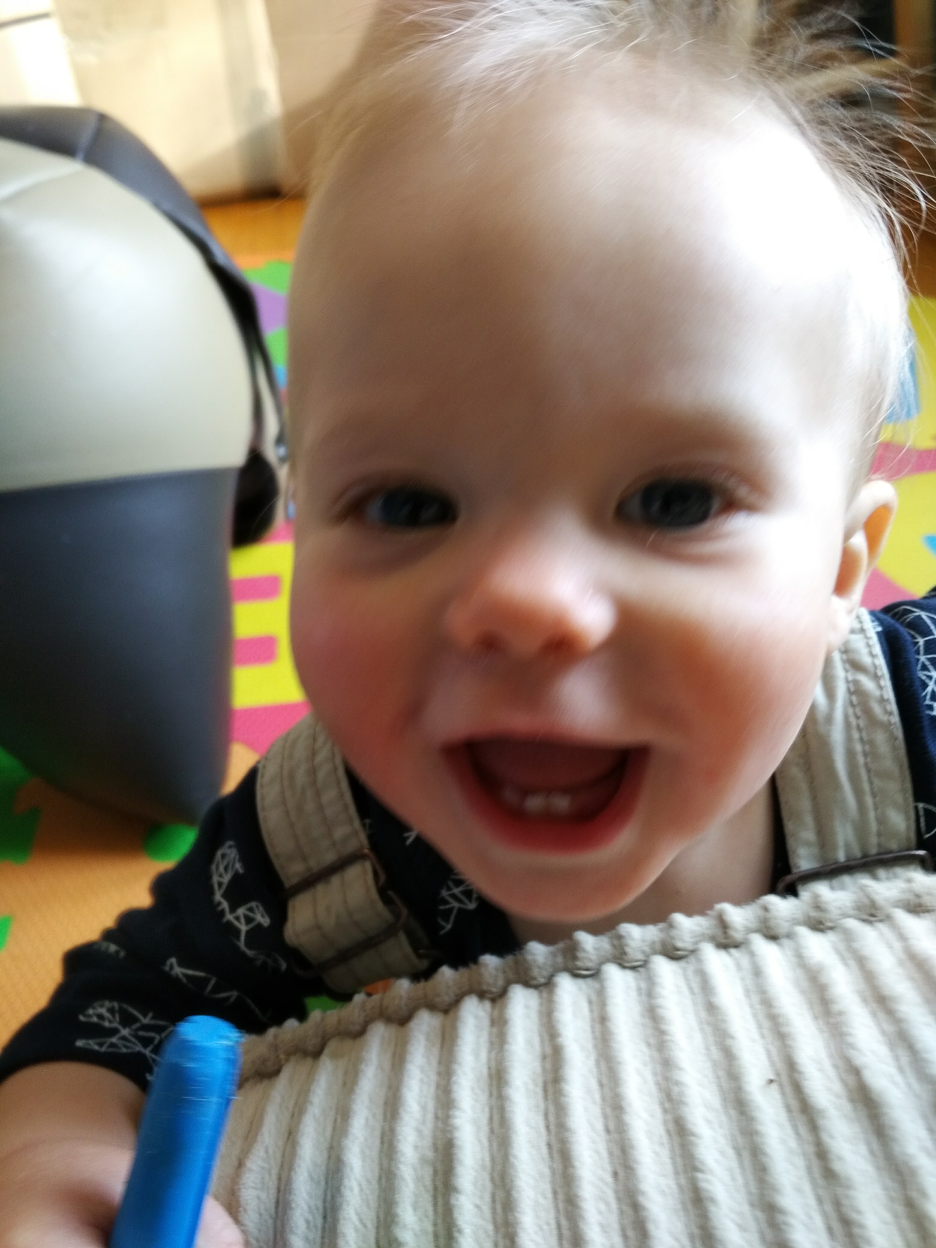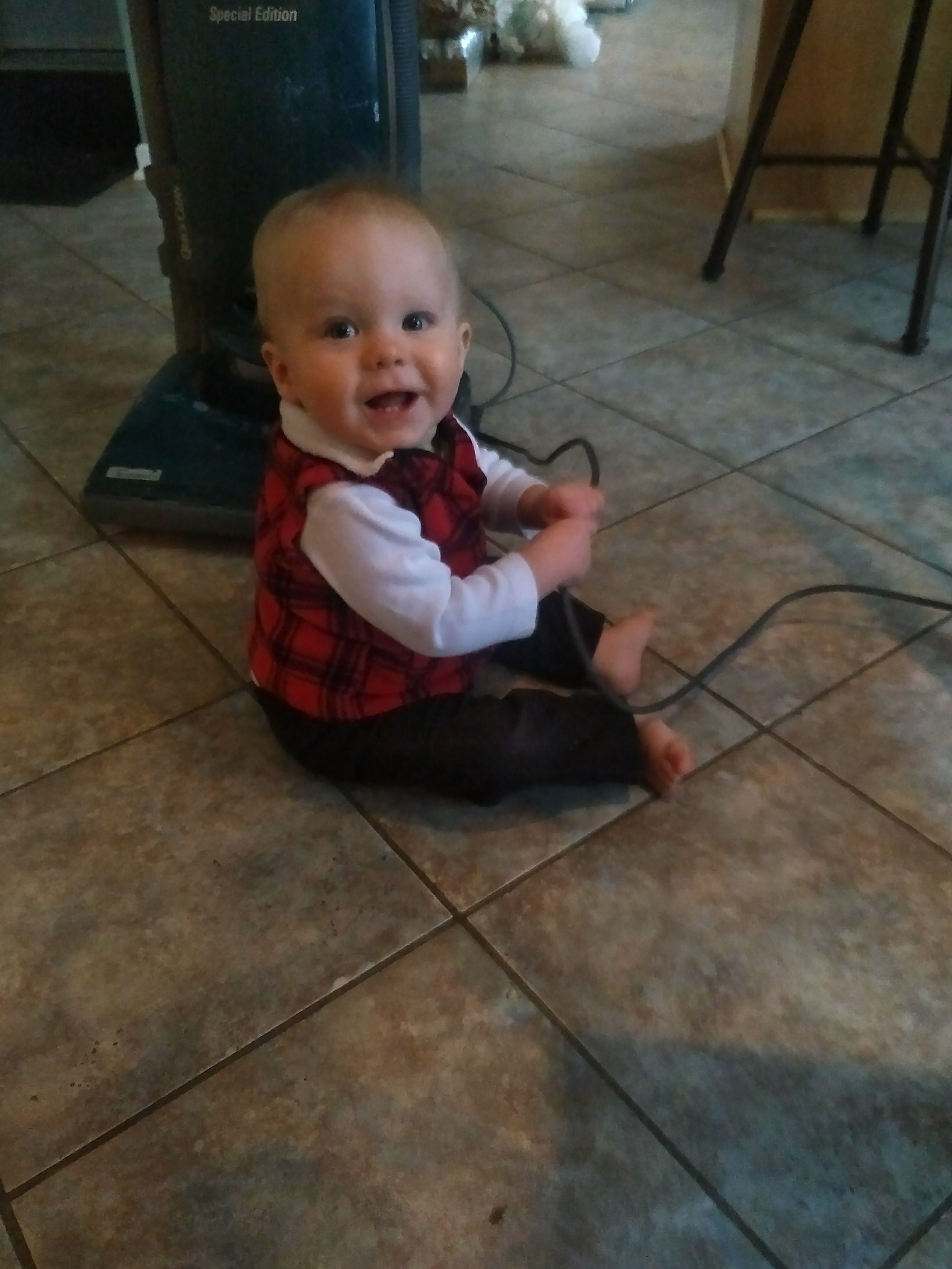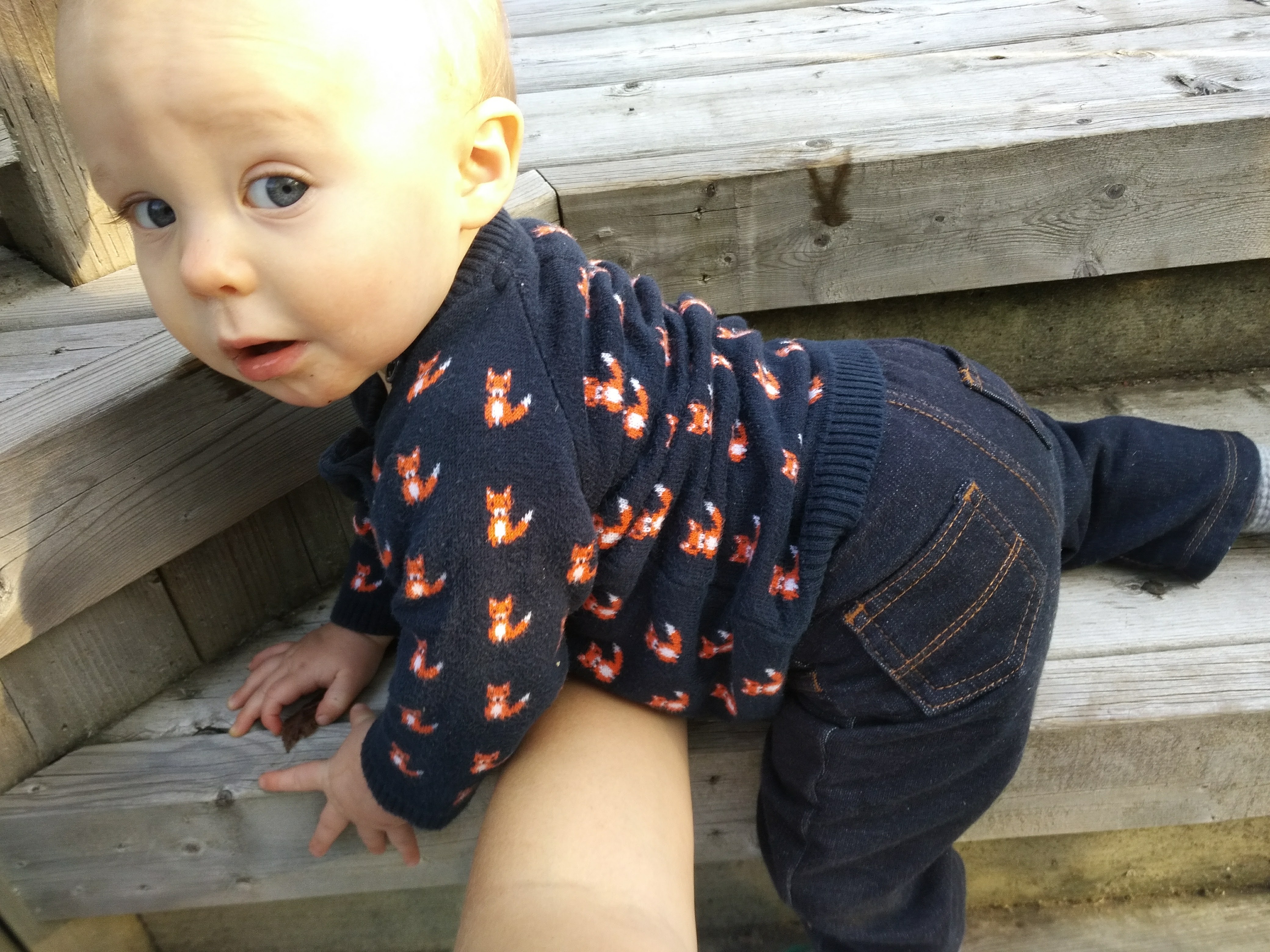 9 months old, with a few more teeth, not quite 17lbs, but almost walking! Isaac is always motoring around either speedy on all 4s, cruising along the furniture or practically running behind a walking toy. He’s been enjoying his new play space and loves exploring the new house. He’s even been trying to help unpack…