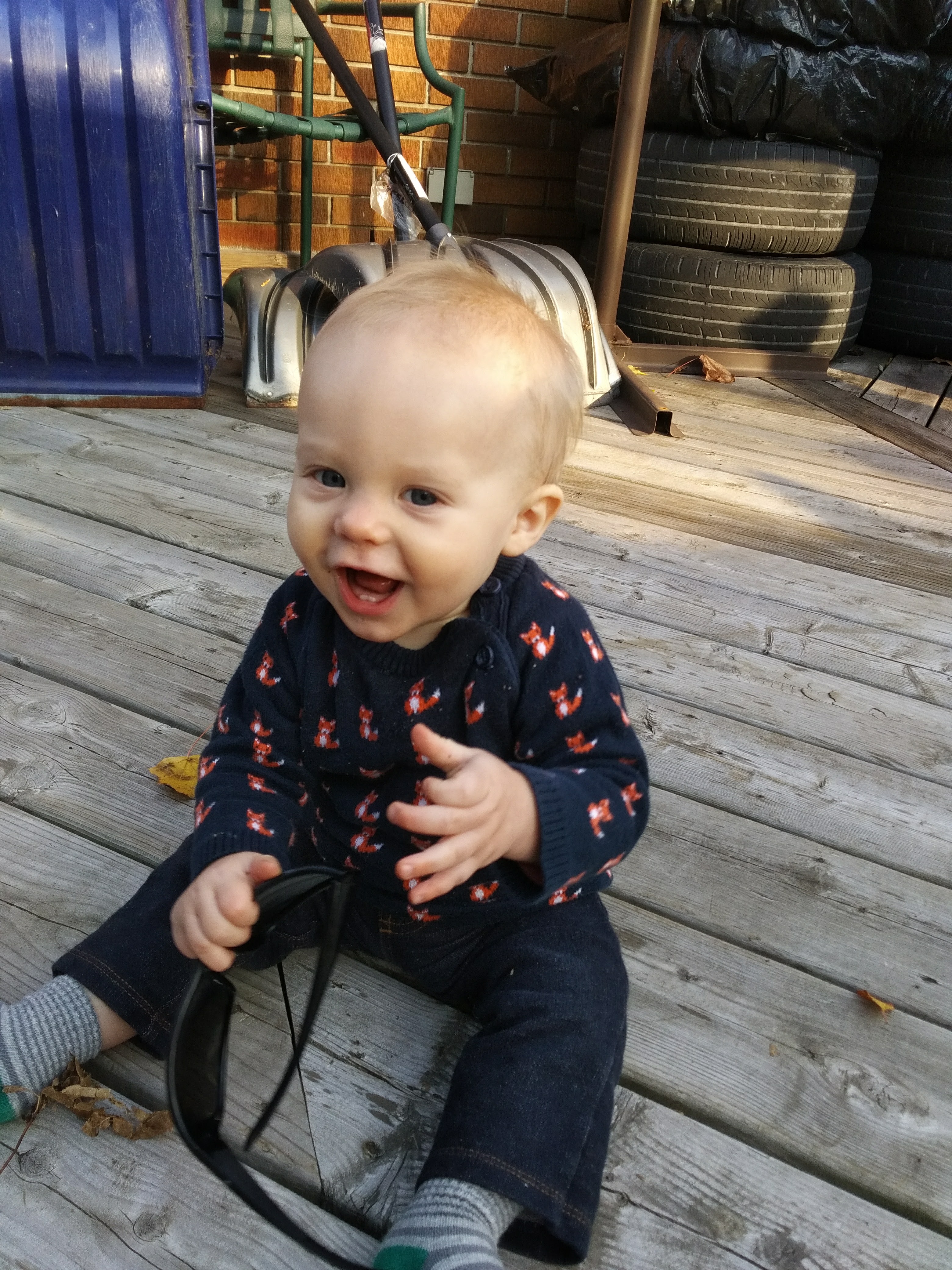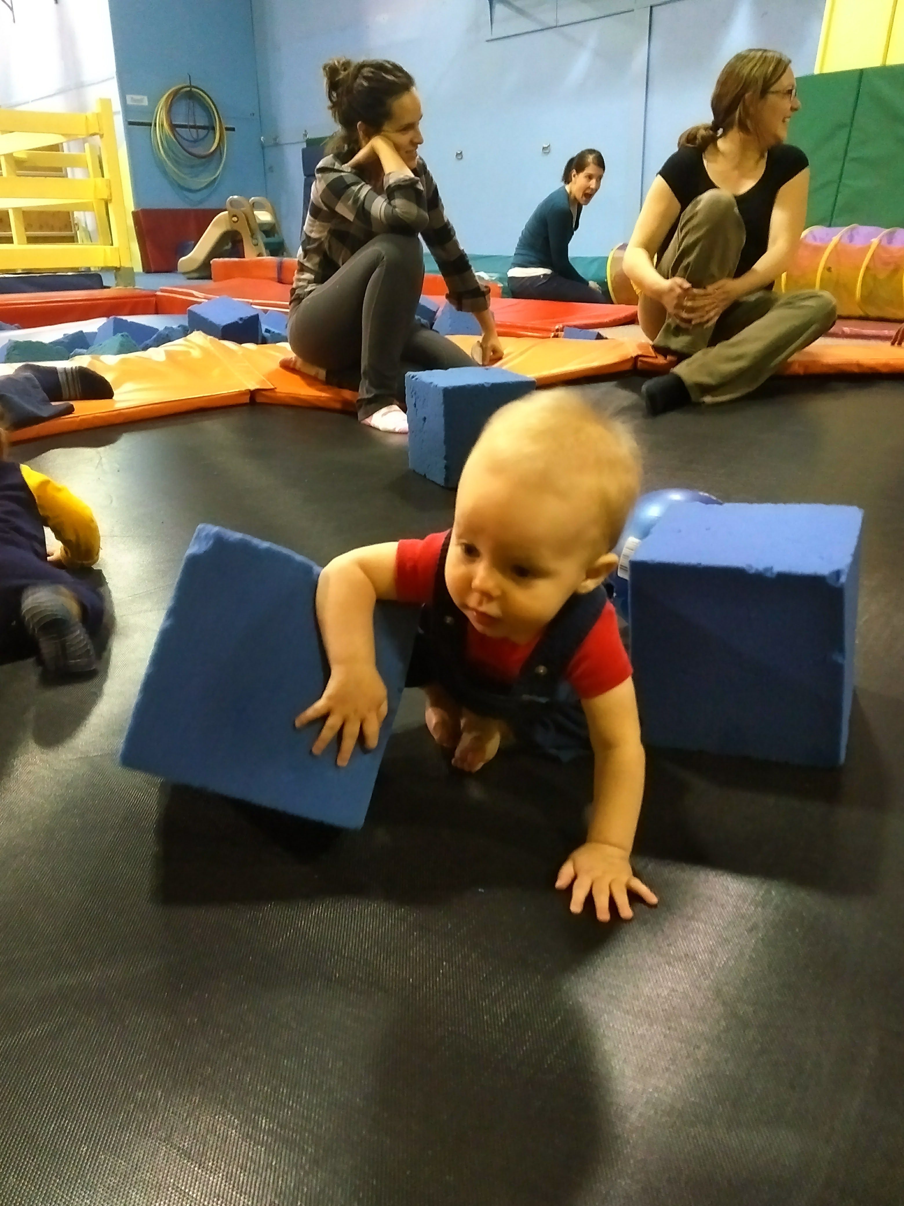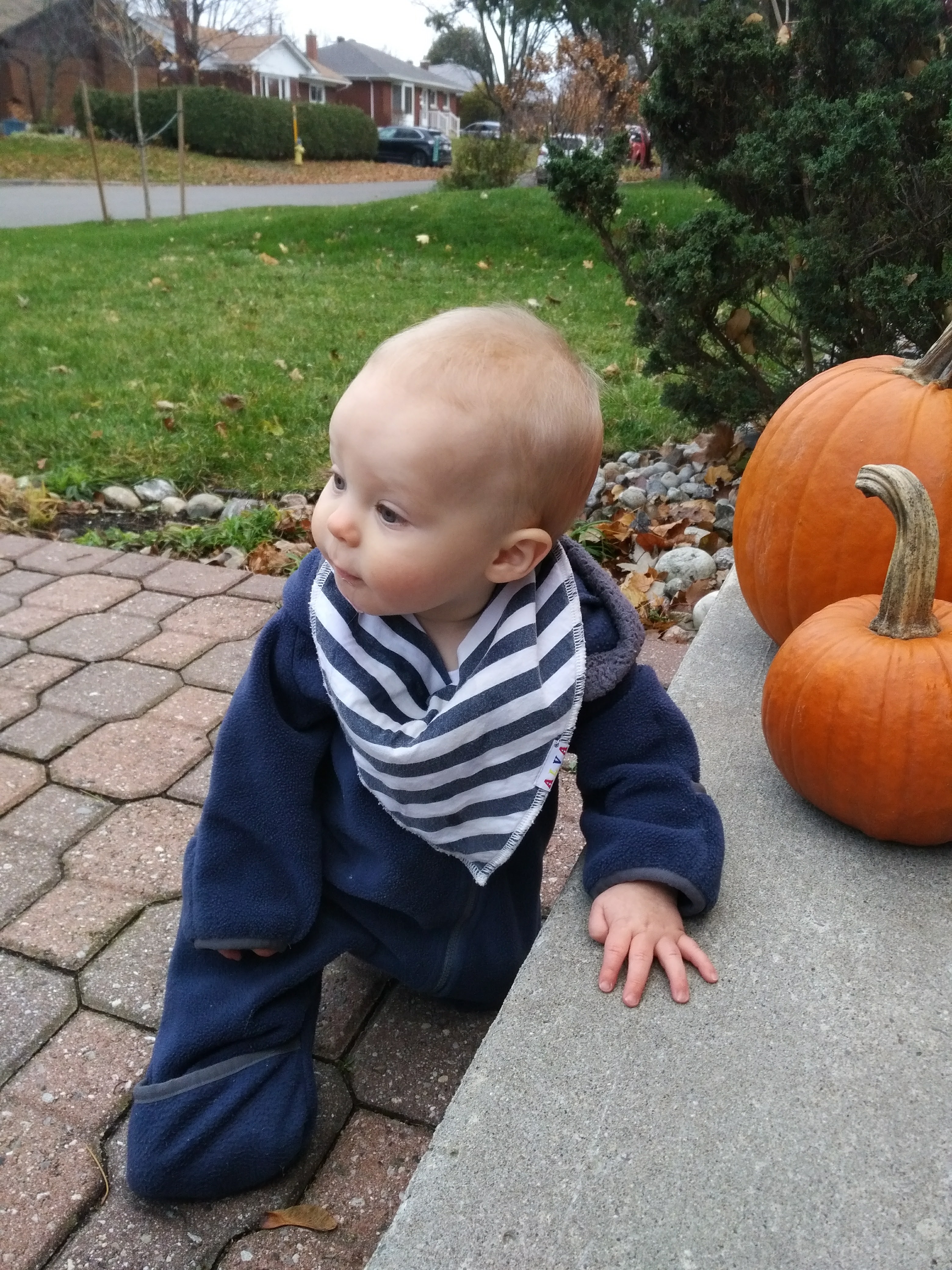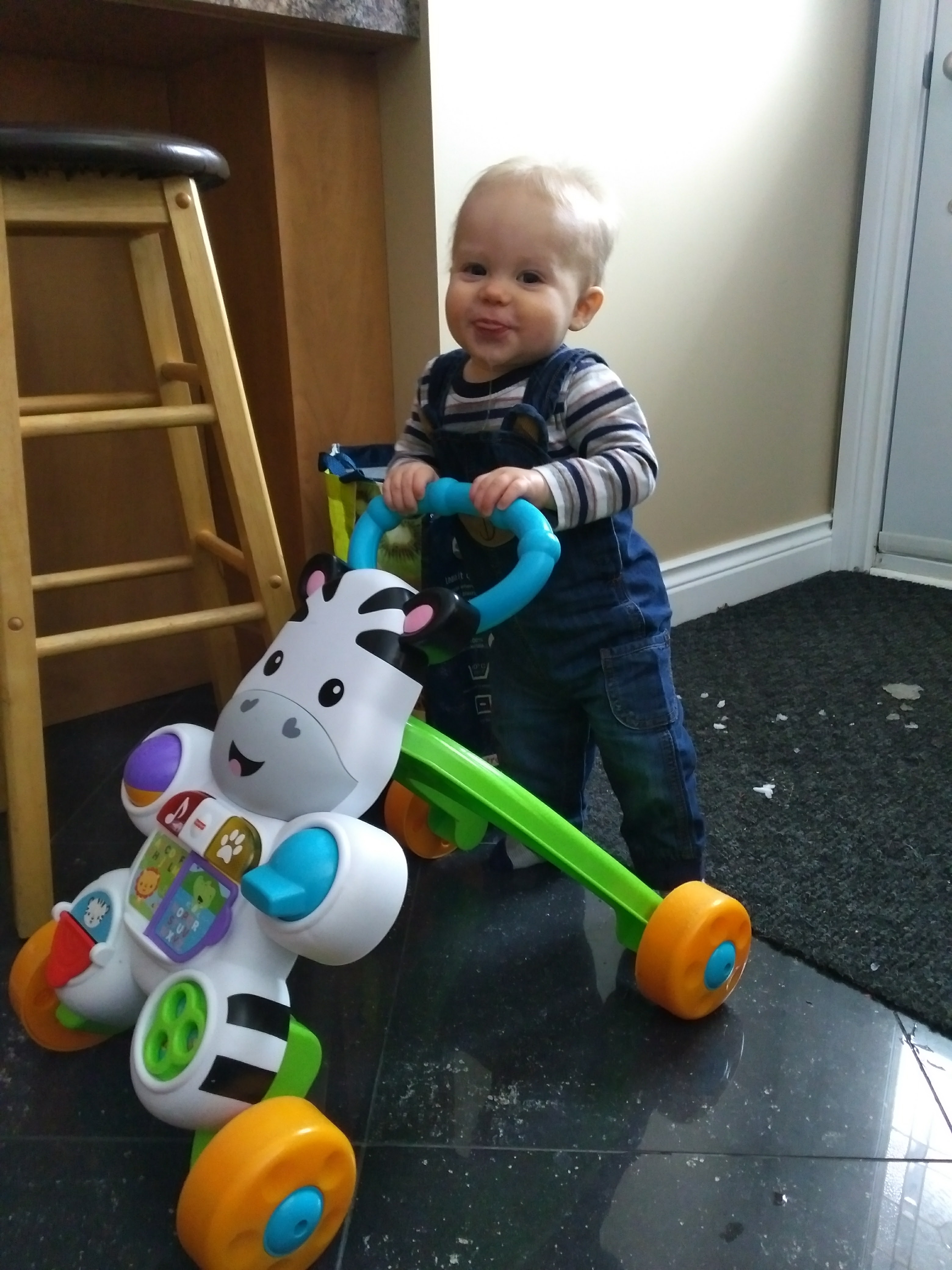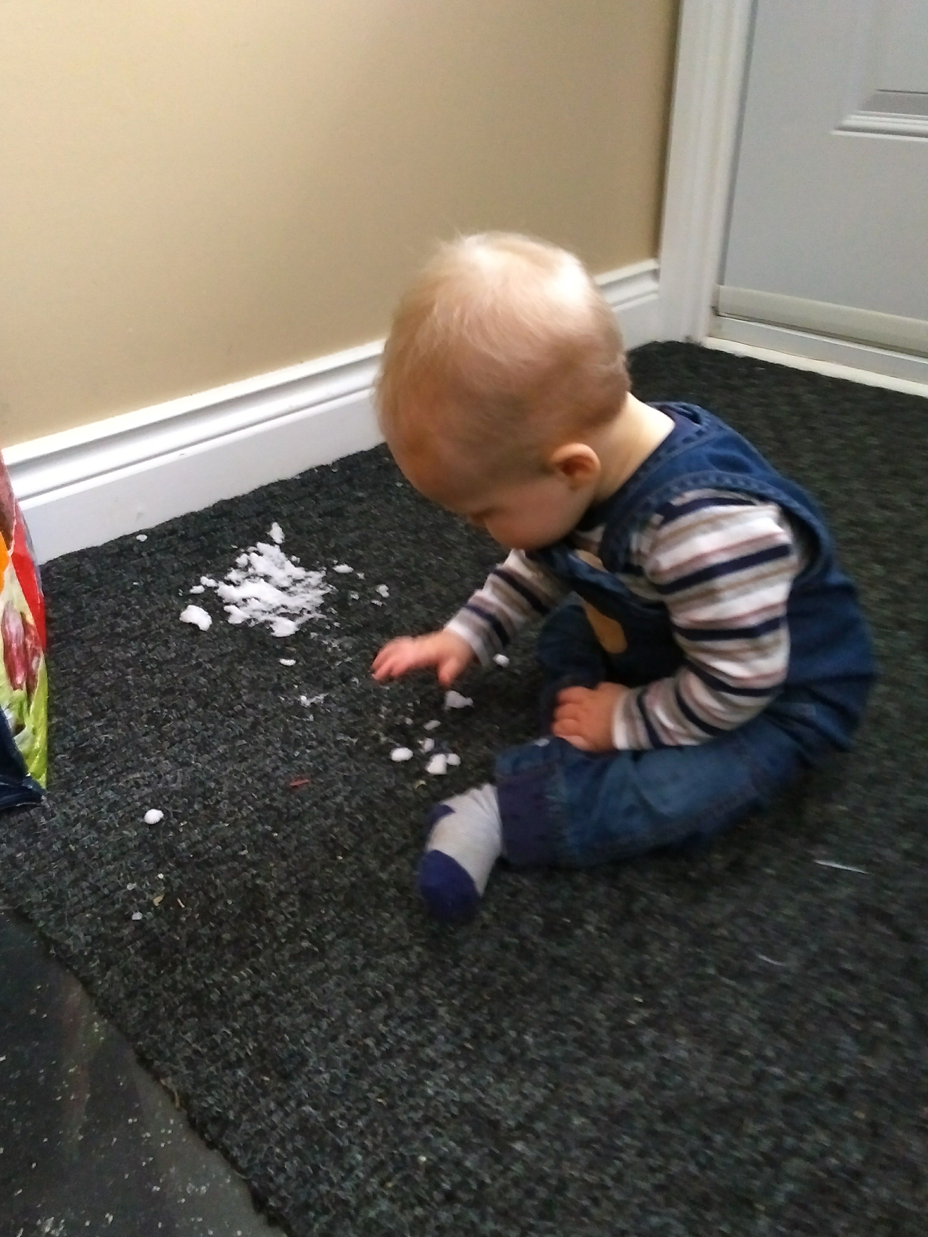 9 months old, with a few more teeth, not quite 17lbs, but almost walking! Isaac is always motoring around either speedy on all 4s, cruising along the furniture or practically running behind a walking toy. He’s been enjoying his new play space and loves exploring the new house. He’s even been trying to help unpack…