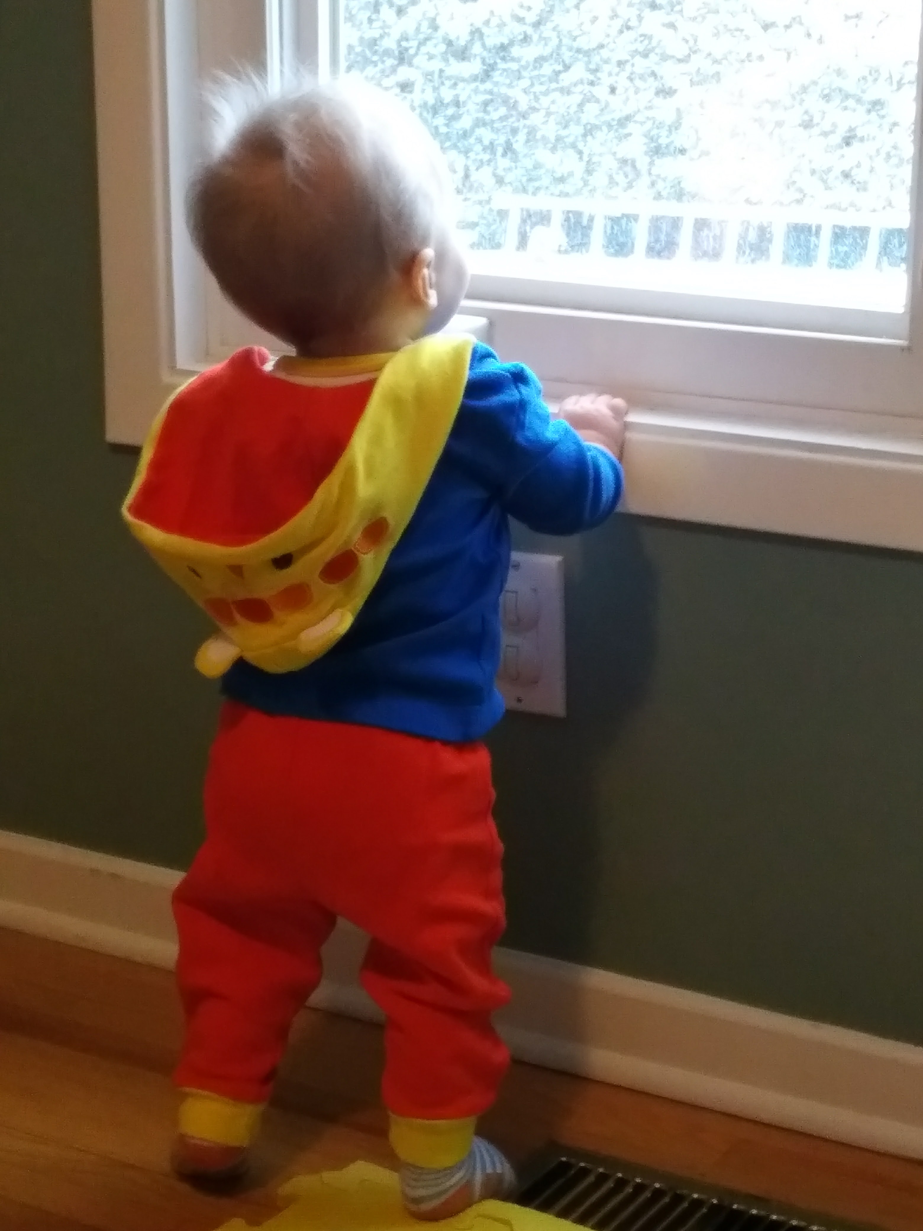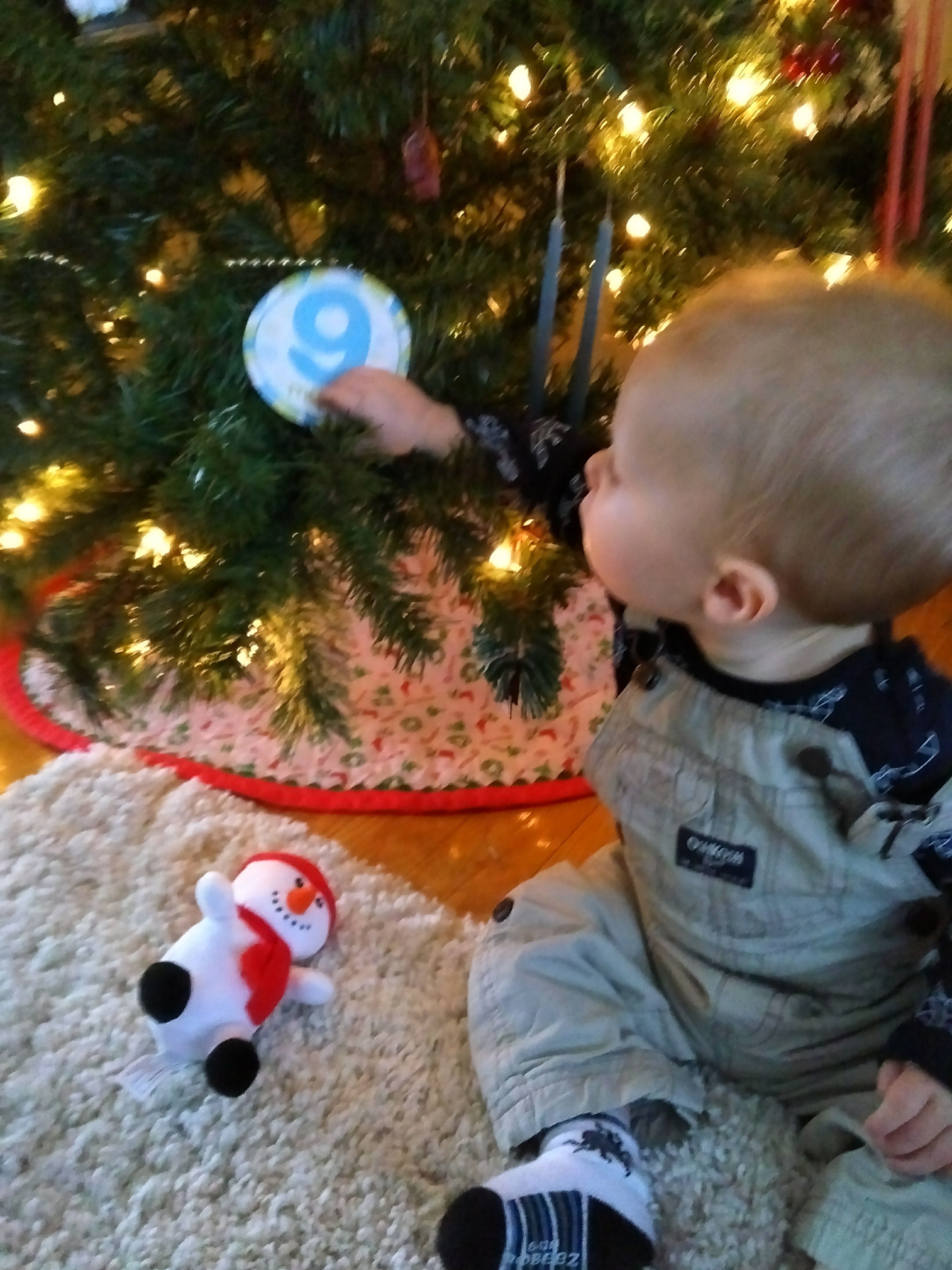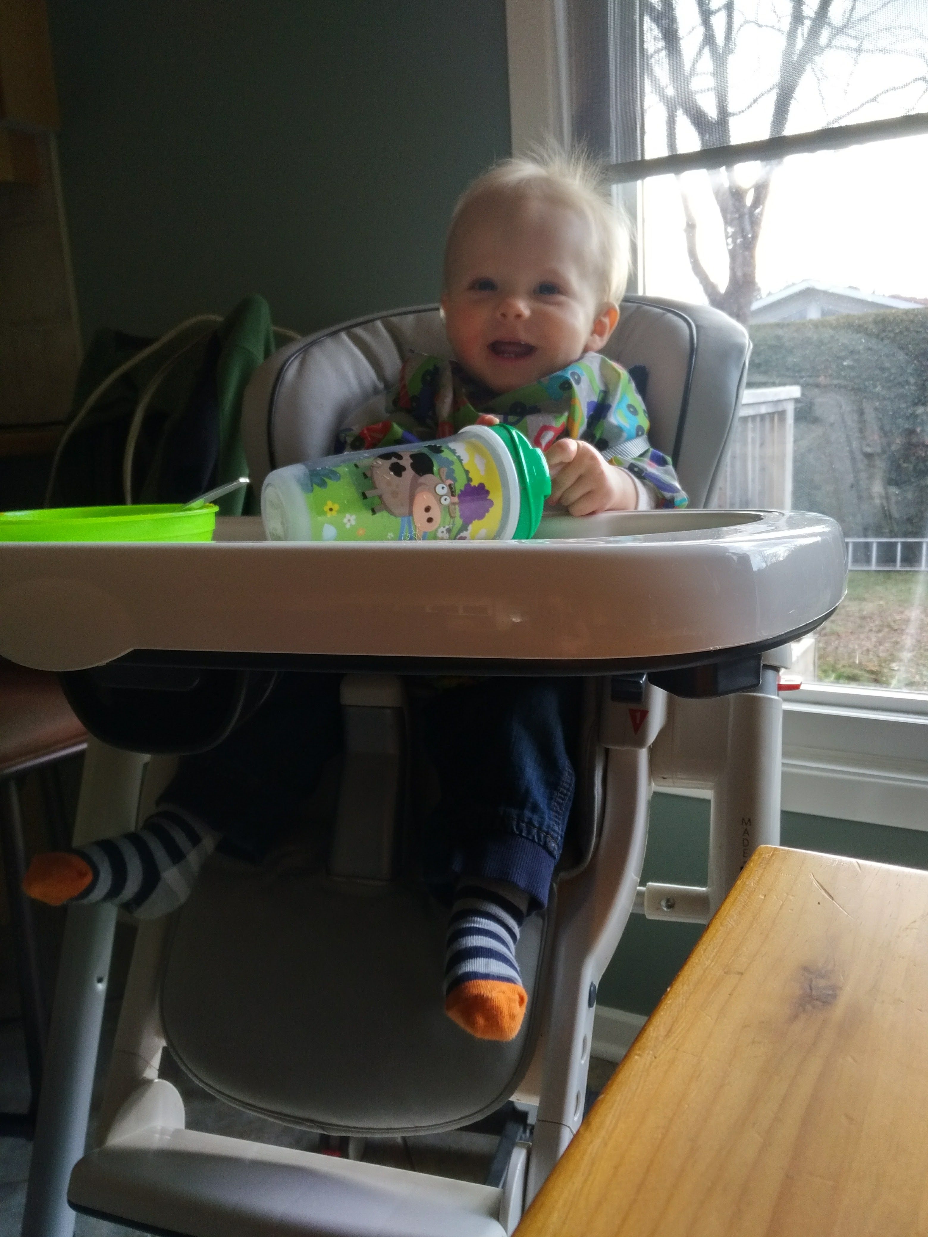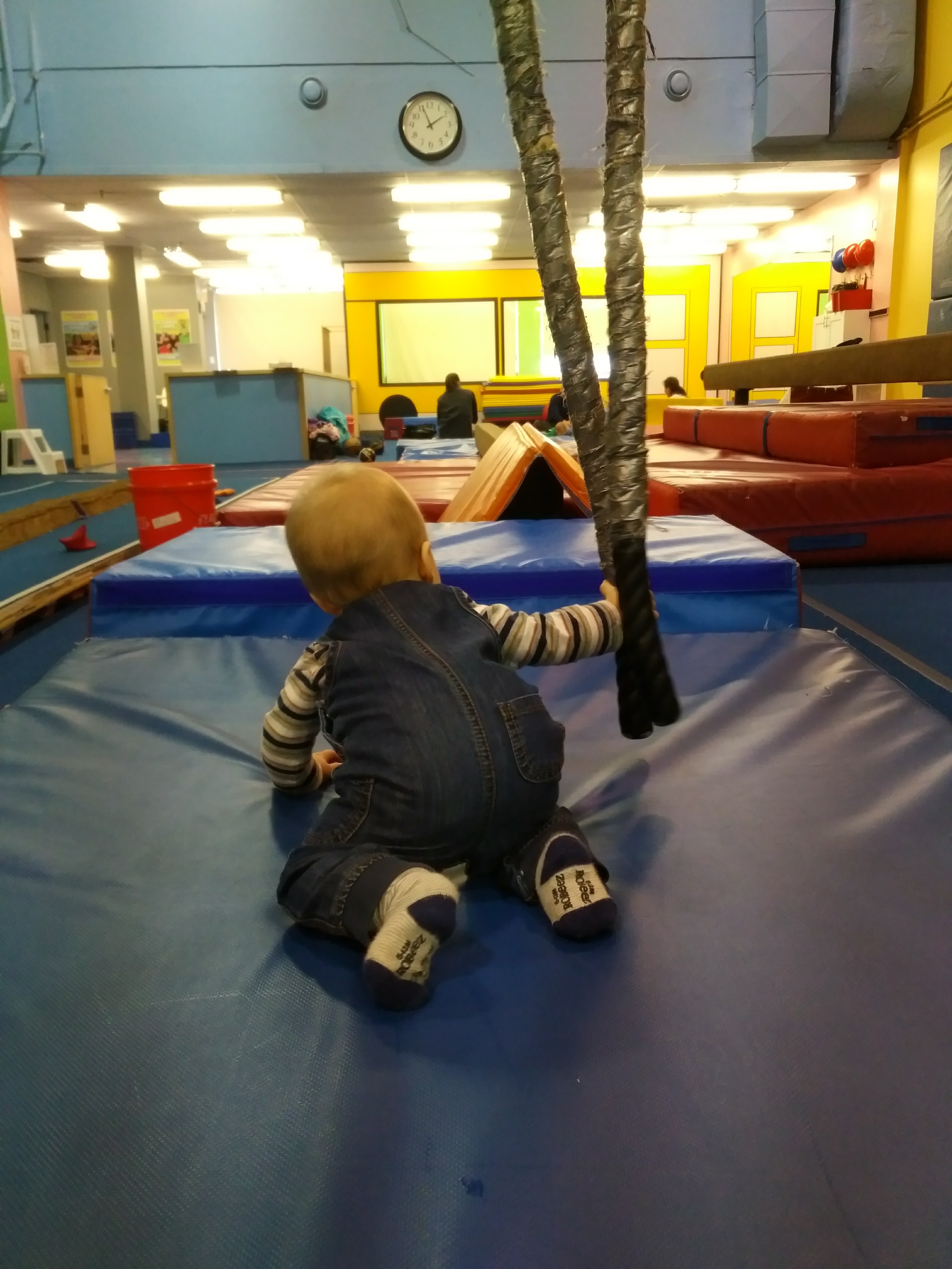 9 months old, with a few more teeth, not quite 17lbs, but almost walking! Isaac is always motoring around either speedy on all 4s, cruising along the furniture or practically running behind a walking toy. He’s been enjoying his new play space and loves exploring the new house. He’s even been trying to help unpack…
