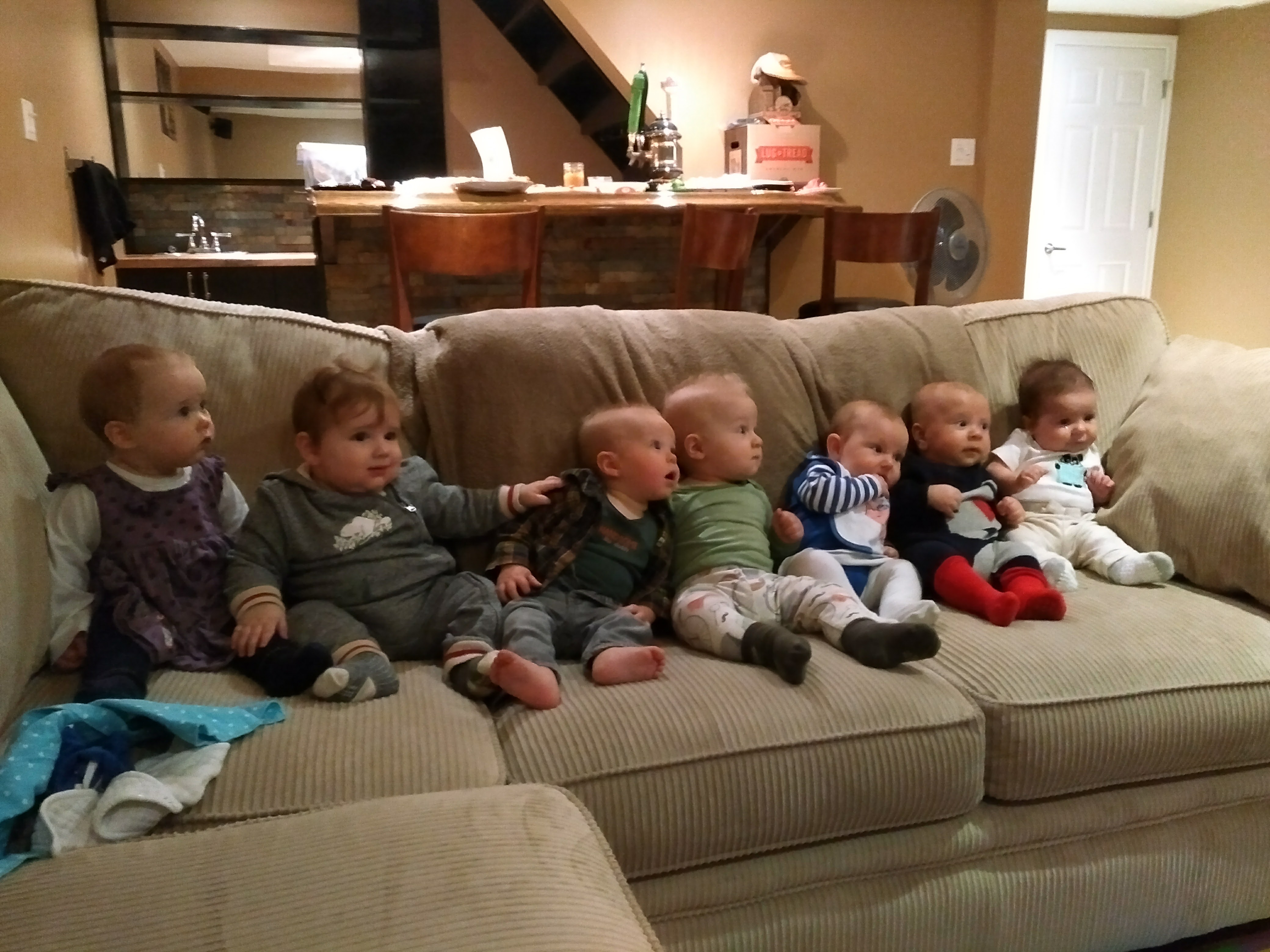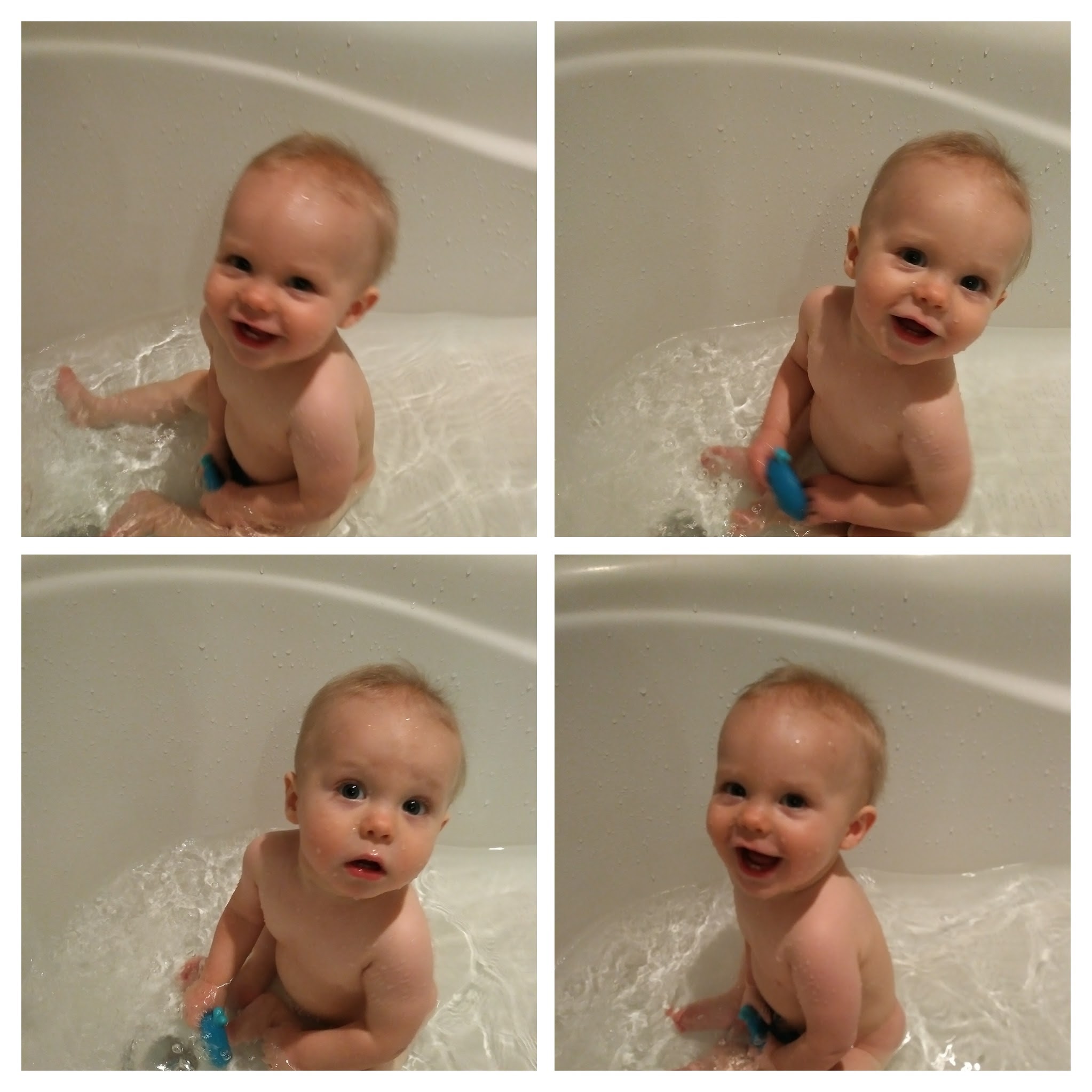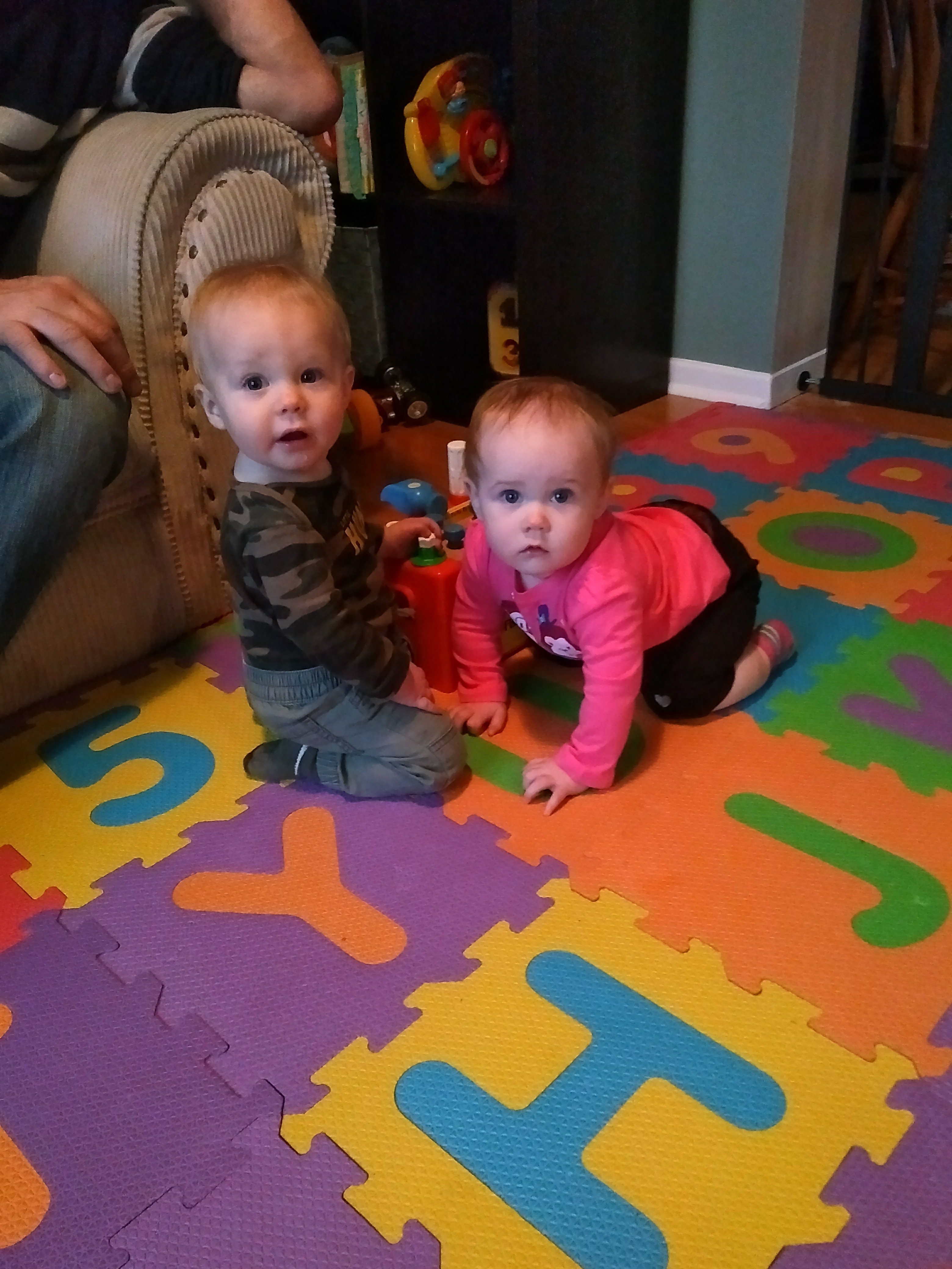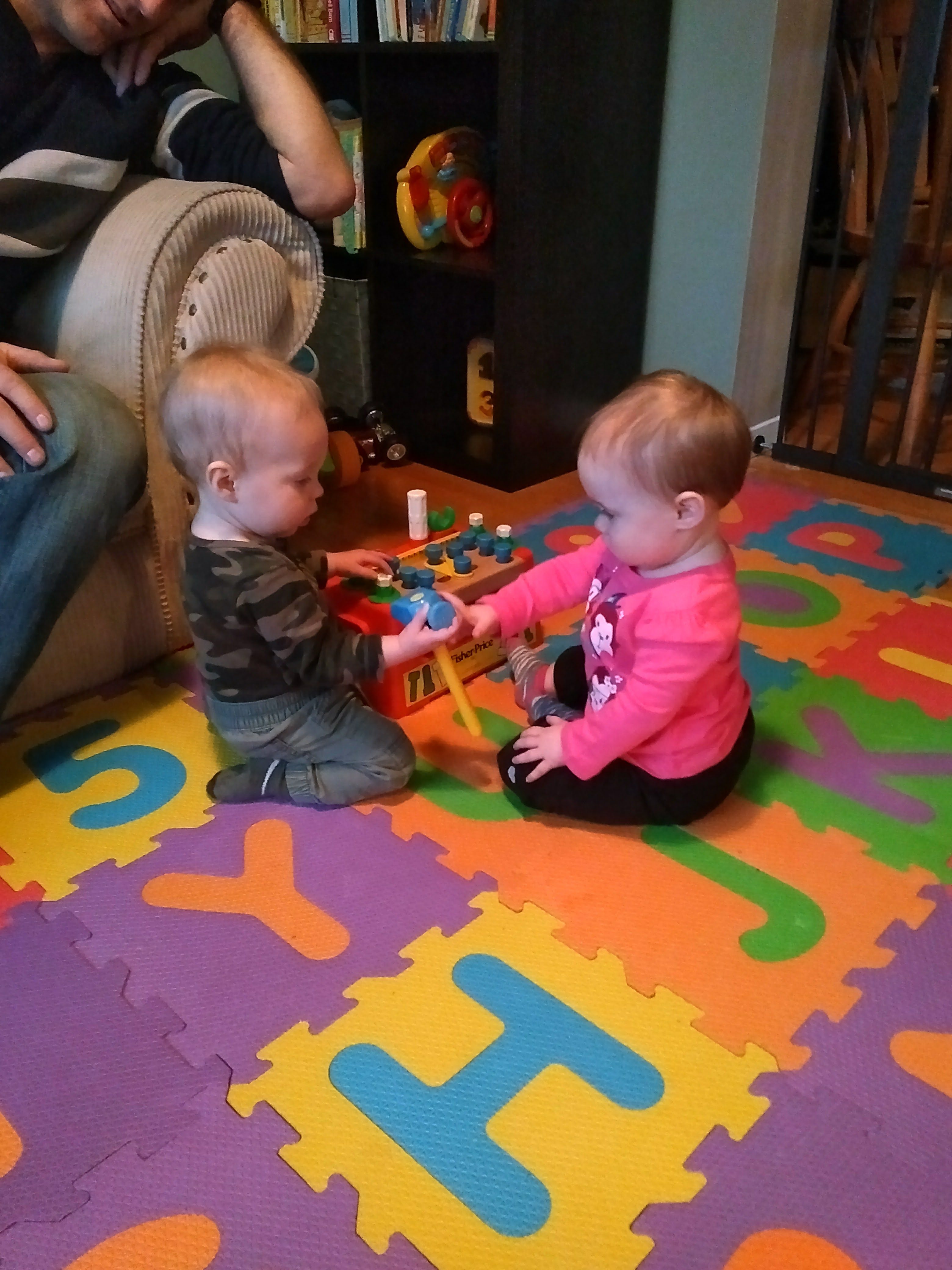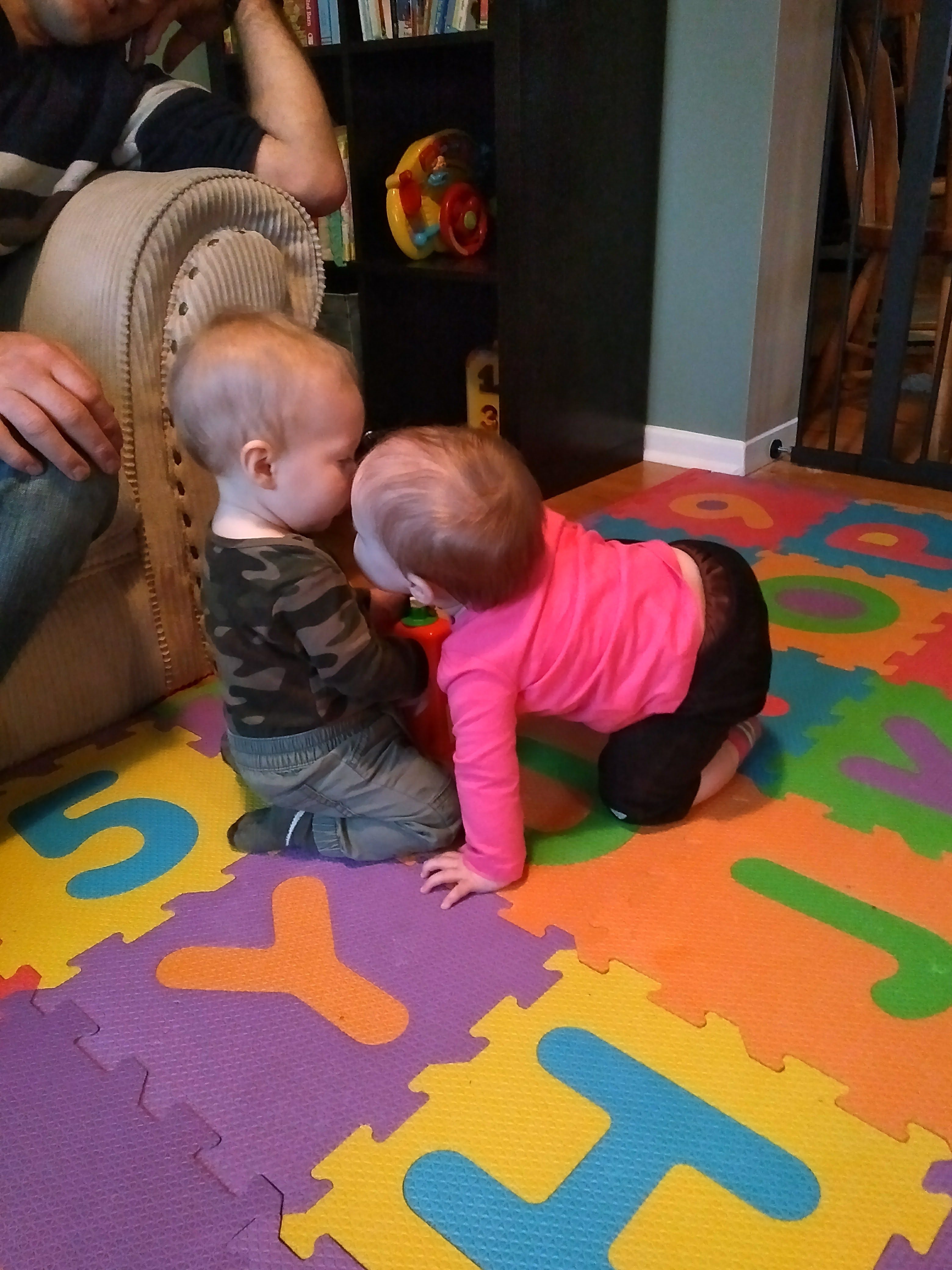 9 months old, with a few more teeth, not quite 17lbs, but almost walking! Isaac is always motoring around either speedy on all 4s, cruising along the furniture or practically running behind a walking toy. He’s been enjoying his new play space and loves exploring the new house. He’s even been trying to help unpack…