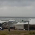 There was a heavy storm that rolled through in the evening during the run. The storm brought 60+ mph winds and lots of rain. The finish for the race, that is usually on the beach, had to be relocated as the band stand and tents were thrown about.