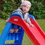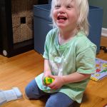 Cadence is afraid of her shadow! Once she notices it, she won’t move for fear of stepping on it, until we wave and say “hi Shadow!”