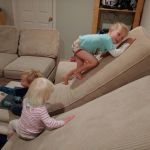 Cadence is always motioning for us to come play with her, and says “come” (sounds like ummm”). Asher is always bringing us a book to read to him. Isaac is always climbing on our heads. Makes it hard to do all three at once…