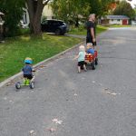 Since Jon has taken on working one day a weekend, Lindy has learned to manage the kids in the outdoors on her own or with help from neighbours. We’ve done a few trail walks and trips to parks. Who knows what the colder weather will mean for our keep-busy activities.