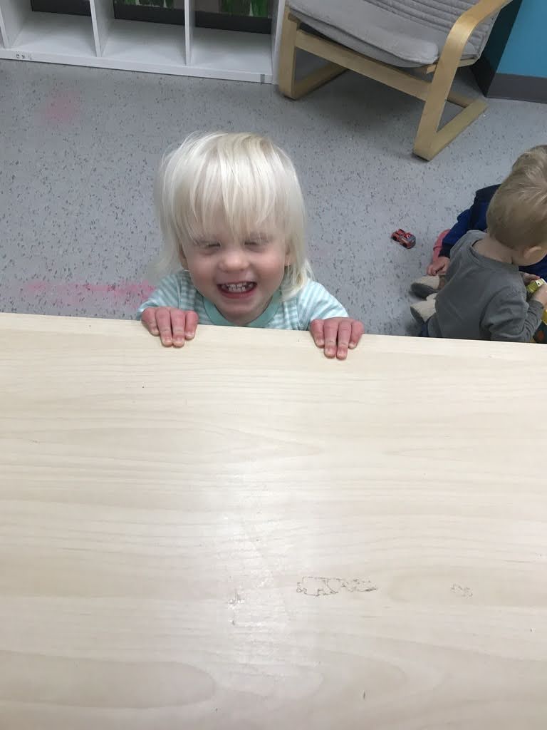 Cadence is afraid of her shadow! Once she notices it, she won’t move for fear of stepping on it, until we wave and say “hi Shadow!”