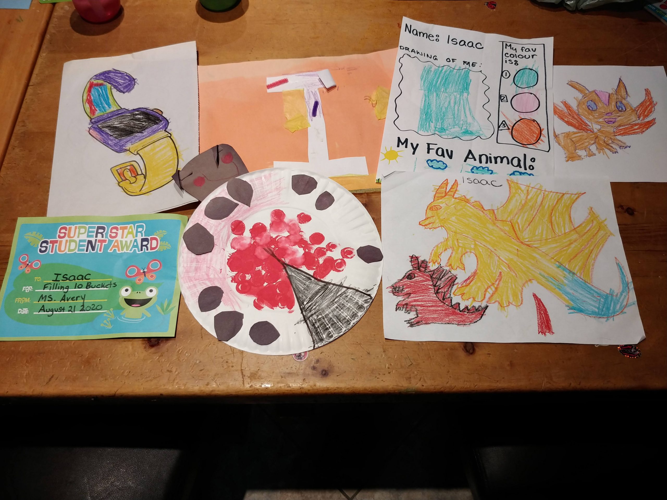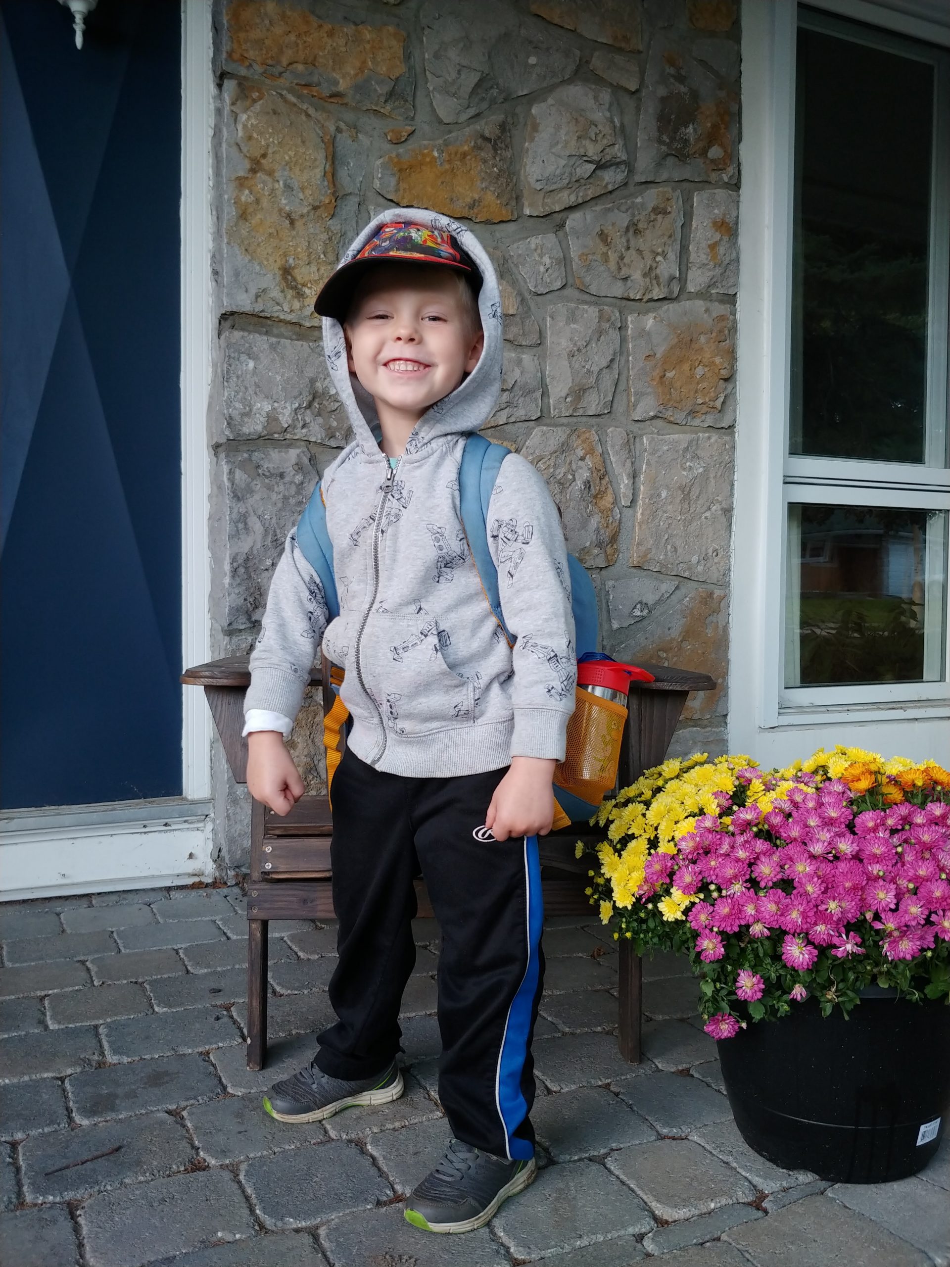 School is on! Isaac started his first day of kindergarten this fall, albeit a few weeks delayed because of covid. He was very excited to get on the bus with his friends even though they had to wear face masks – it doesn’t seem to phase these kids. He was ready for school, and is enjoying his teachers and says that they do lots of fun things!
