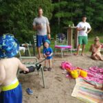 Between the trips to the cottage, family bbq’s and bbq’s with friends – Isaac has been enjoying daycare. Better yet, Isaac loved our weekend at Sandbanks, camping in a tent, chasing seagulls, digging holes in the sand, and splashing in the waves. Most of all, Isaac loved pushing his cousin Hank around in his dump truck.