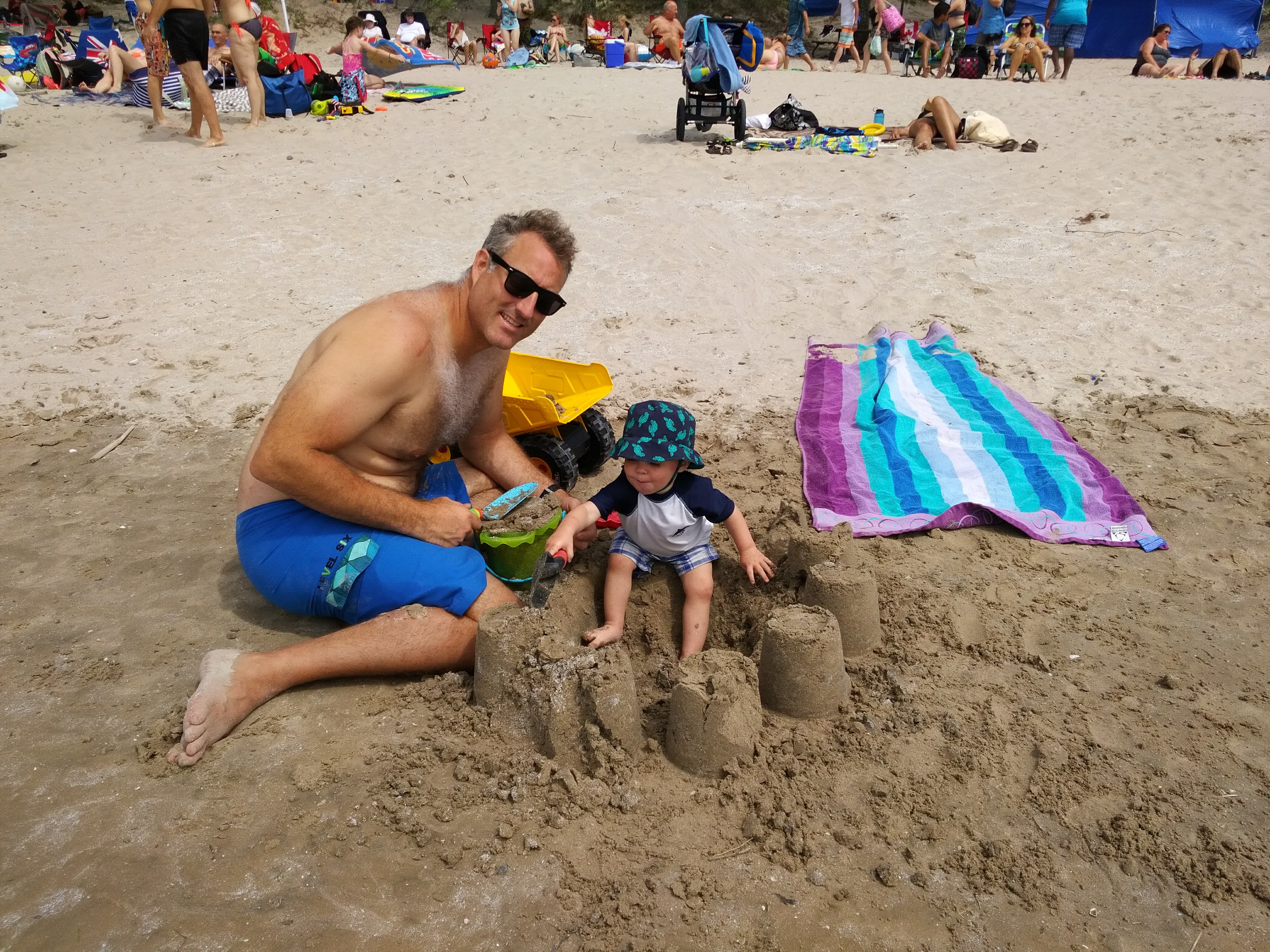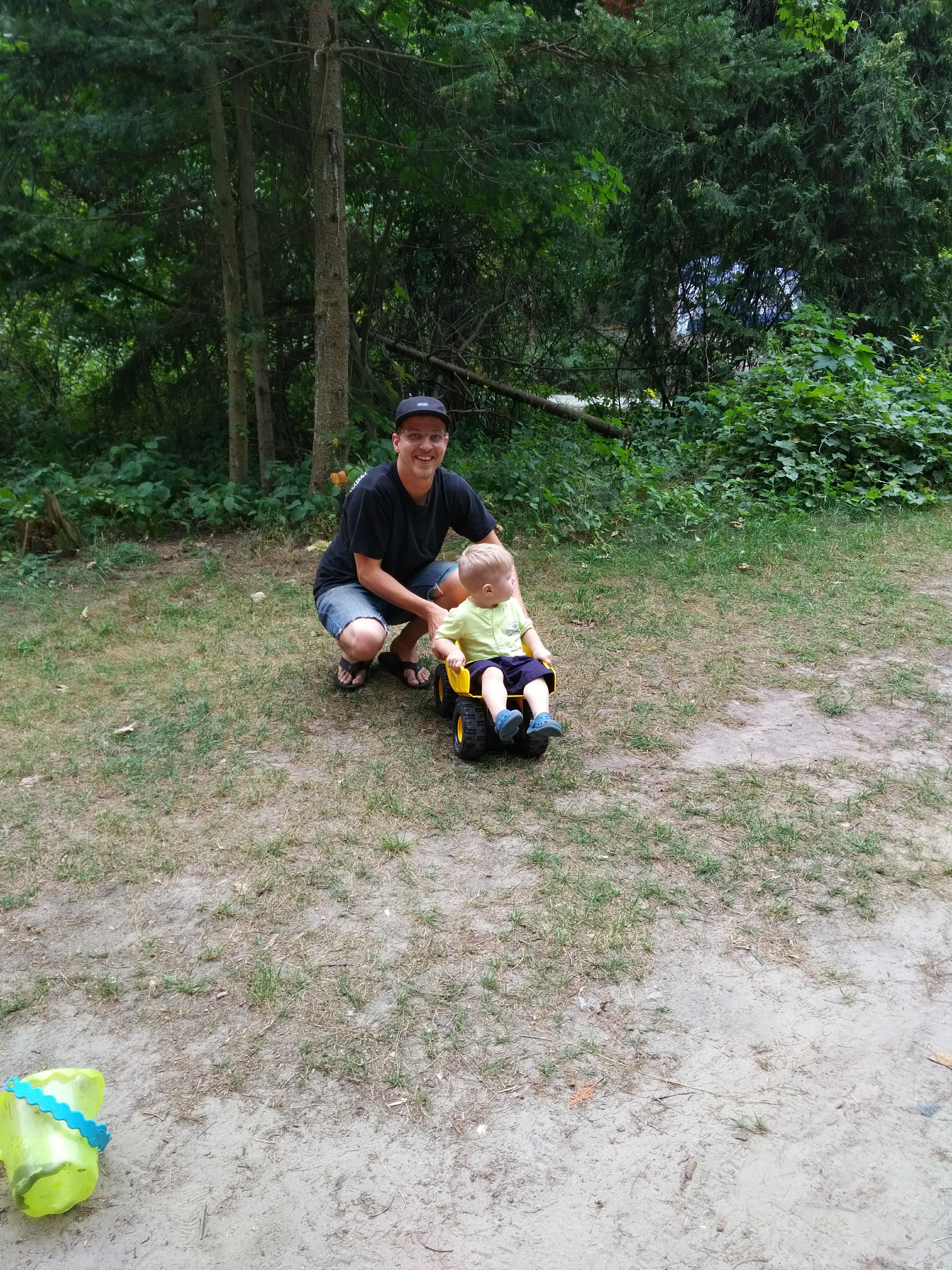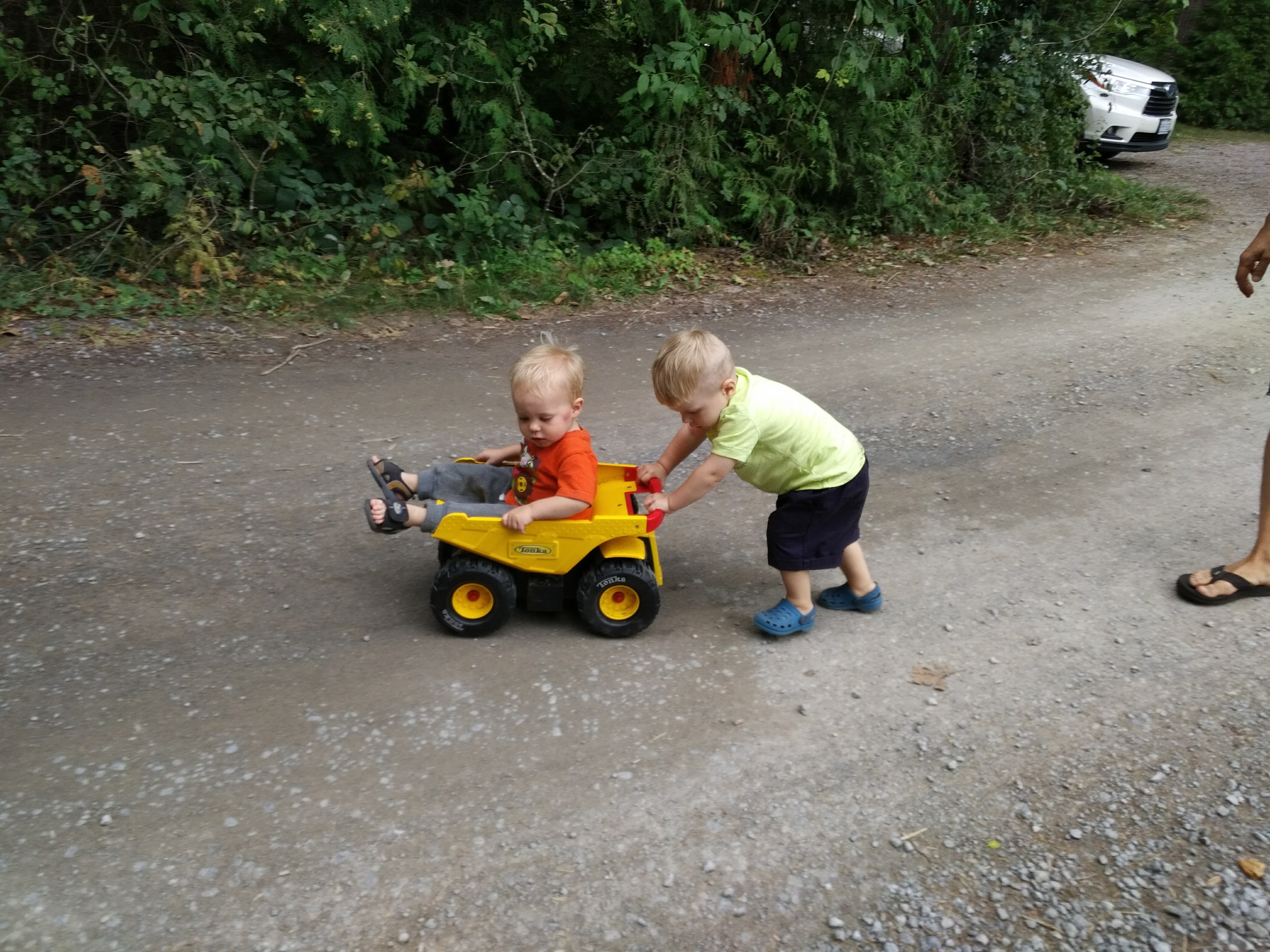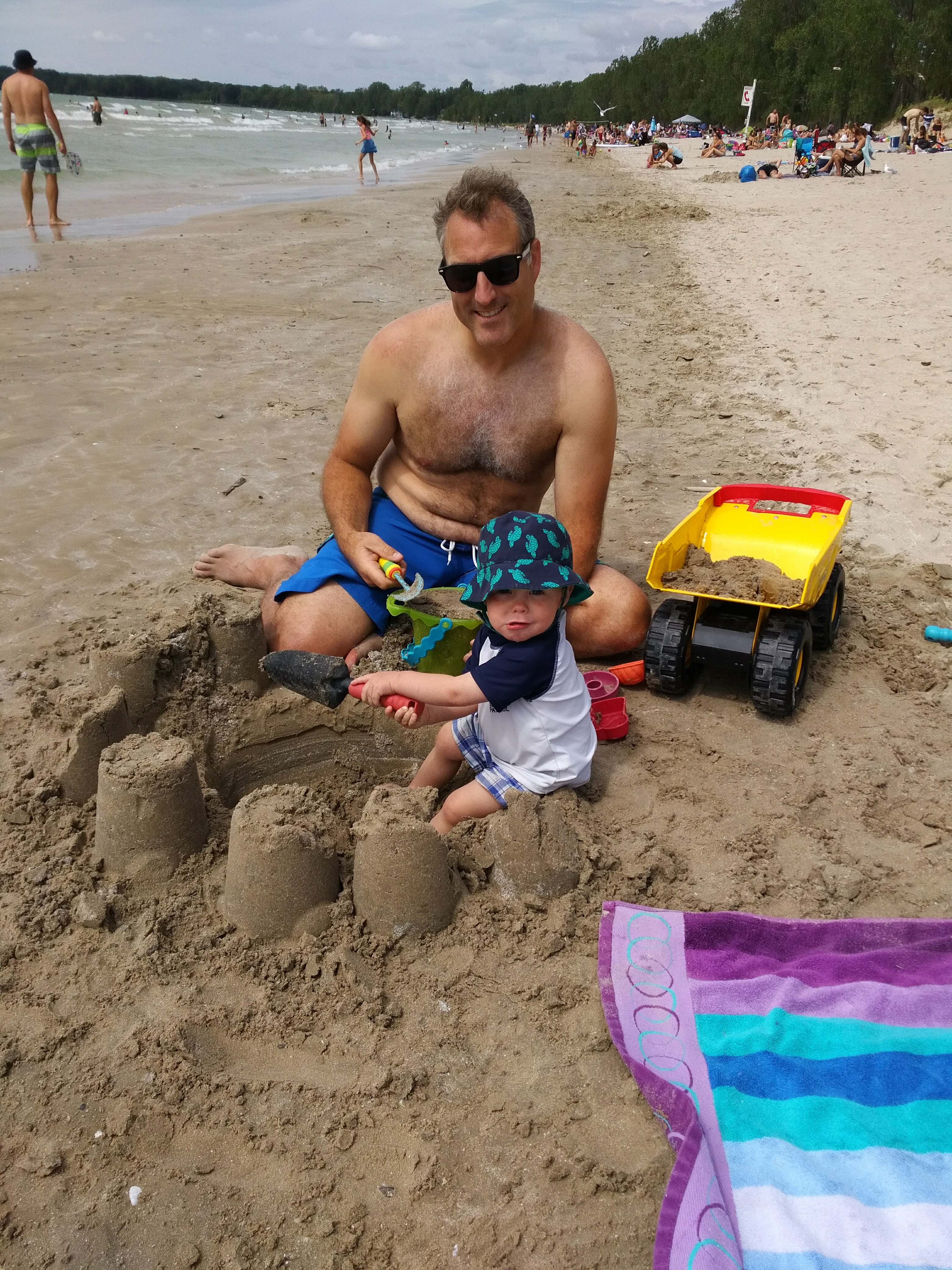 Between the trips to the cottage, family bbq’s and bbq’s with friends – Isaac has been enjoying daycare. Better yet, Isaac loved our weekend at Sandbanks, camping in a tent, chasing seagulls, digging holes in the sand, and splashing in the waves. Most of all, Isaac loved pushing his cousin Hank around in his dump truck.