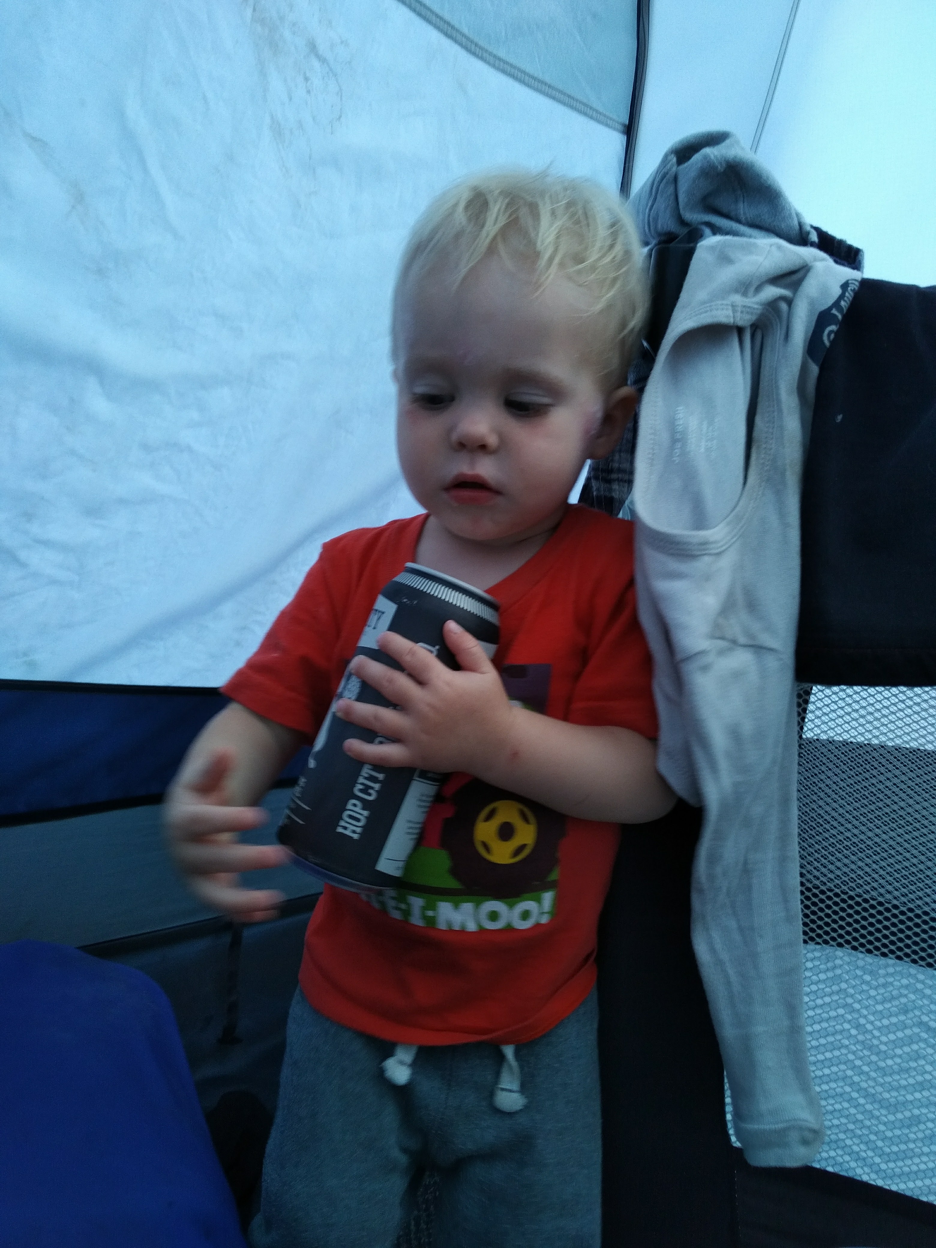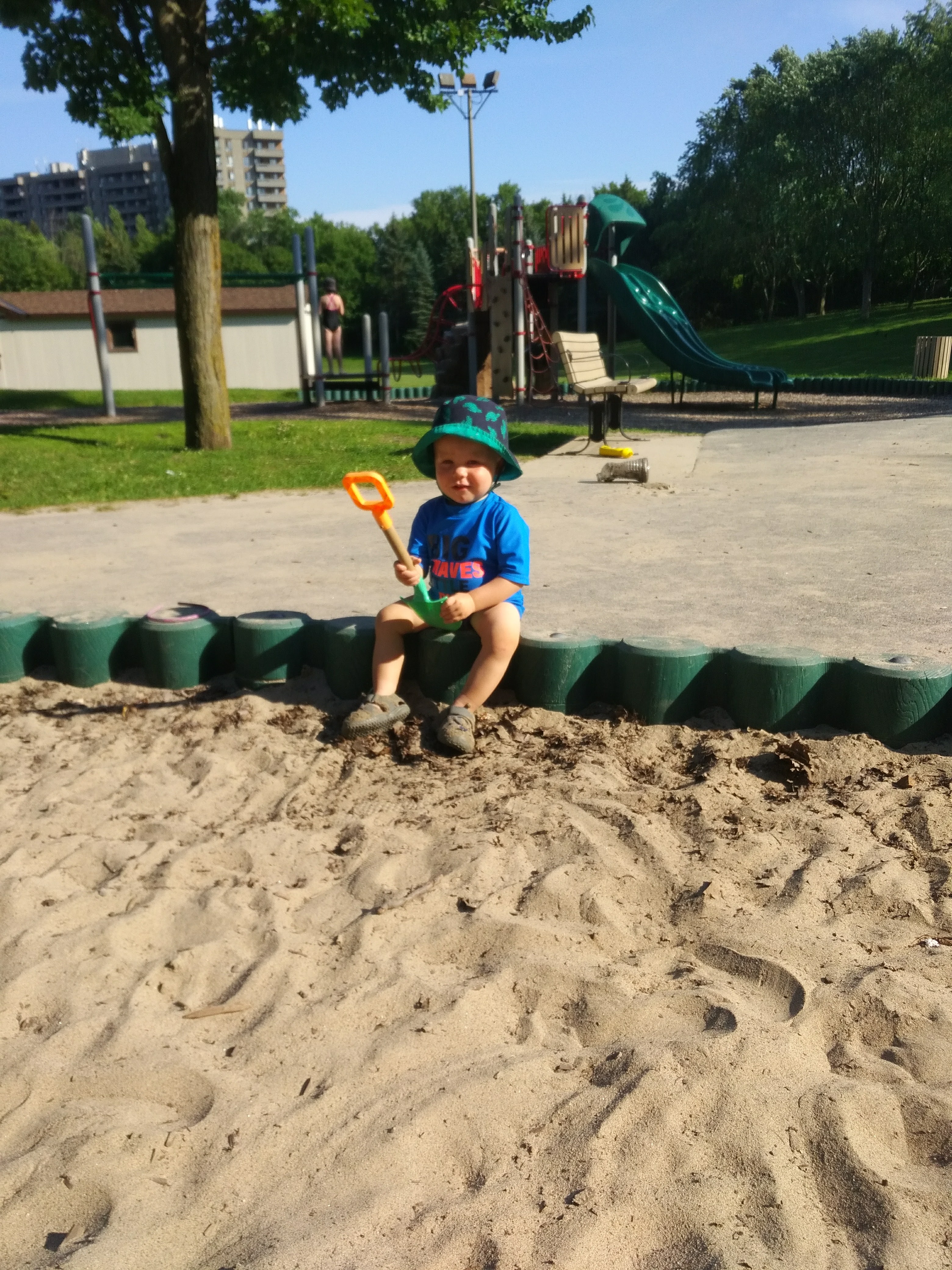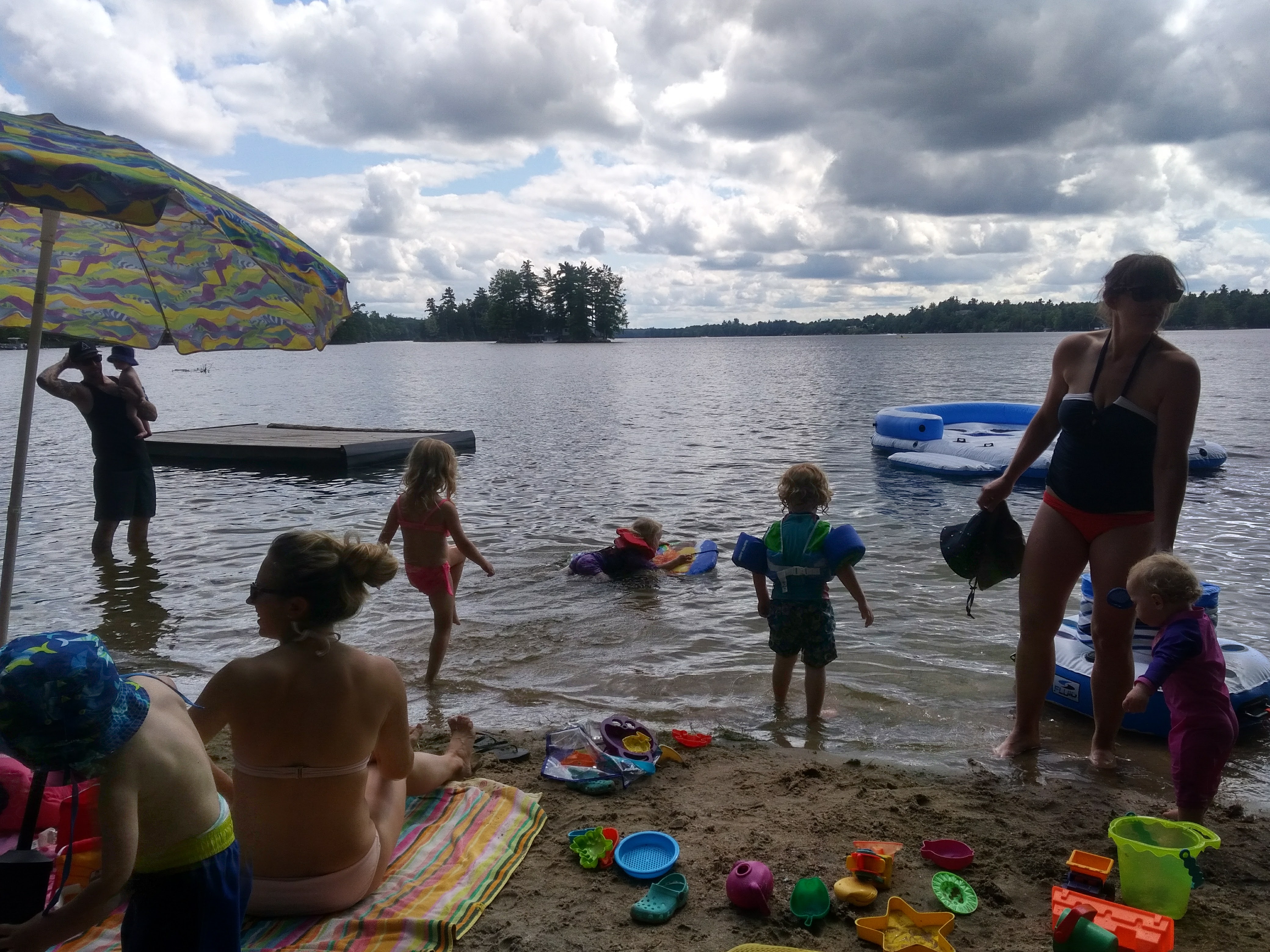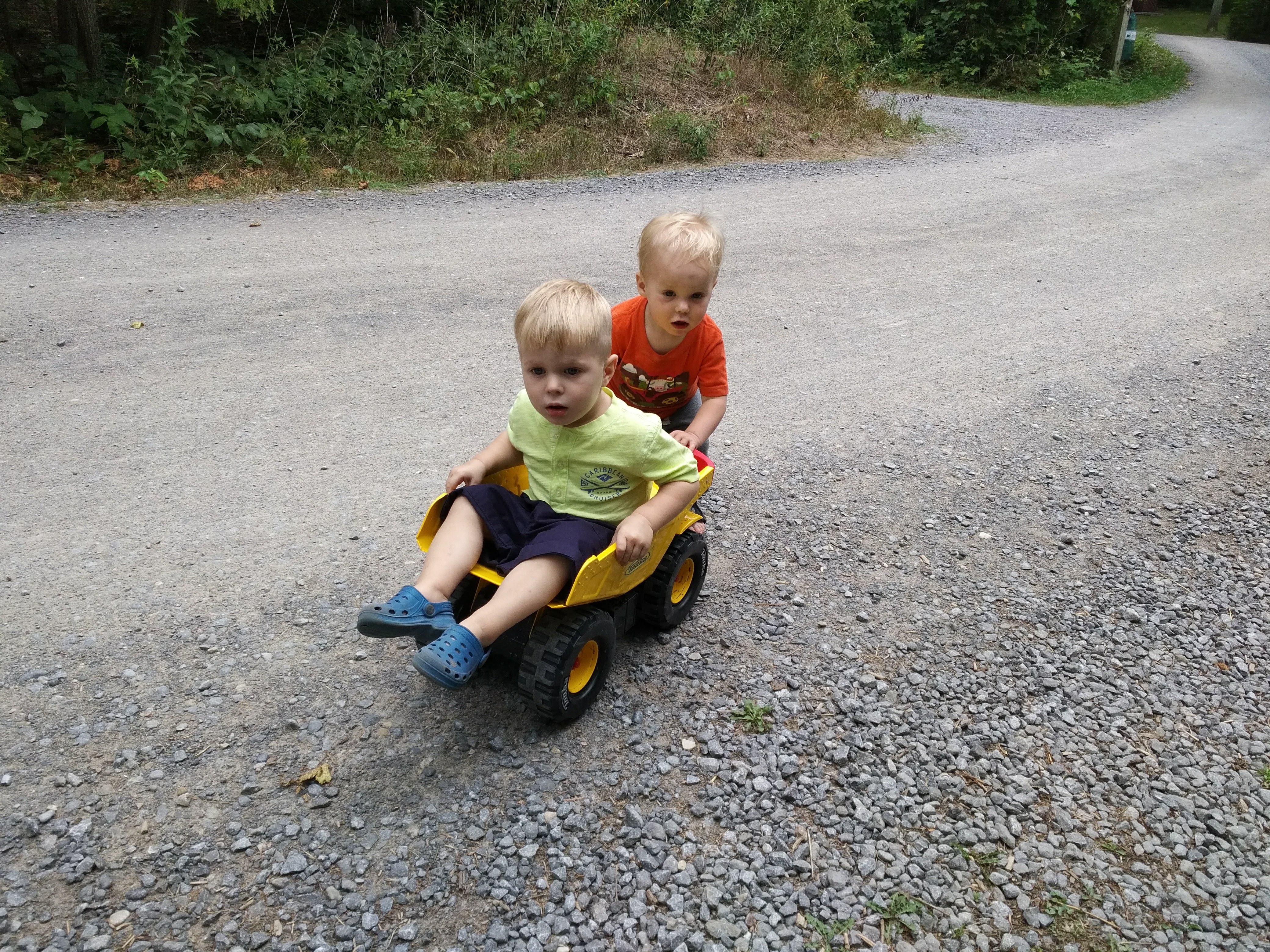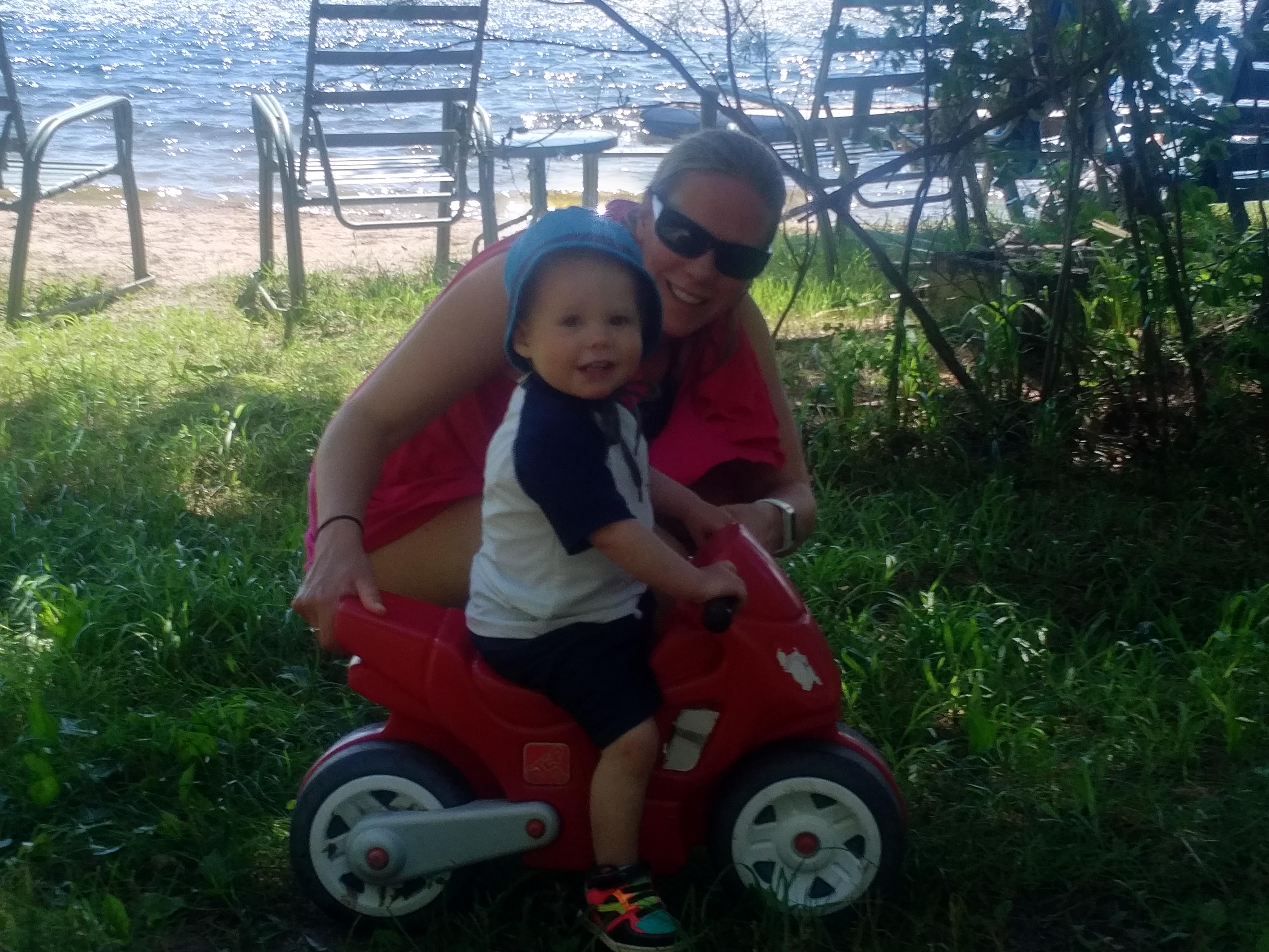 Between the trips to the cottage, family bbq’s and bbq’s with friends – Isaac has been enjoying daycare. Better yet, Isaac loved our weekend at Sandbanks, camping in a tent, chasing seagulls, digging holes in the sand, and splashing in the waves. Most of all, Isaac loved pushing his cousin Hank around in his dump truck.
