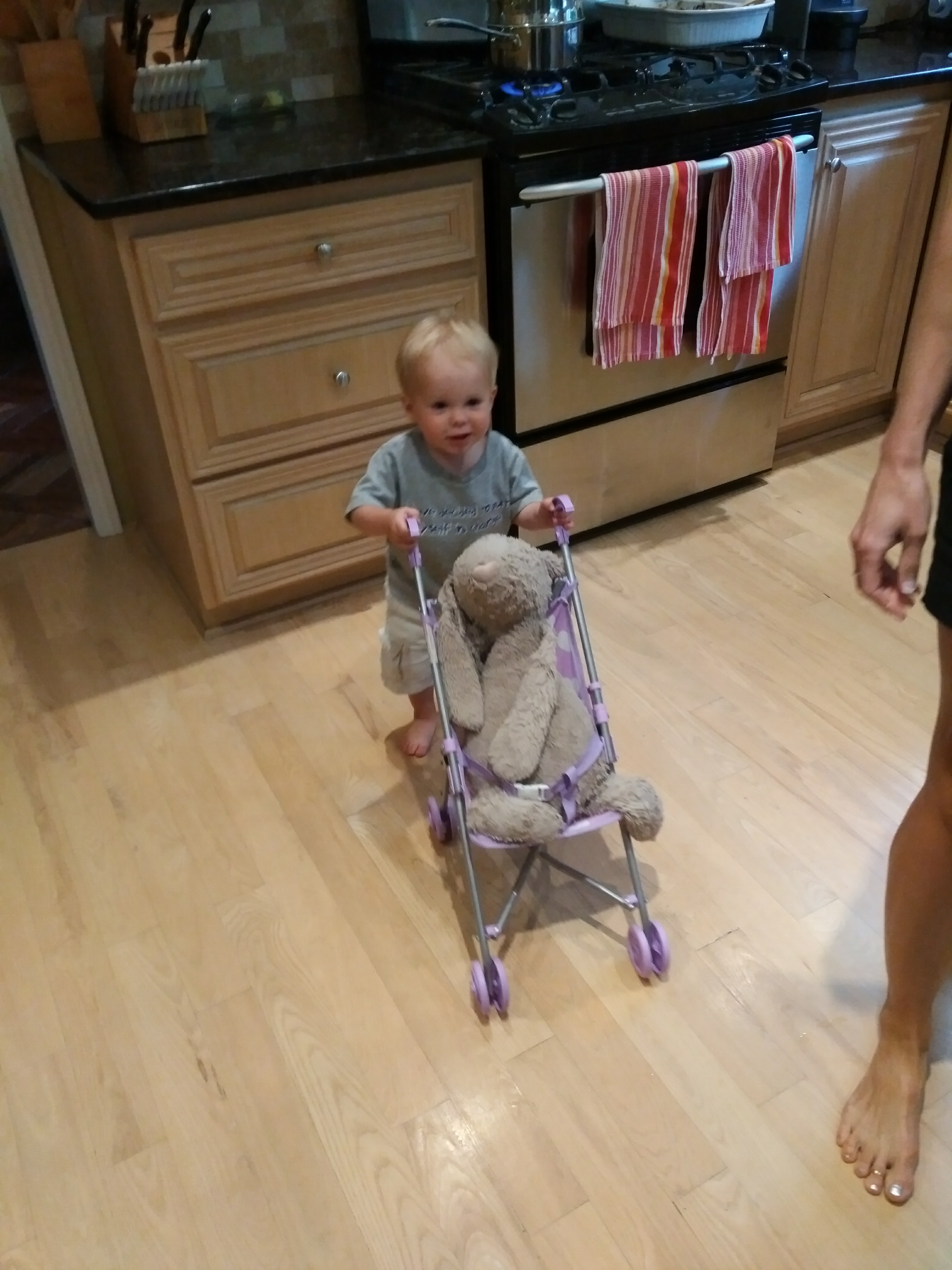 Isaac’s favourite things now are to watch the garbage truck go by, sit in the front seat of the cars and push all the buttons and levers, vacuum and sweeping, playing in the sand, cleaning the bbq, and splashing in the bathtub. He was been lucky to visit with Vincent and Sandra here from BC, Zac visiting from NYC, and spend lots of time with cousin Zavier who was in Ottawa more this summer.
