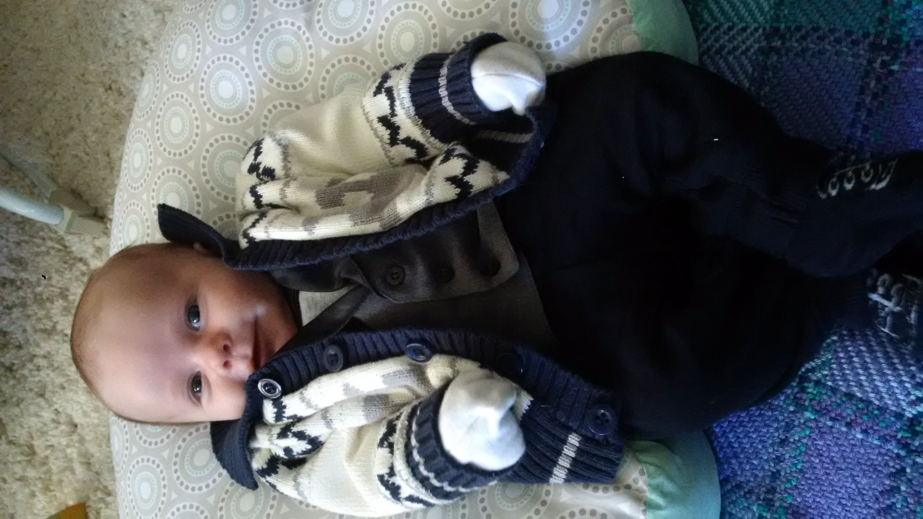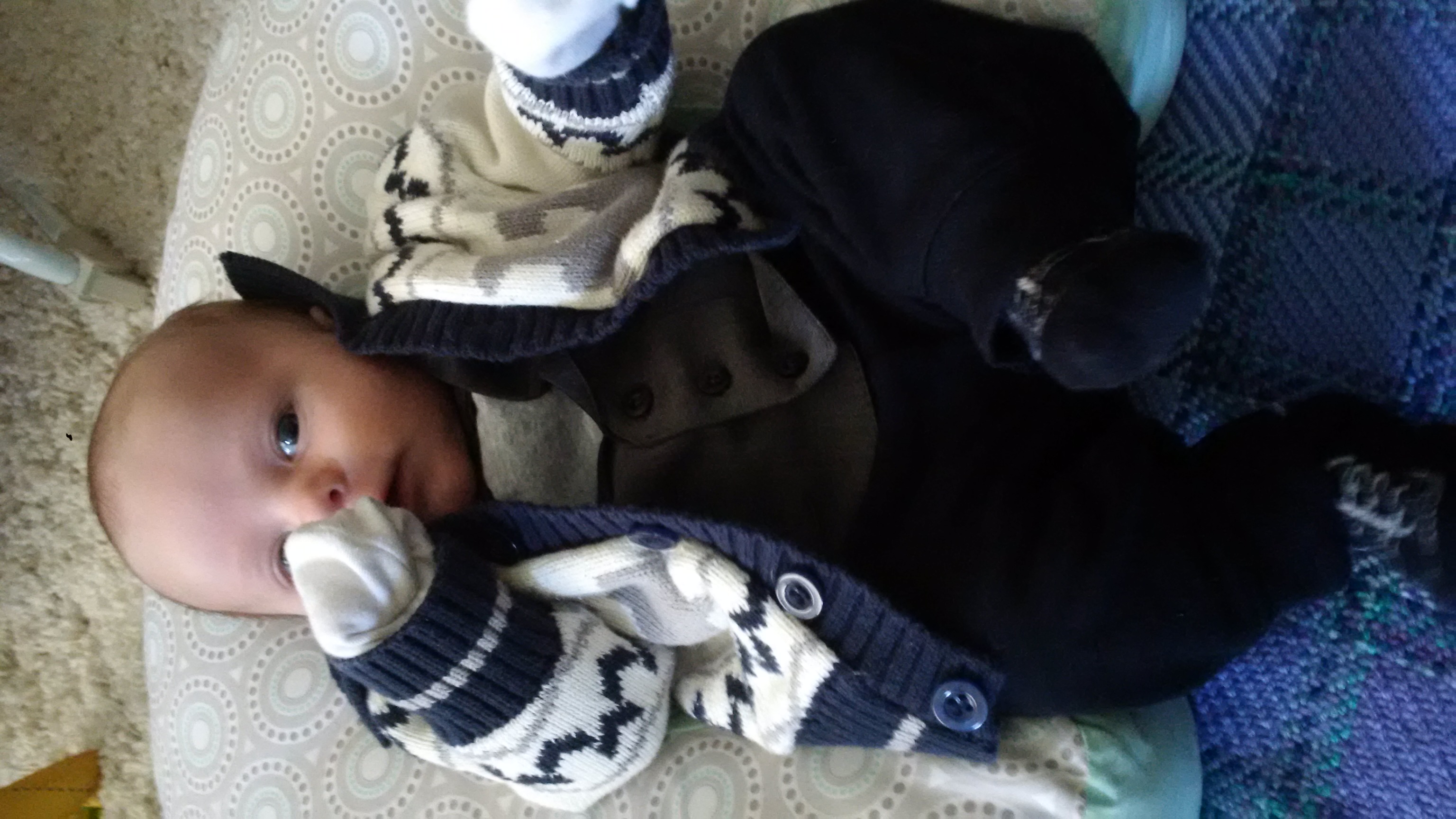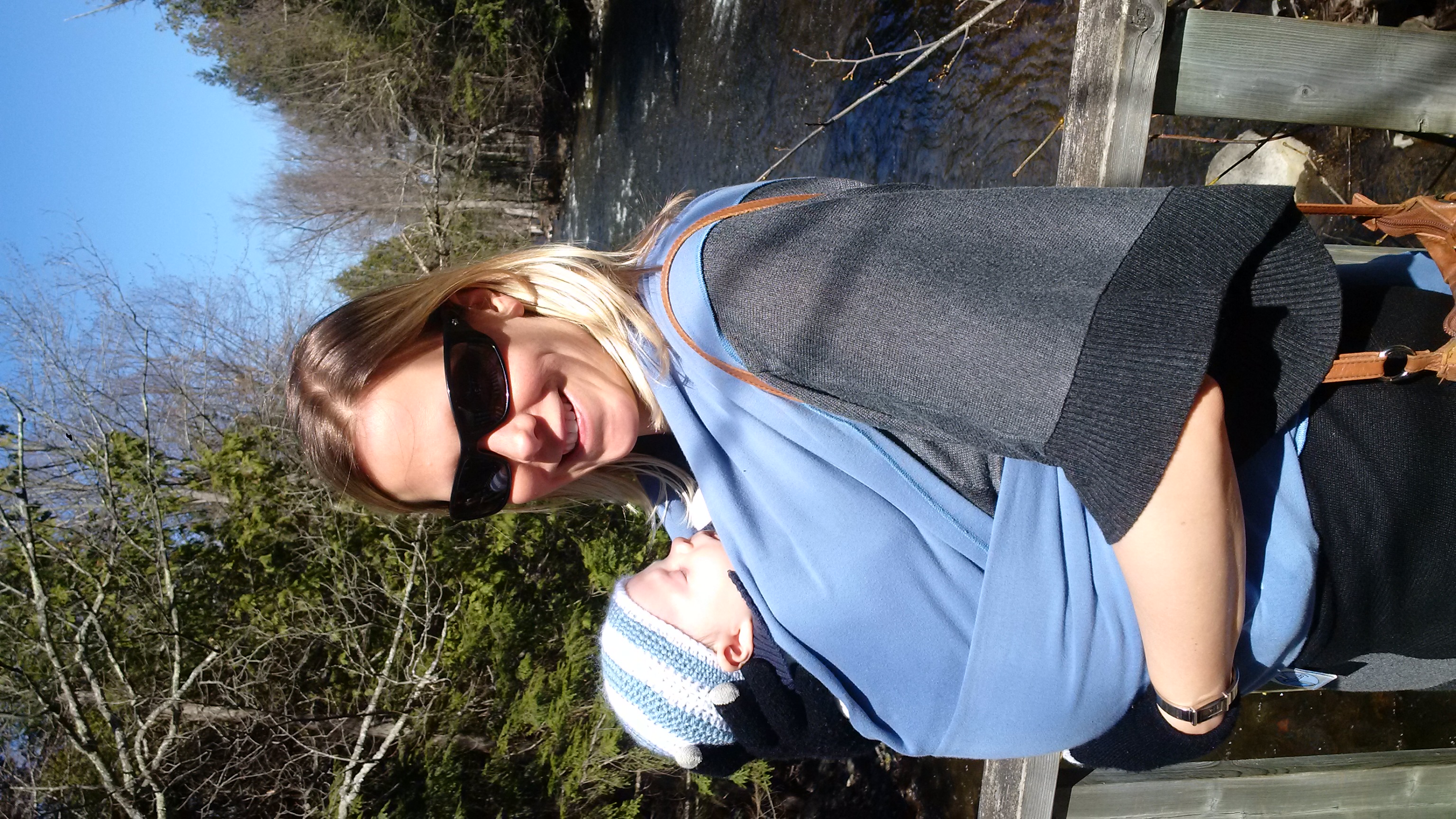 We attended a celebration of life for a friend’s mother, which was held at a conservation area with the service outside in the woods. It was a beautiful sunny day but fairly chilly. Isaac was patient in the carrier but wouldn’t sleep and kept tilting his head back to soak up some sun.
