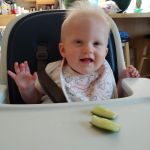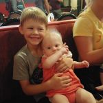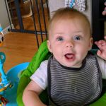 At their 6 month check up, Cadence was 14lbs 13oz and Asher was 15lbs 6oz. Asher is slightly longer as well, with a bigger head. Isaac is now only barely twice their weight, with his most recent weight being 29lbs – but he seems to be growing too! Everyone is moving up in clothing size, and so we are constantly sifting through our (fortunate) donations of clothing. Isaac is constantly showing us how tall he is (“Look how tall I am!” holding his arms up in the air), as well as how far or high he can jump. All 3 kids are eating well these days, and dinner time rotates between fun meals outside and overwhelmingly loud scream fests inside. No teeth yet, but the babies seem to have been teething for months! We are still extremely grateful for the dinner/bed time help we receive from the grandparents! We are also lucky to get more time this fall with Glenna too, now that she is available another day a week 🙂