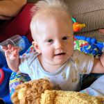 Things are about to get busy around here, as Asher and Cadence start exploring! The babies are 7 months today, and Asher is crawling and starting to pull himself up and cruise, while Cadence isn’t far behind! She has begun going forward as well as backward, and they both love to be walked around holding onto our hands.